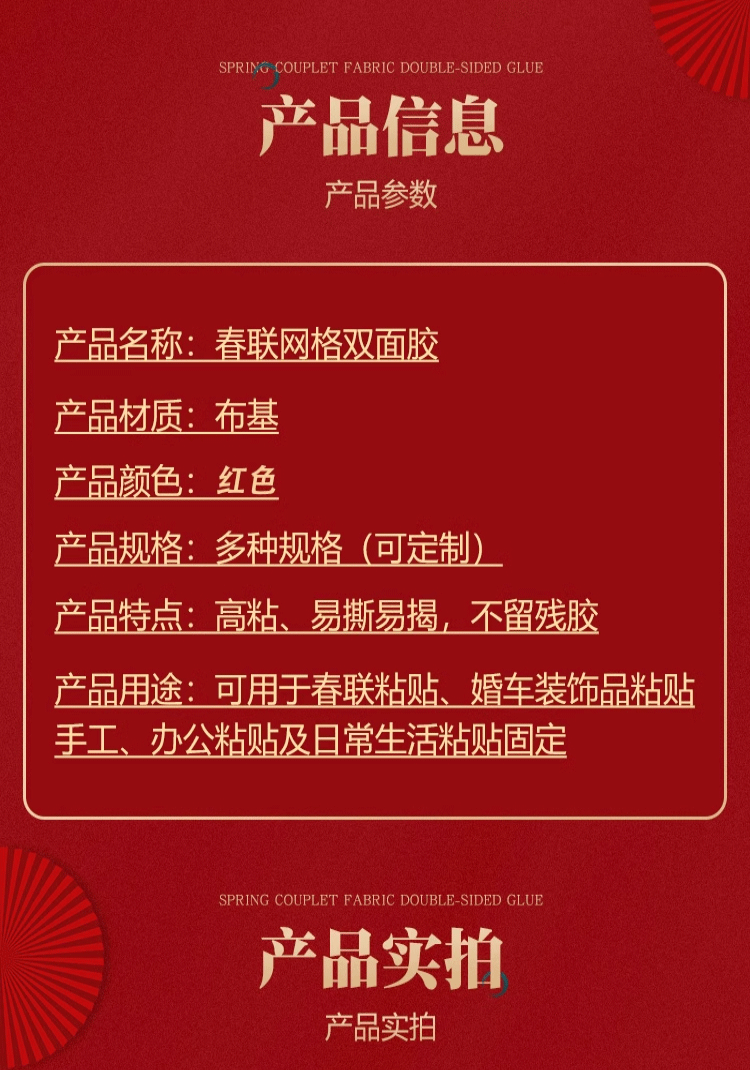 [Красная пленка с двусторонним клеевым слоем]; Набор праздничных куплетов к Весеннему фестивалю 1,9 см * 5 см [32 штуки] в упаковке; [Клей с двусторонней сеткой из красной пленки]; Ширина 10 мм * 10m длина; [Клей с двусторонней сеткой из красной пленки]; Ширина 15 мм* 10m длина; [Клей с двусторонней сеткой из красной пленки]; Ширина 20 мм* 10m длина; [Клей с двусторонней сеткой из красной пленки]; Ширина 30 мм* 10m длина; [Клей с двусторонней сеткой из красной пленки]; Ширина 48 мм* 10m длина; [Красная пленка с двусторонним клеевым слоем]; Ширина 10 мм 5m; [Красная пленка с двусторонним клеевым слоем]; 18 мм 5m длина