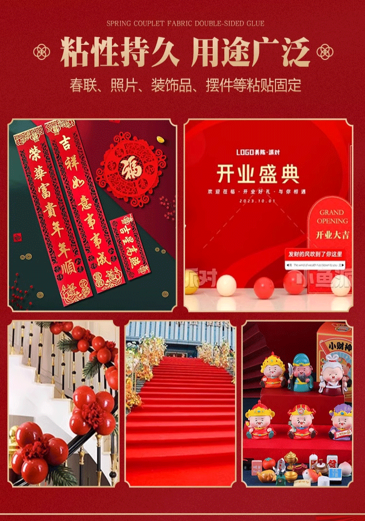 Новогодние и весенние праздничные куплеты с бесследным клеем, двусторонняя лента без следов, специальная сетчатая лента, которая не повреждает стены, водонепроницаемая лента для весеннего праздника.