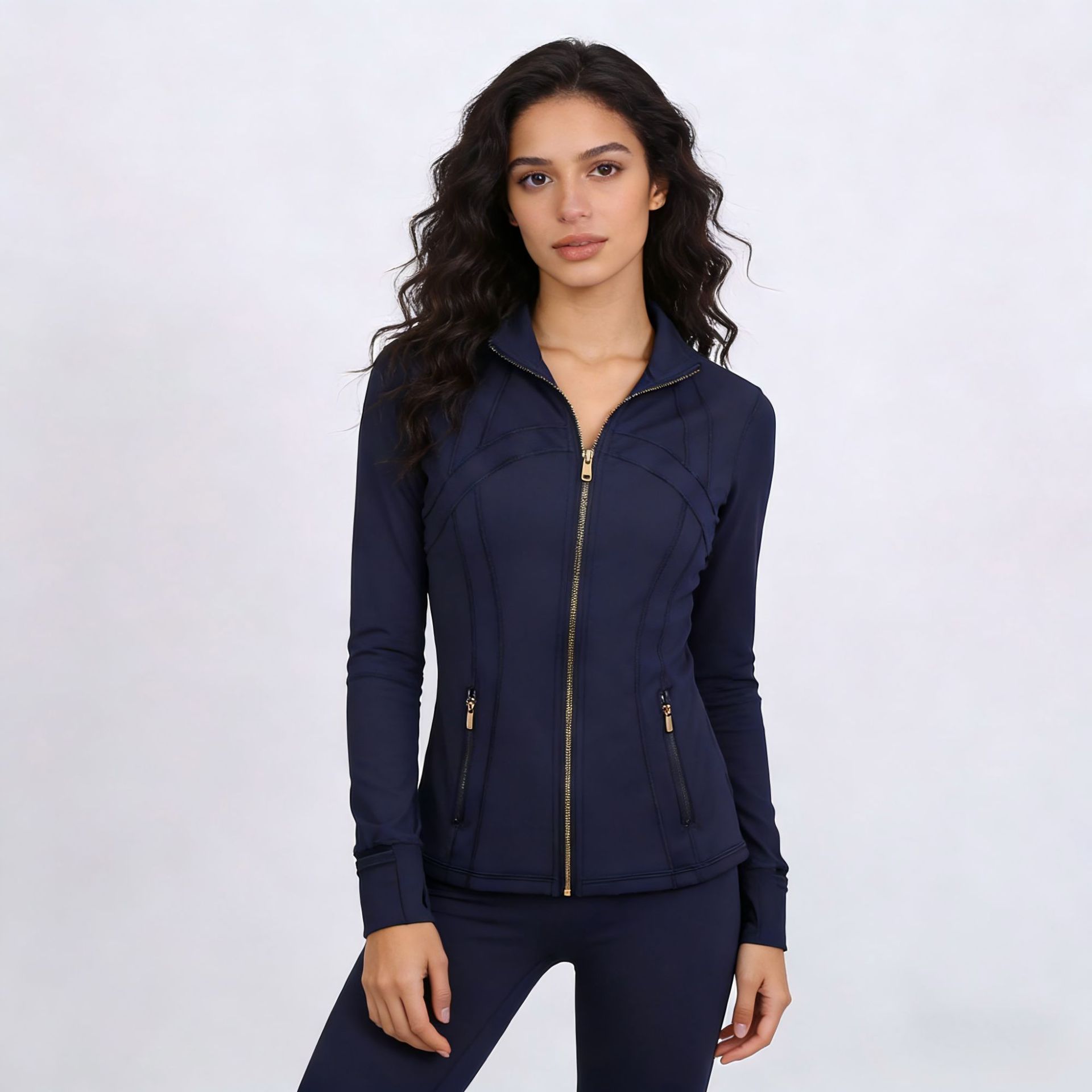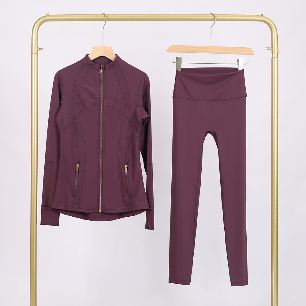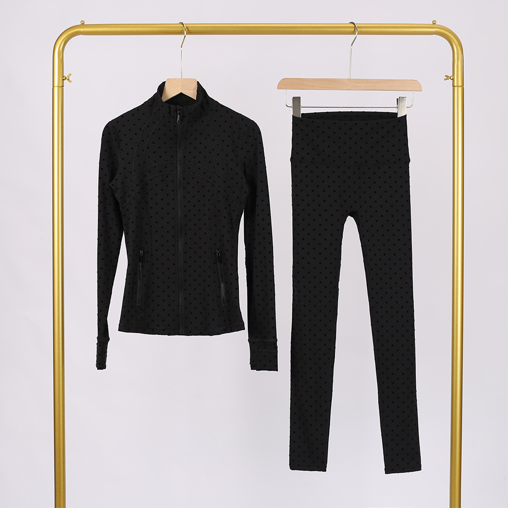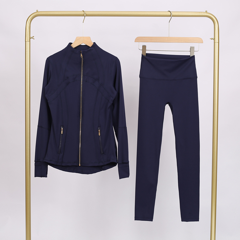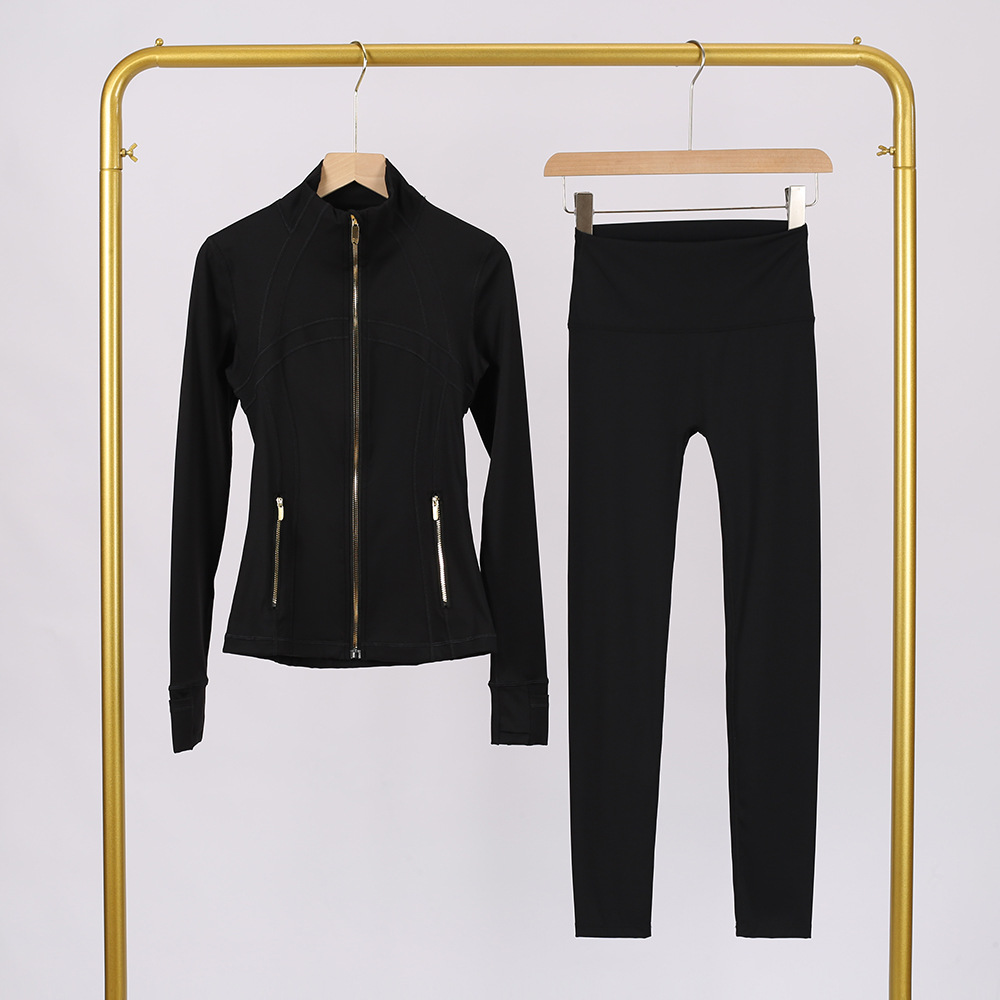 LULU DF куртка с воротником-стойкой, брючный костюм с девятью точками, тонкая куртка с золотой молнией, эластичная быстросохнущая одежда для фитнеса и йоги