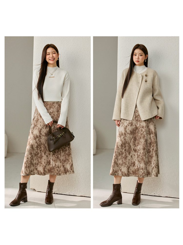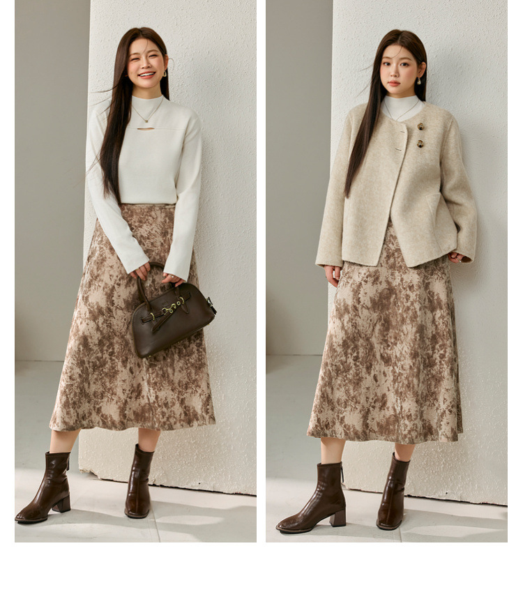 Полноцветное шоу большого размера женская ретро холодный ветер, темперамент, тонкая юбка, толстая mm2024 зимняя новая