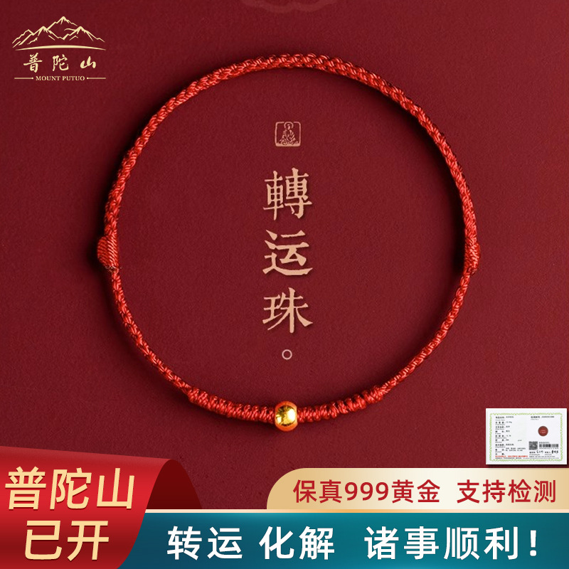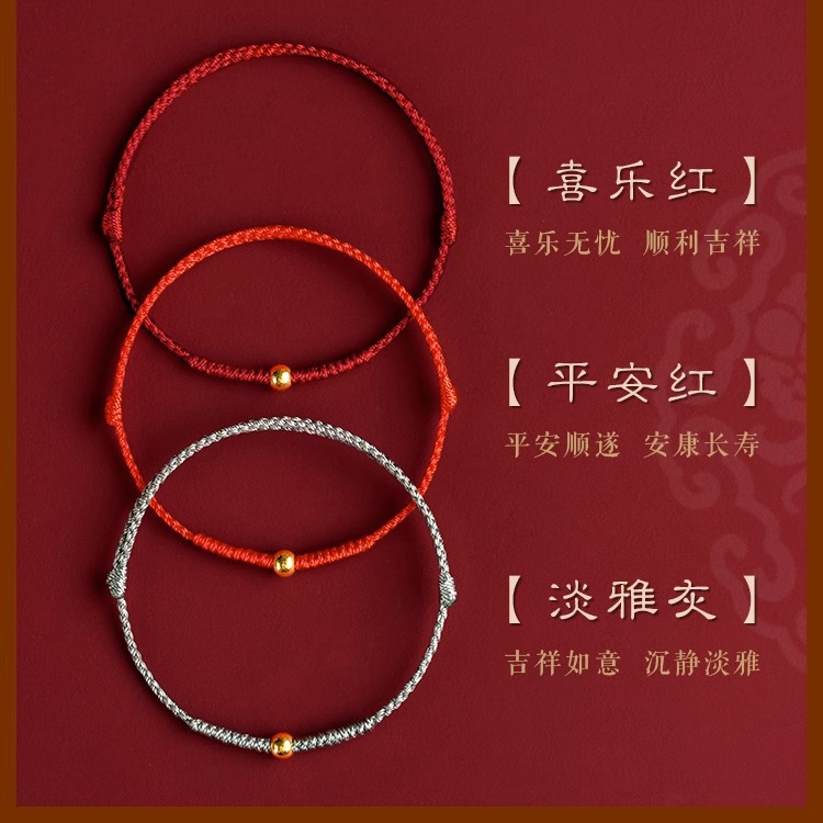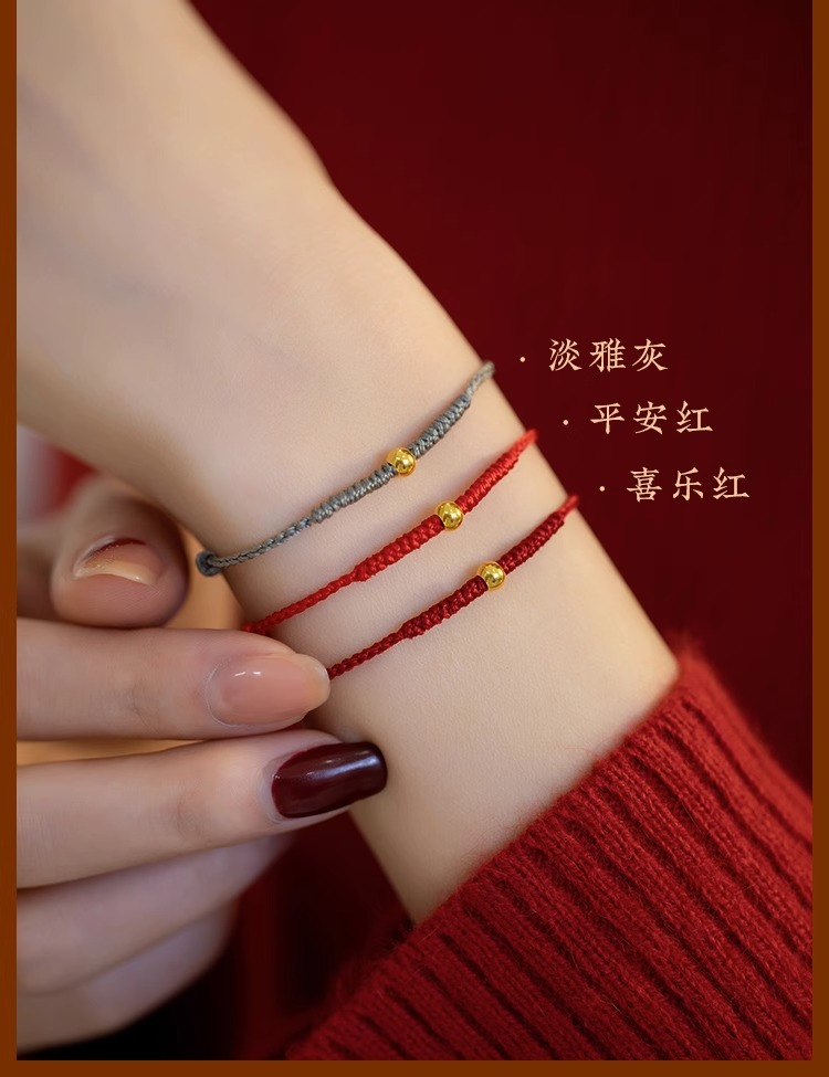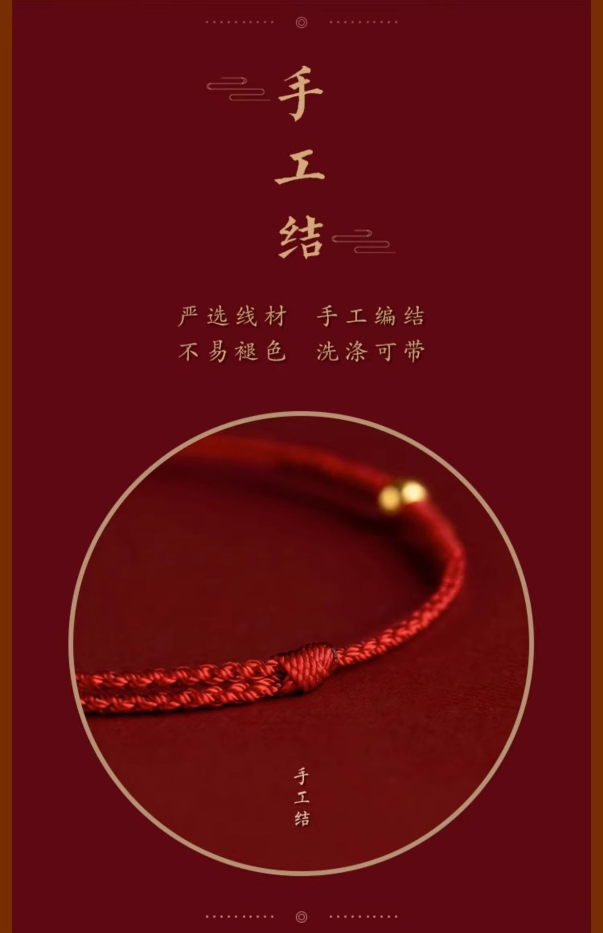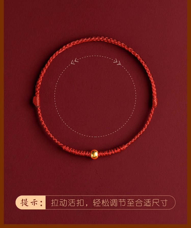 Браслет из чистого золота с красной веревкой Putuo Mountain Zodiac Year, плетеный браслет из красной веревки с золотыми бусинами, подарок для пары