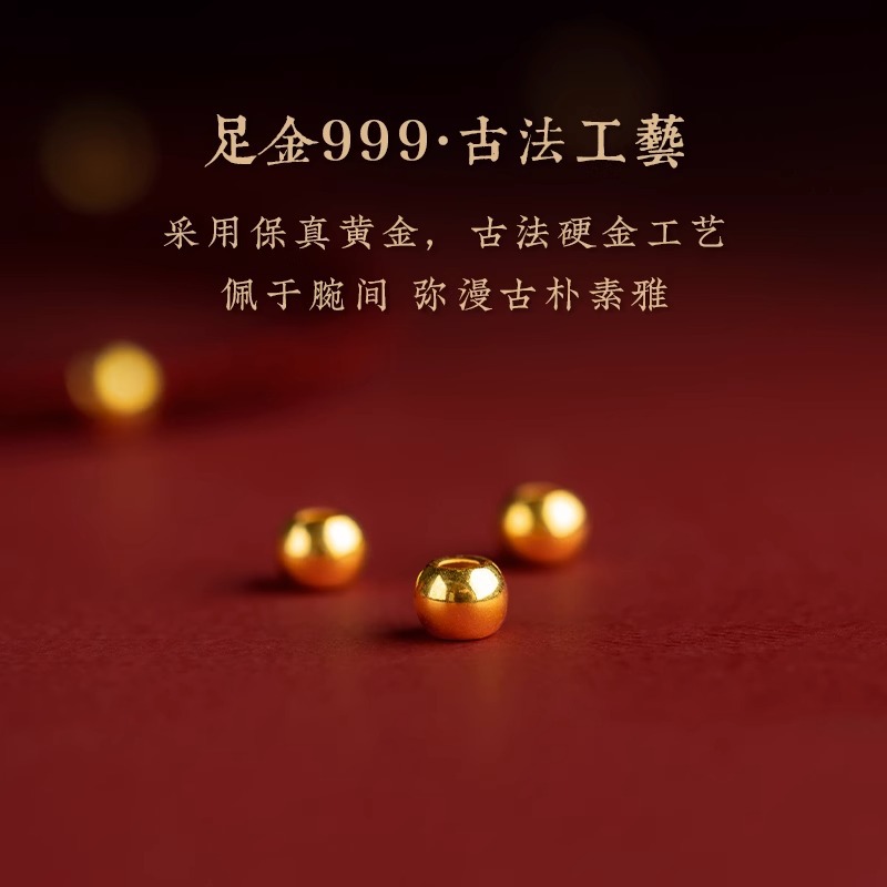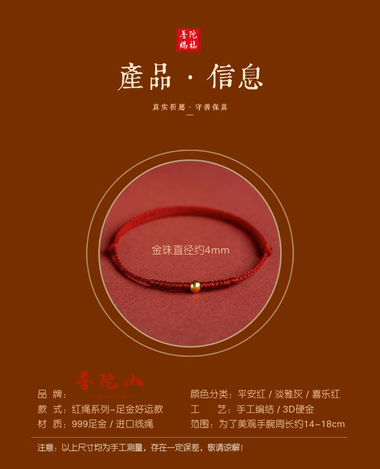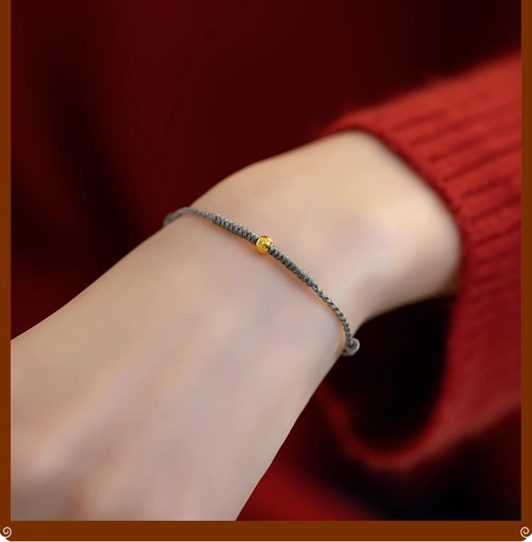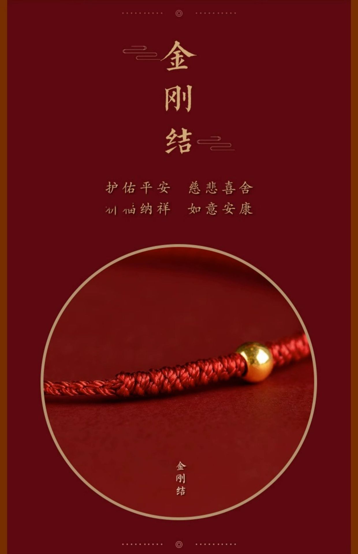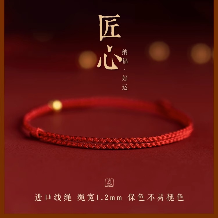 Браслет из чистого золота с красной веревкой Putuo Mountain Zodiac Year, плетеный браслет из красной веревки с золотыми бусинами, подарок для пары