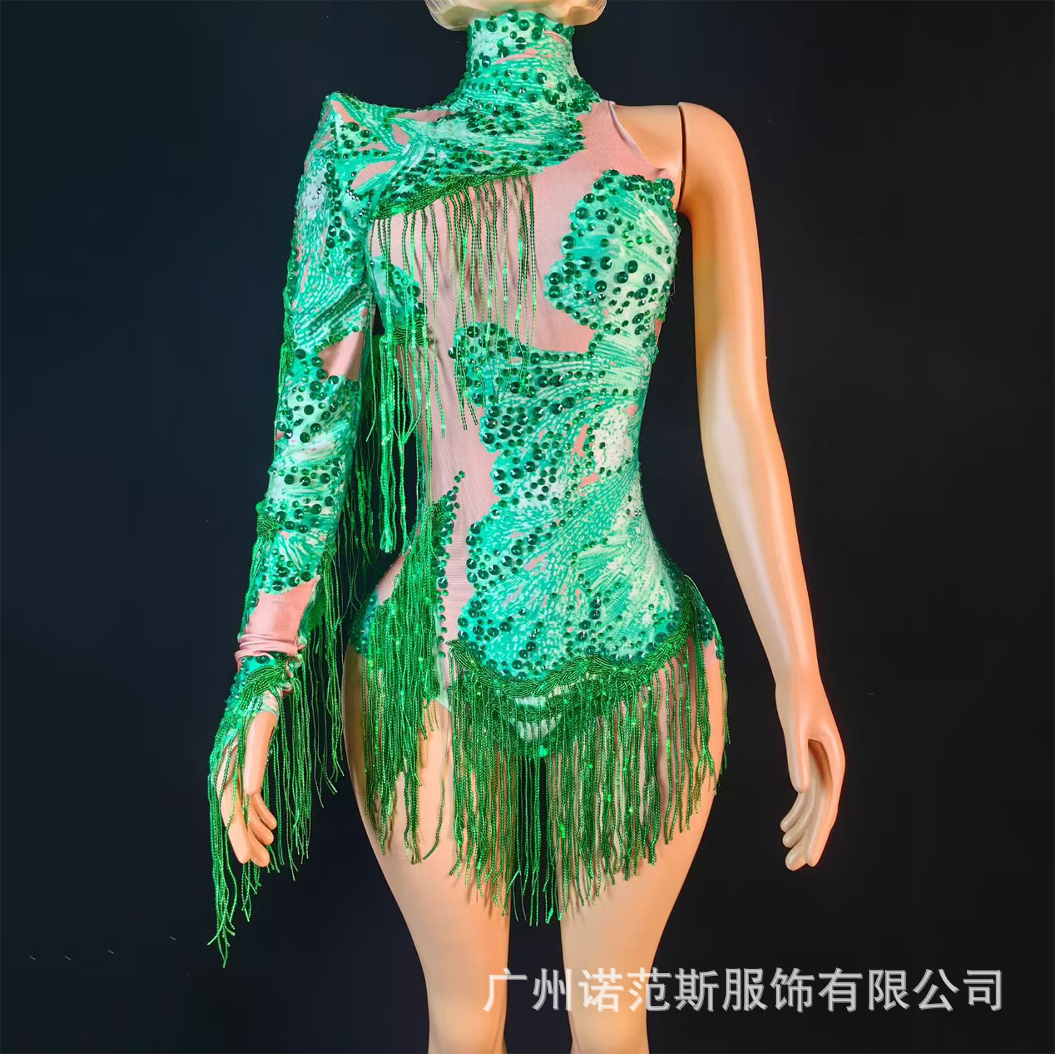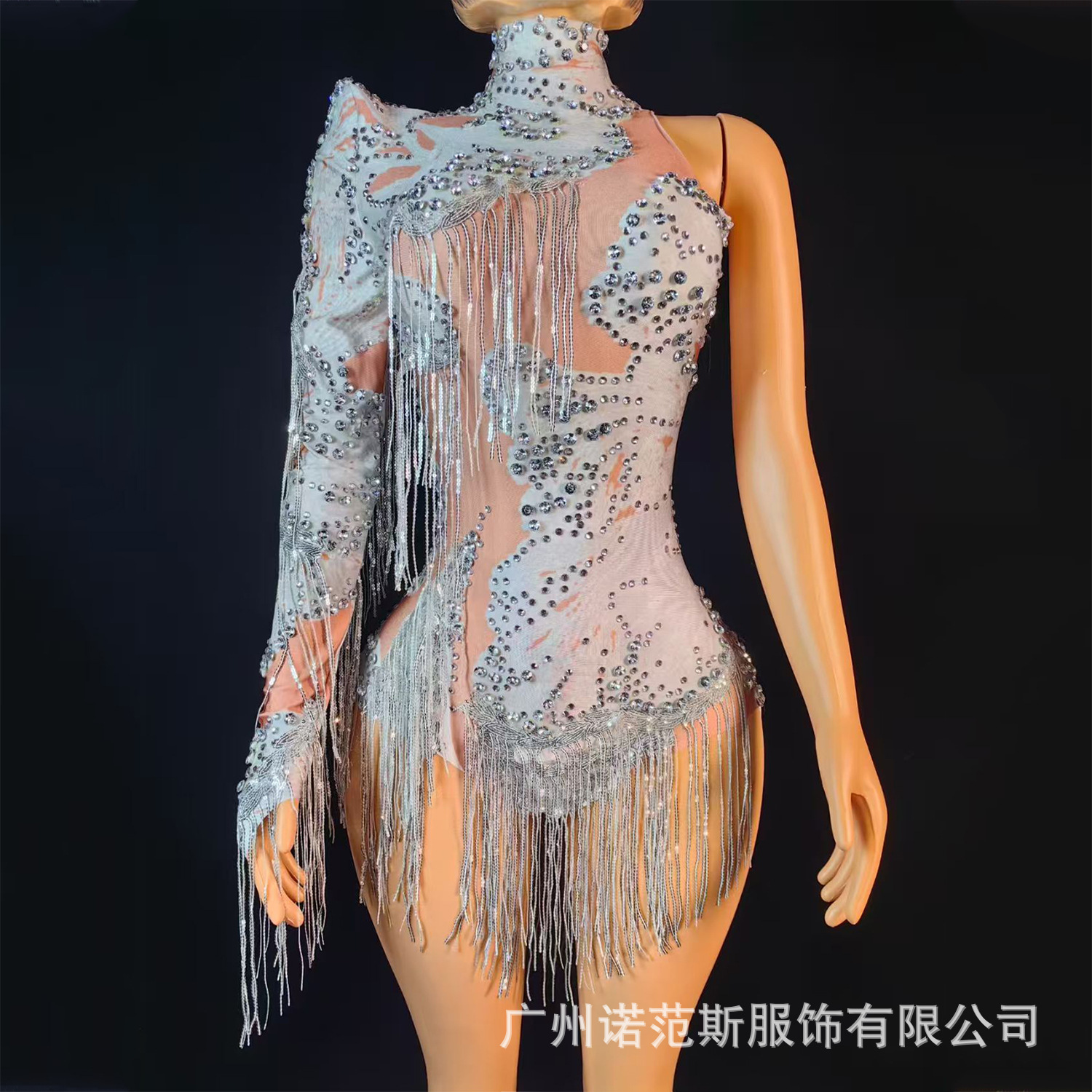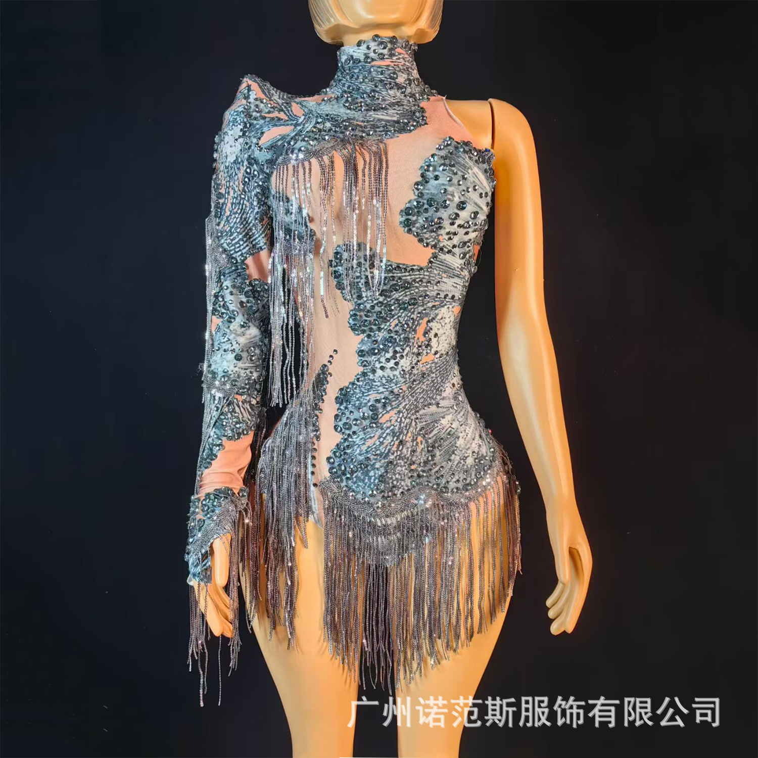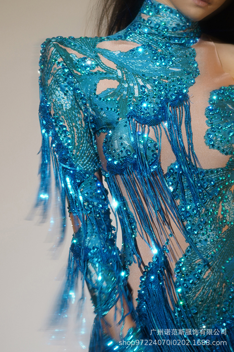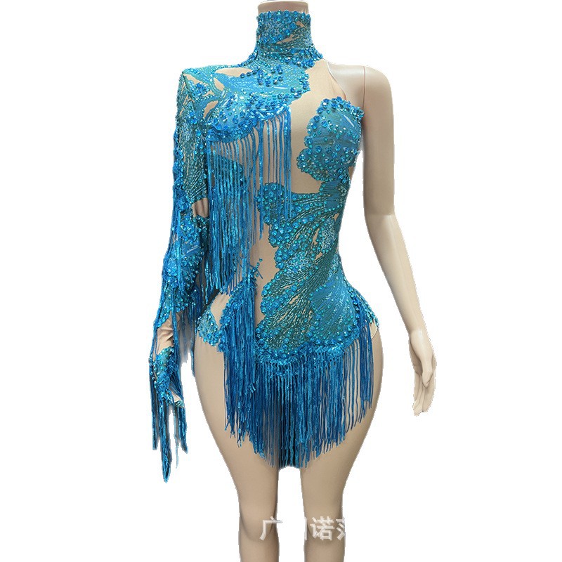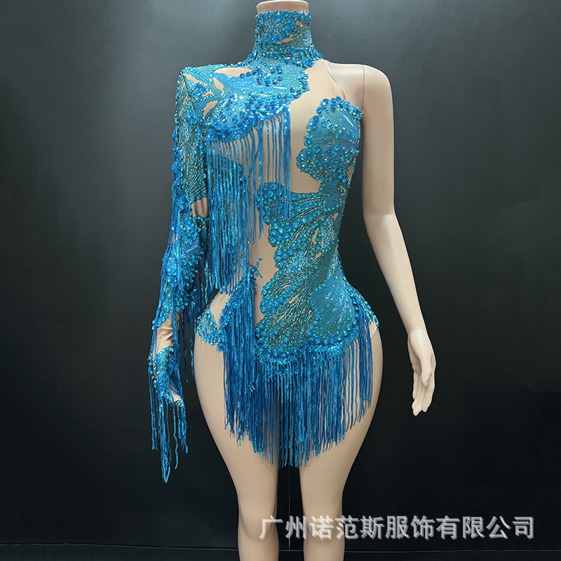 Нишевый павлин, синий, белый, элегантный комбинезон с кисточками, дизайн с одним рукавом, одежда для выступлений на сцене, бар, дискотека
