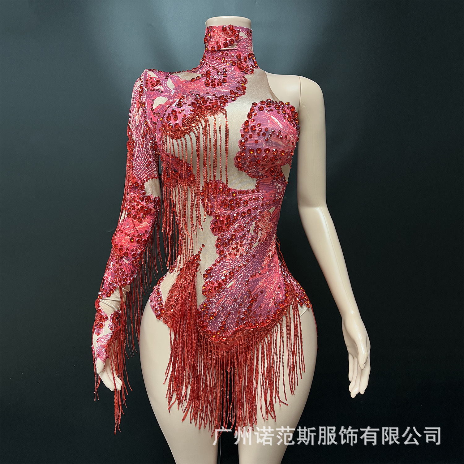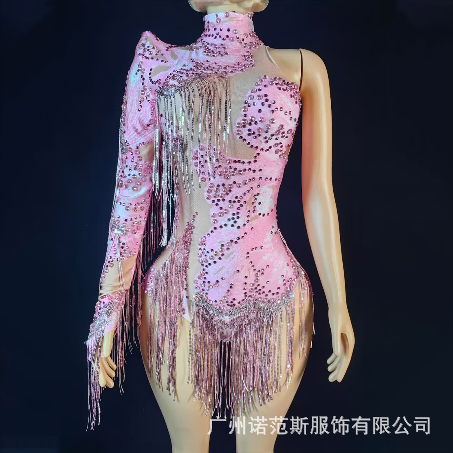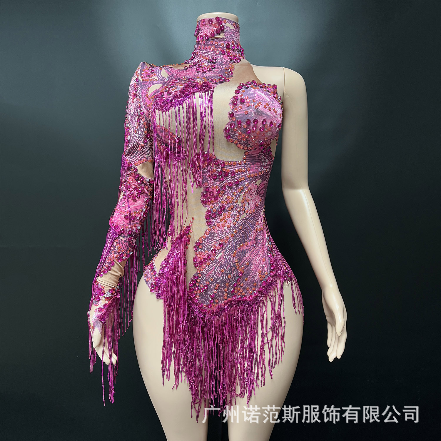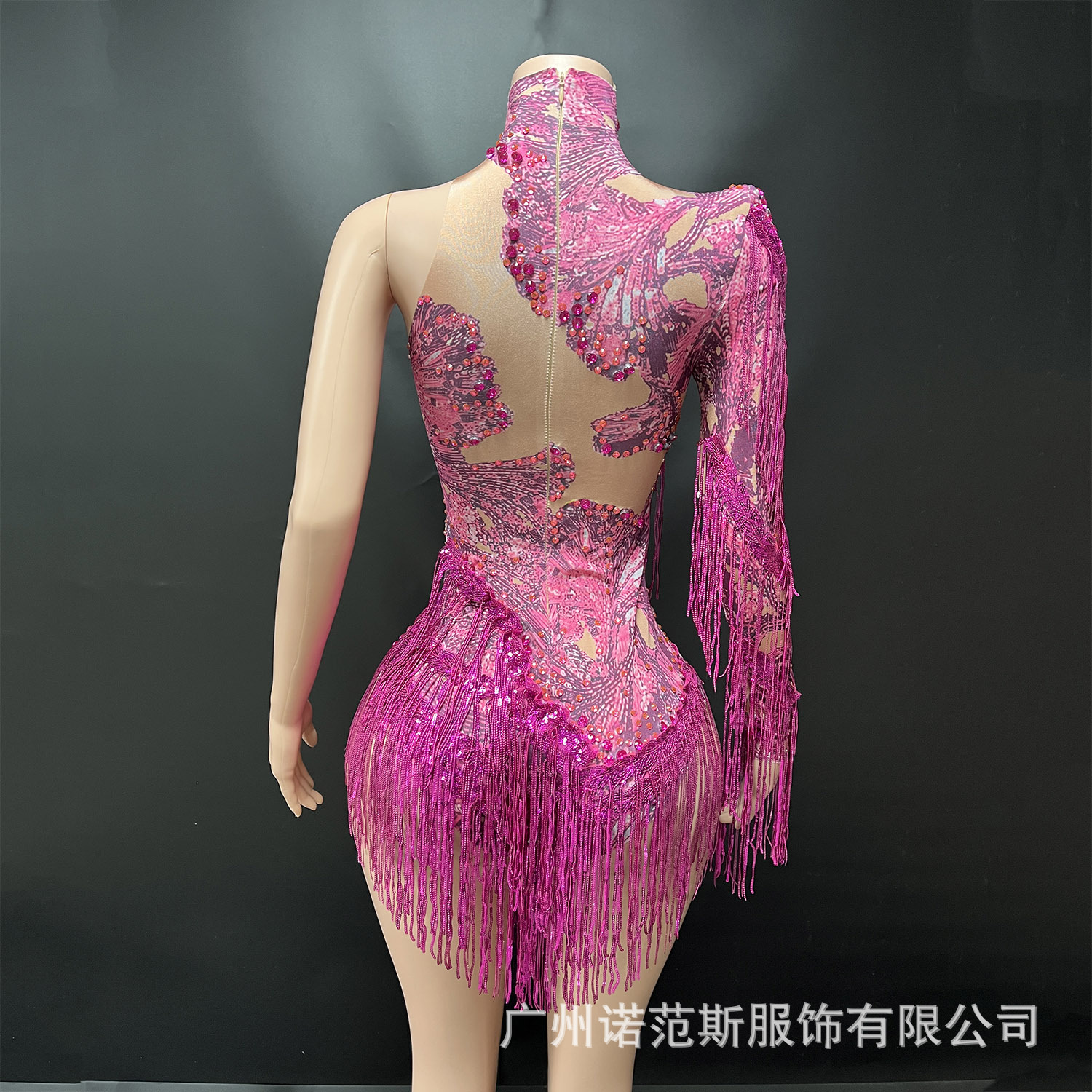 Нишевый павлин, синий, белый, элегантный комбинезон с кисточками, дизайн с одним рукавом, одежда для выступлений на сцене, бар, дискотека