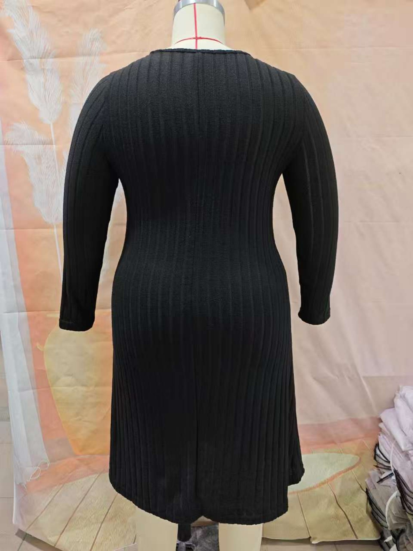 Трансграничная Европа осень и зима новый сплошной цвет V-образный вырез с длинными рукавами, дикое платье для женщин