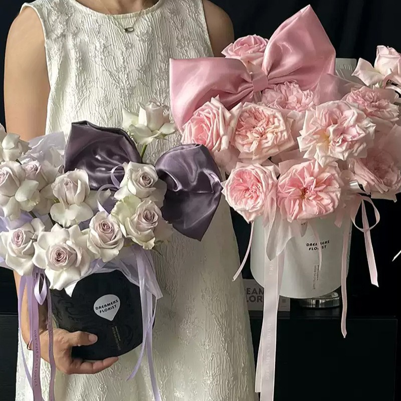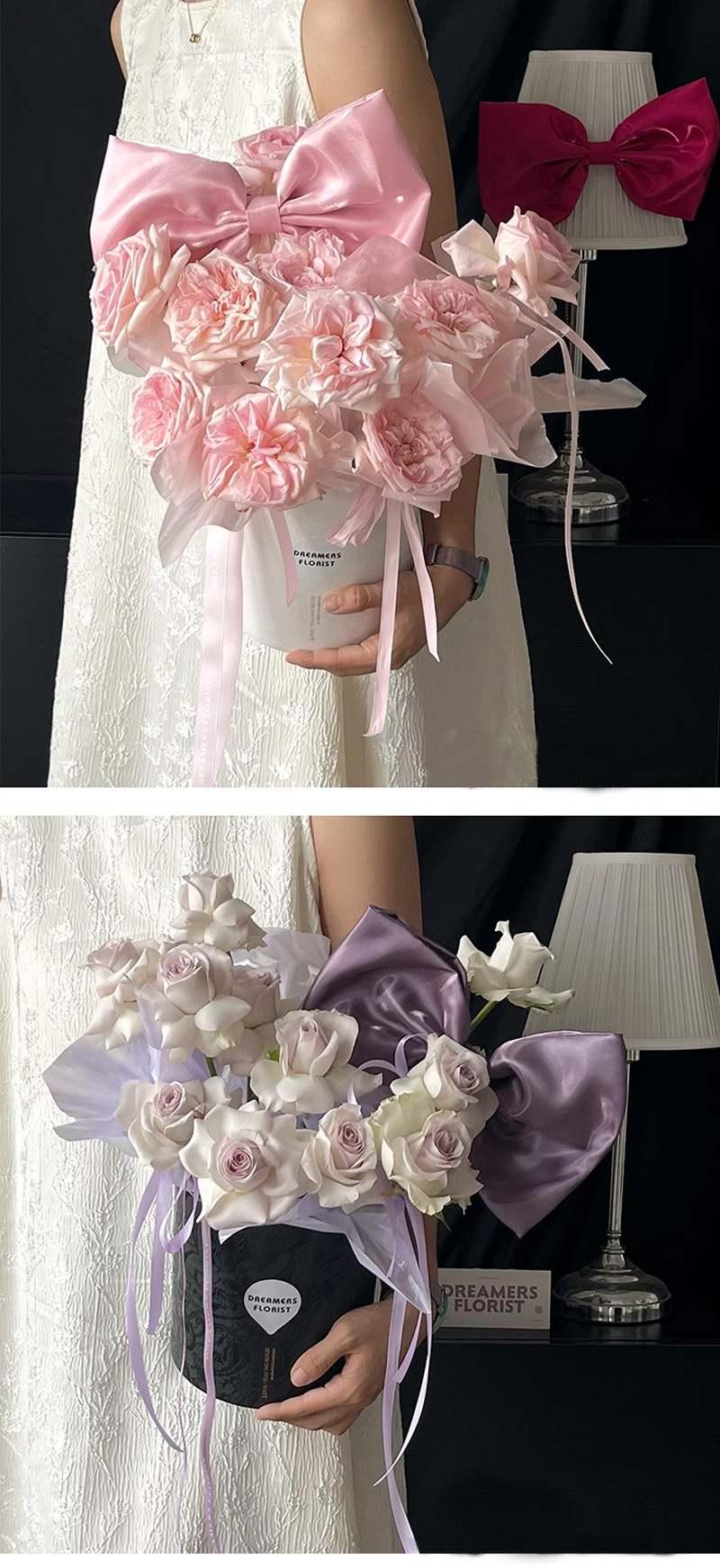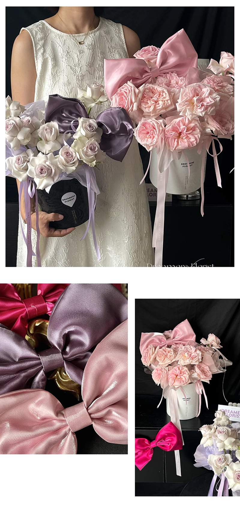 Коробка для букета с бантом из сатина, упаковочная коробка для цветов, корзина для цветов, подарочная коробка для фруктов, упаковка из сатиновой ткани с узором