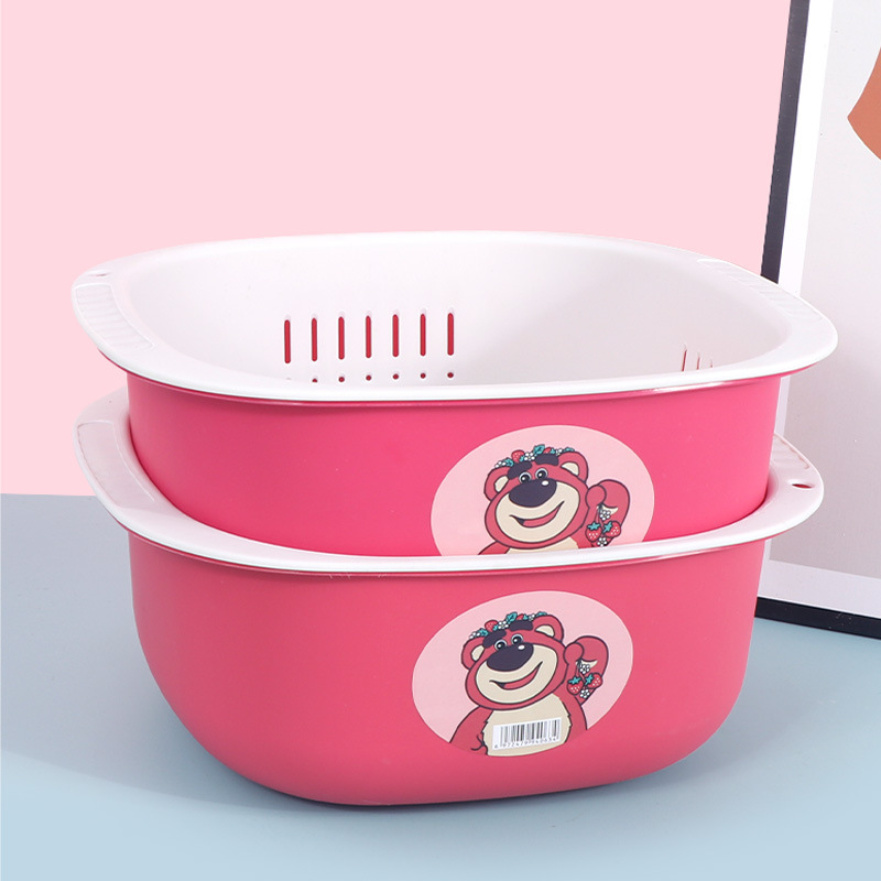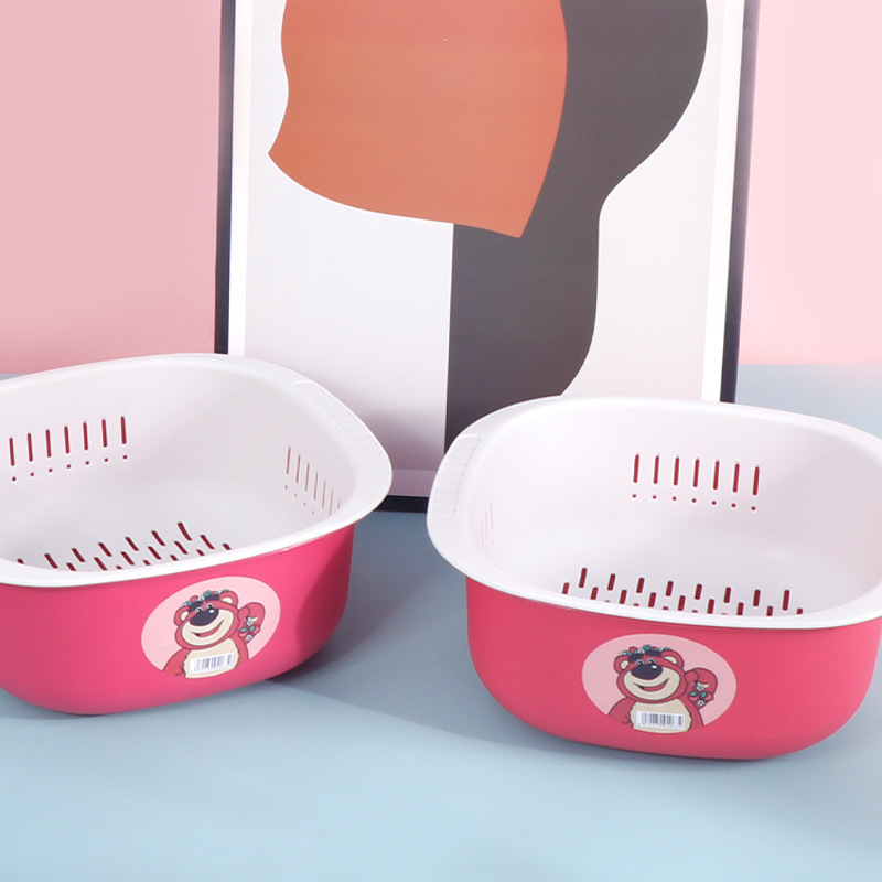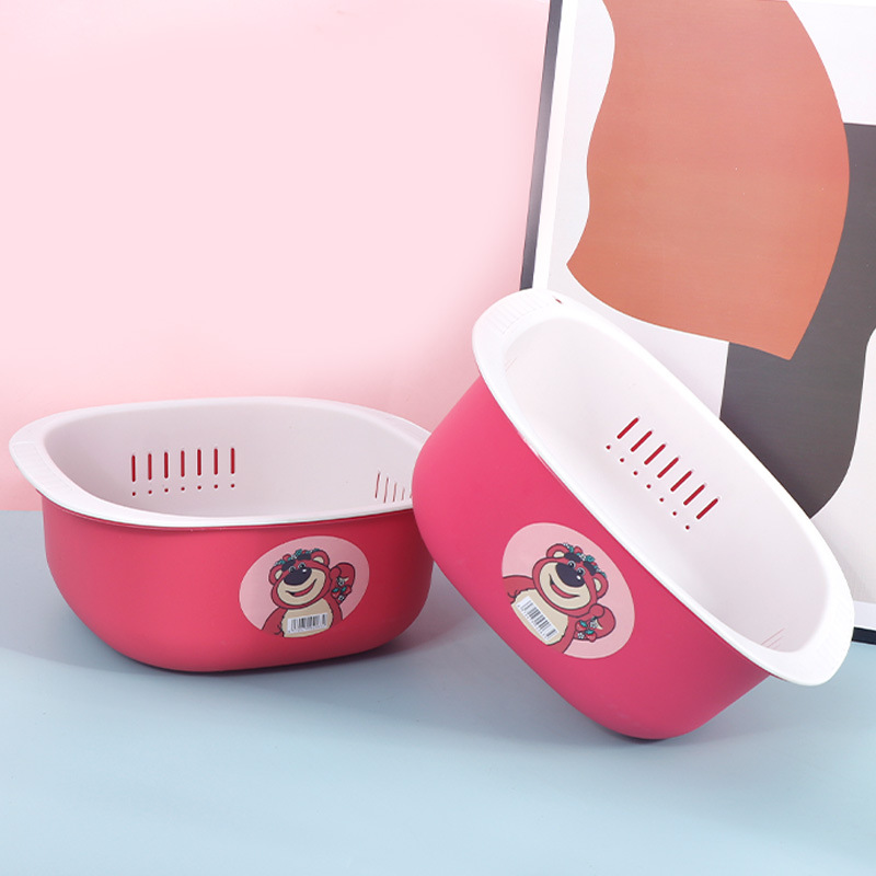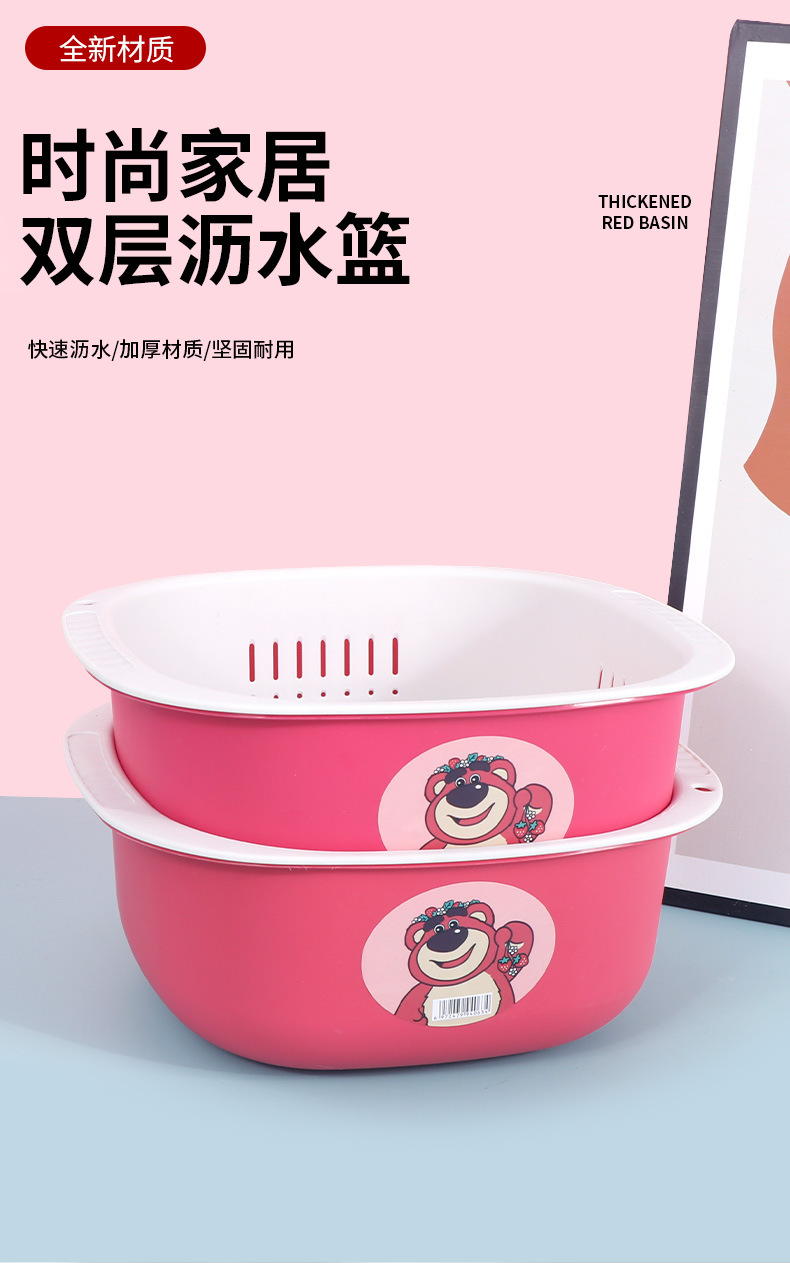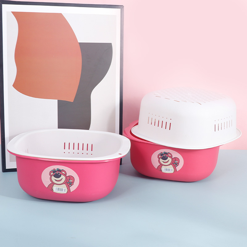 Оптовая продажа мультяшный медведь двухслойная сливная корзина утолщенная кухня многофункциональная раковина корзина для мытья овощей Фильтр воды может быть подвешен может быть настроен