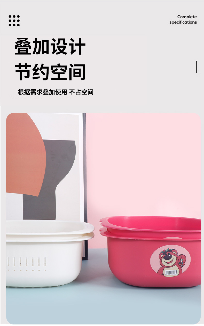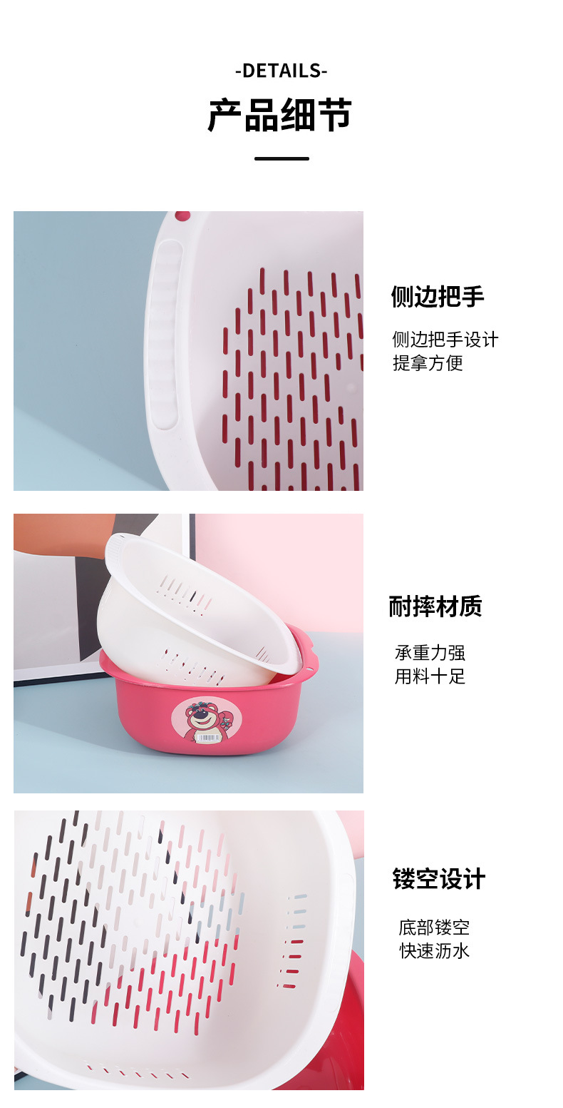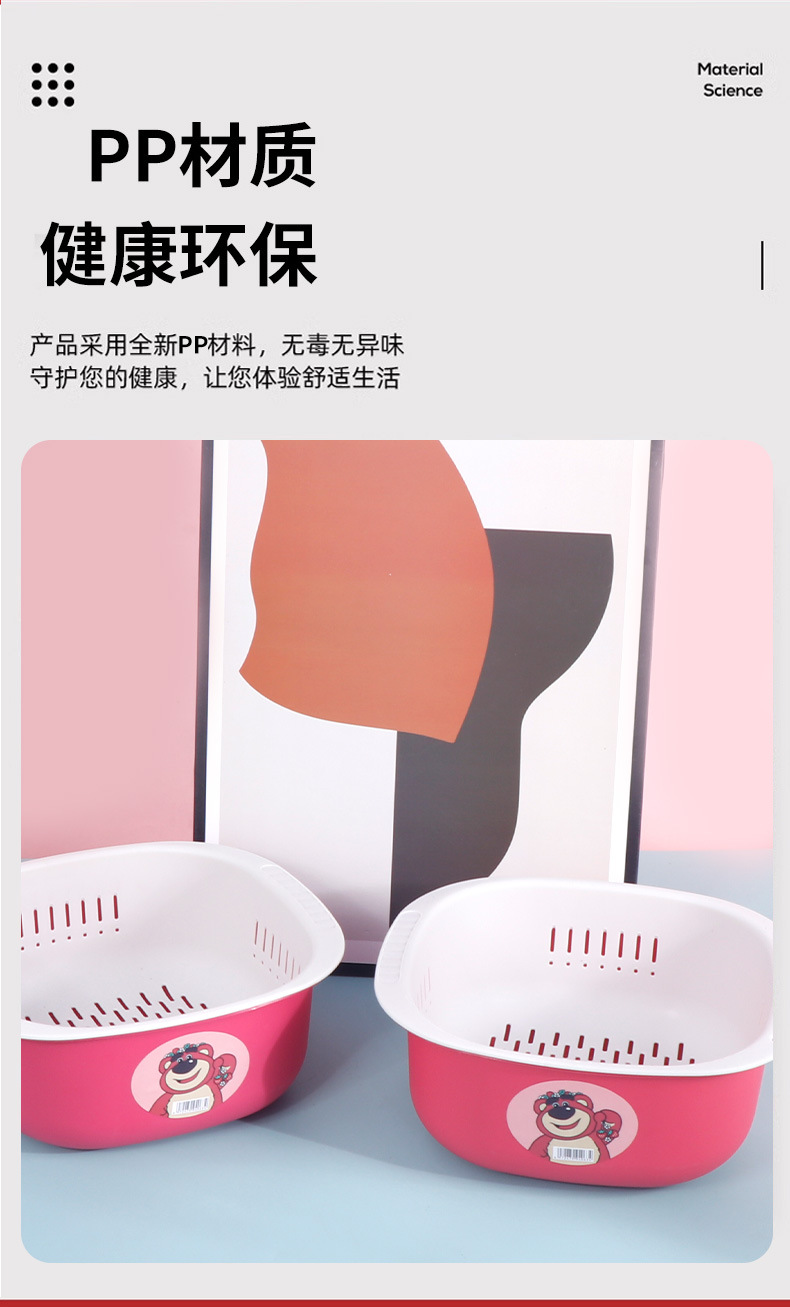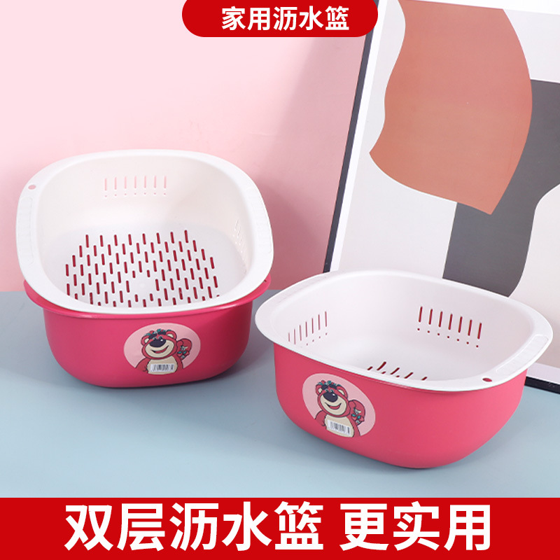 Оптовая продажа мультяшный медведь двухслойная сливная корзина утолщенная кухня многофункциональная раковина корзина для мытья овощей Фильтр воды может быть подвешен может быть настроен