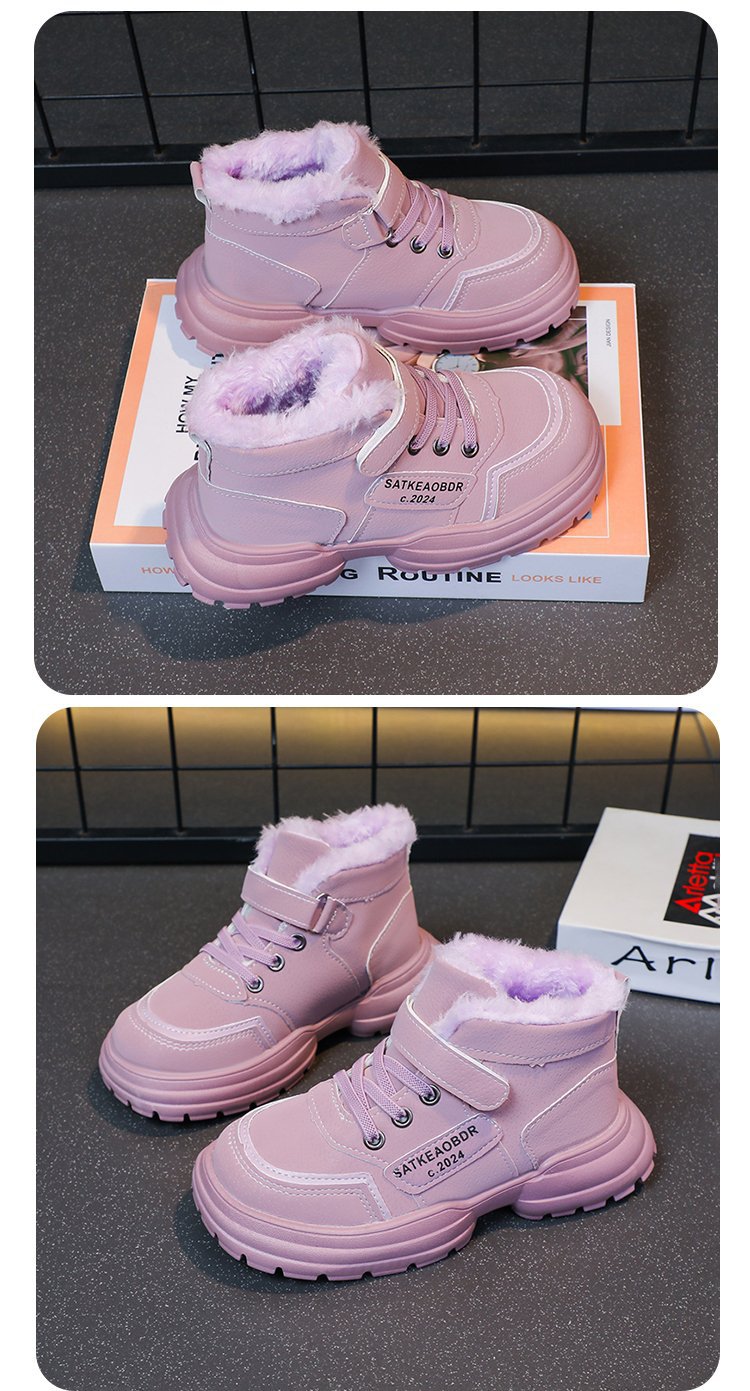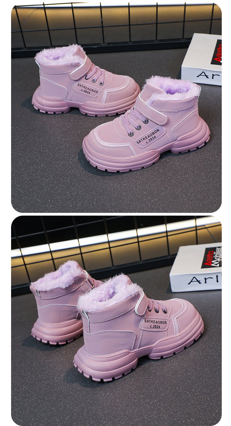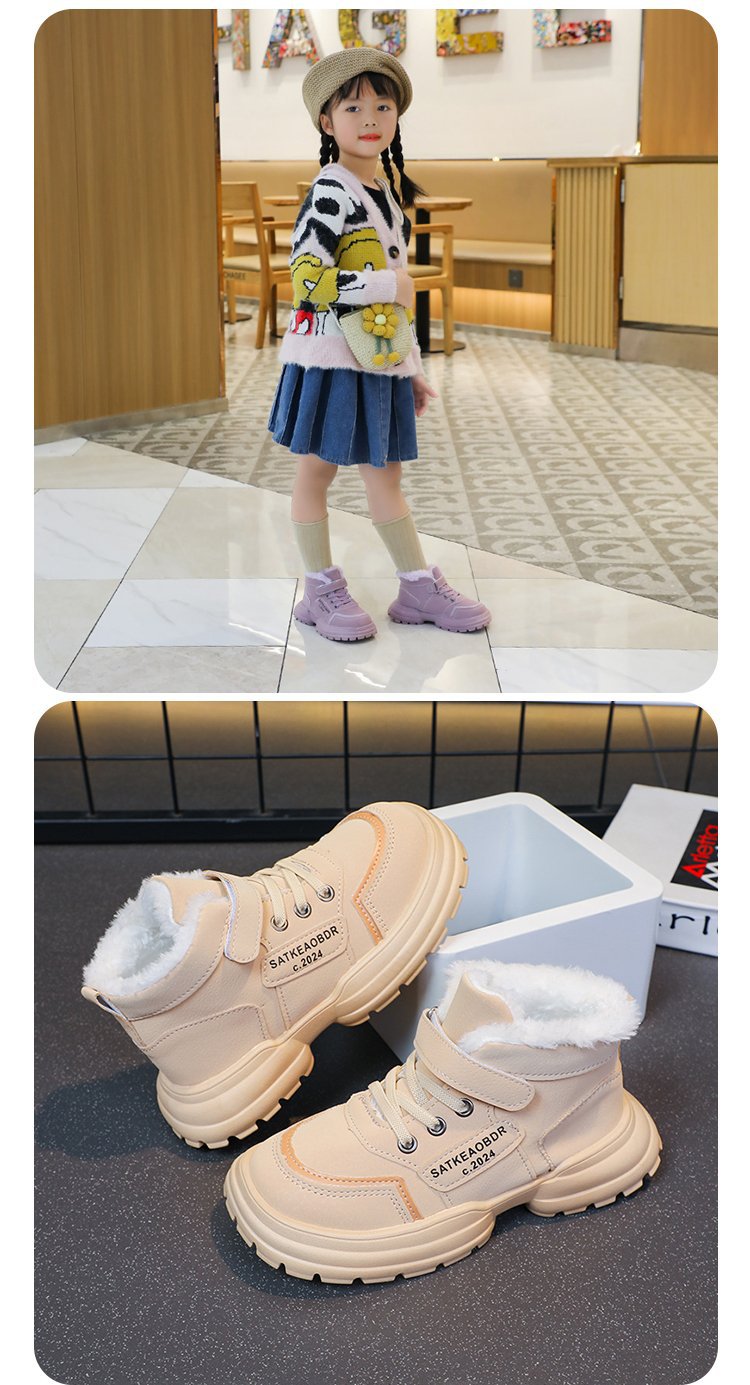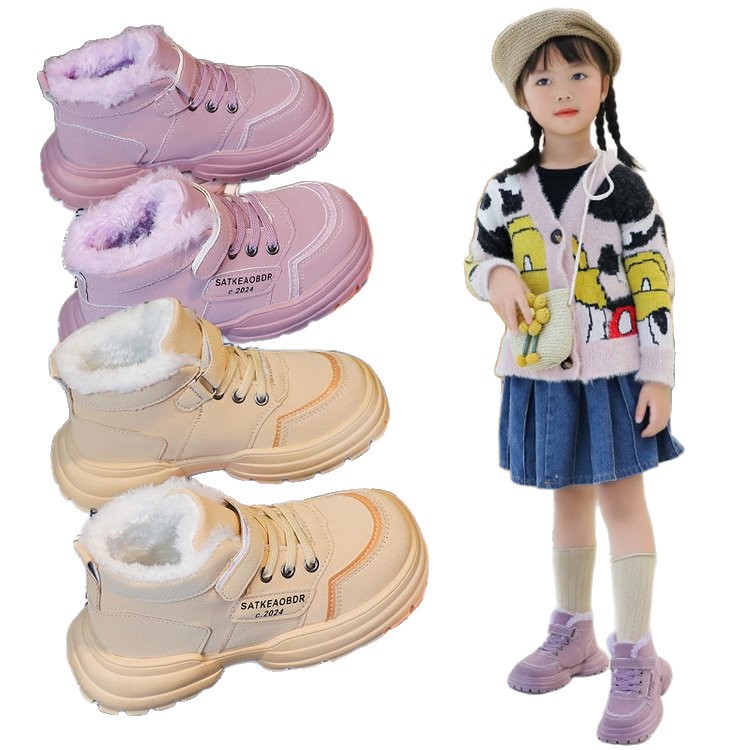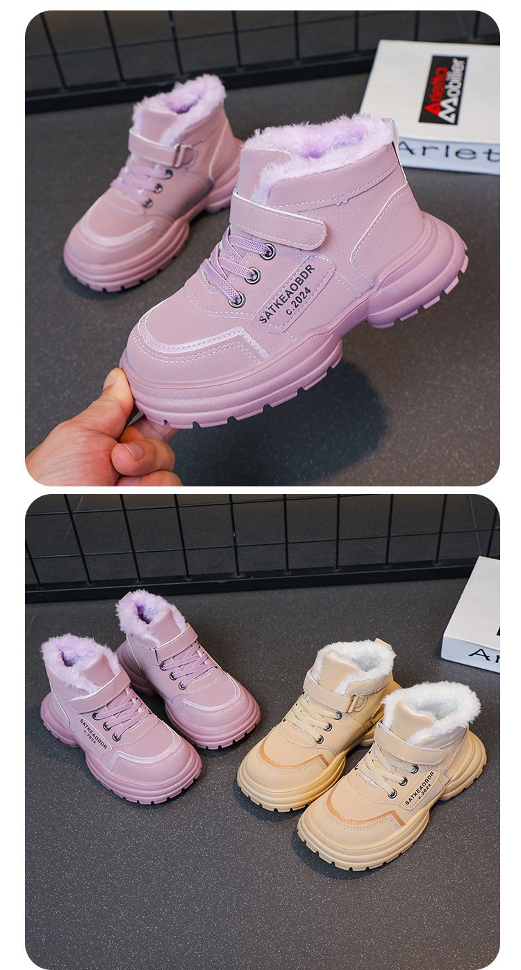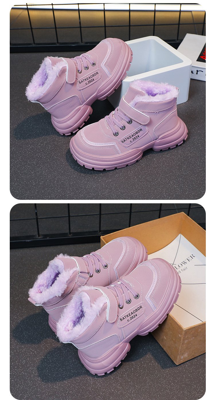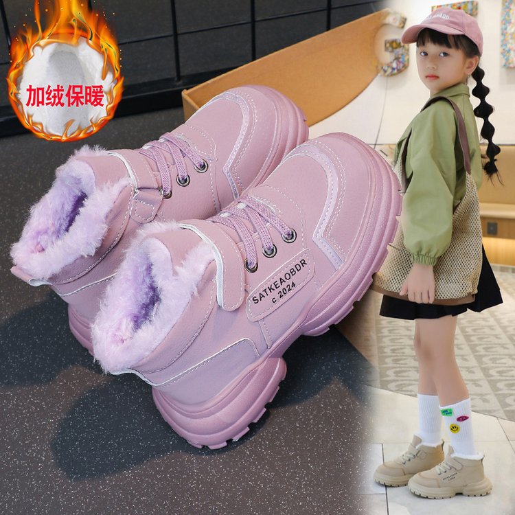 Детские толстые зимние сапоги на флисовой подкладке, теплые уличные сапоги для мальчиков, хлопковая обувь для девочек, интегрированные теплые зимние сапоги для улицы.