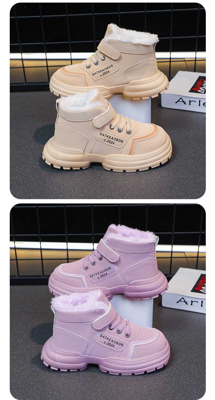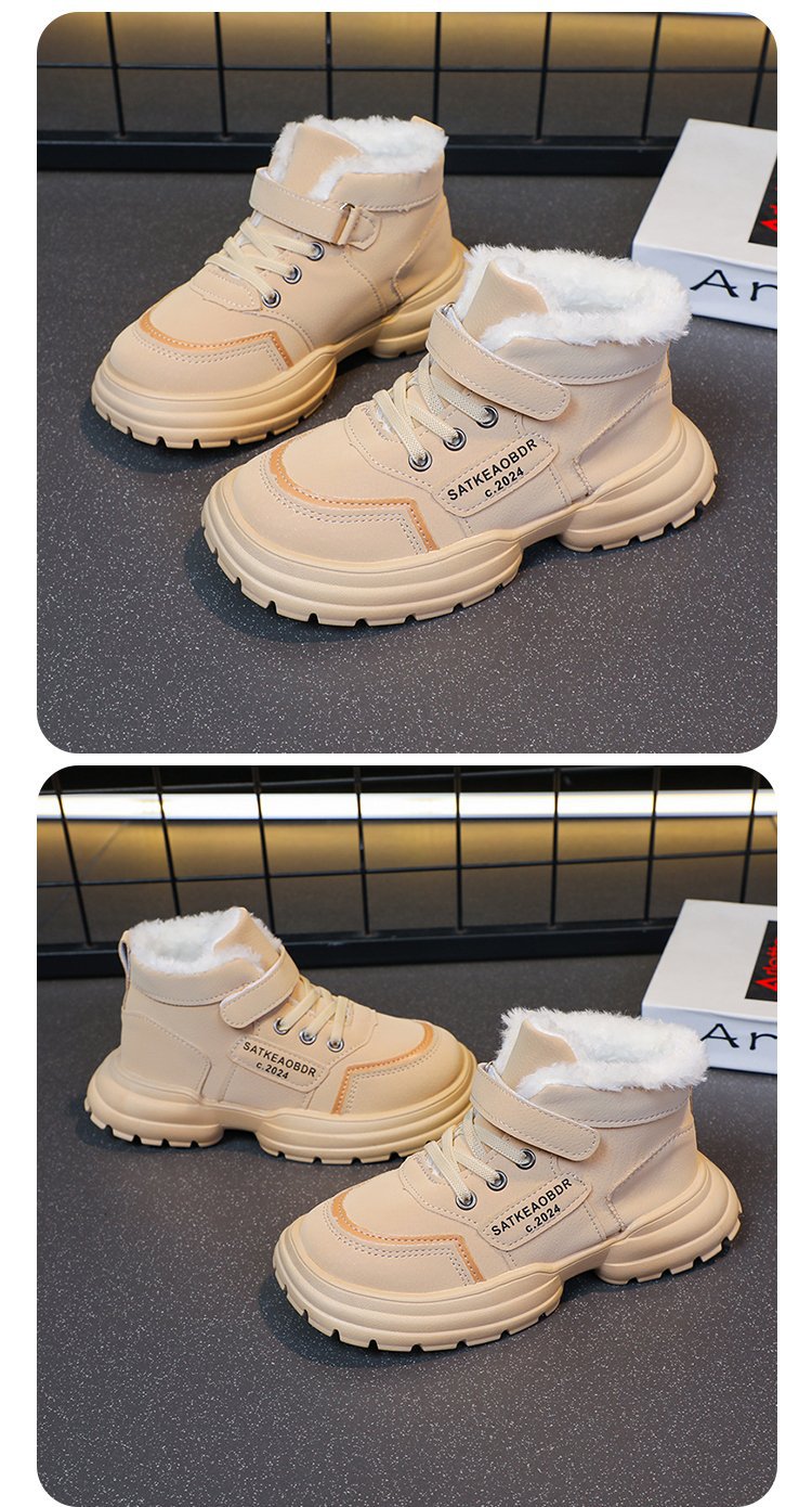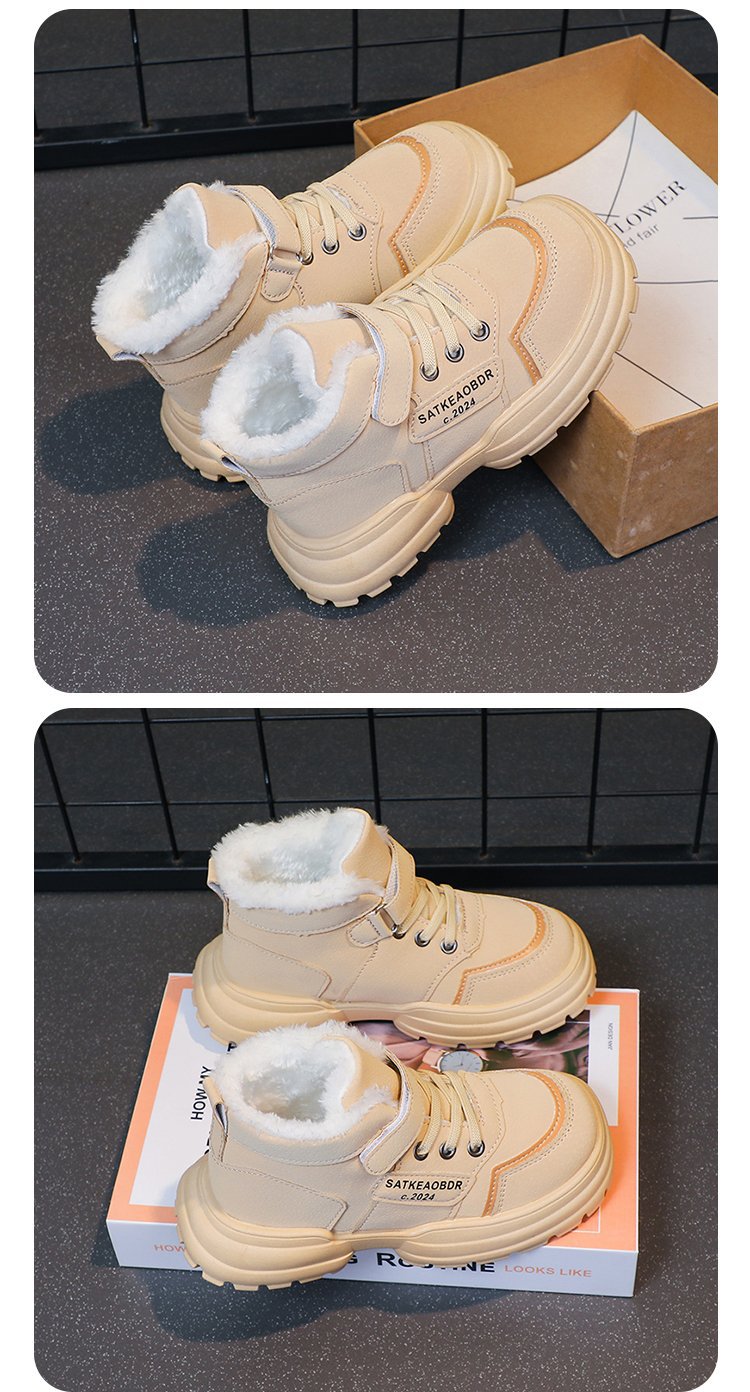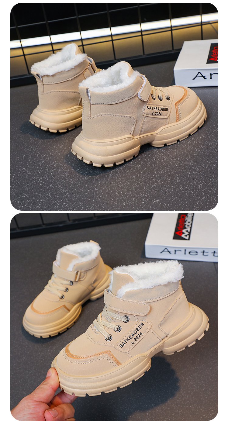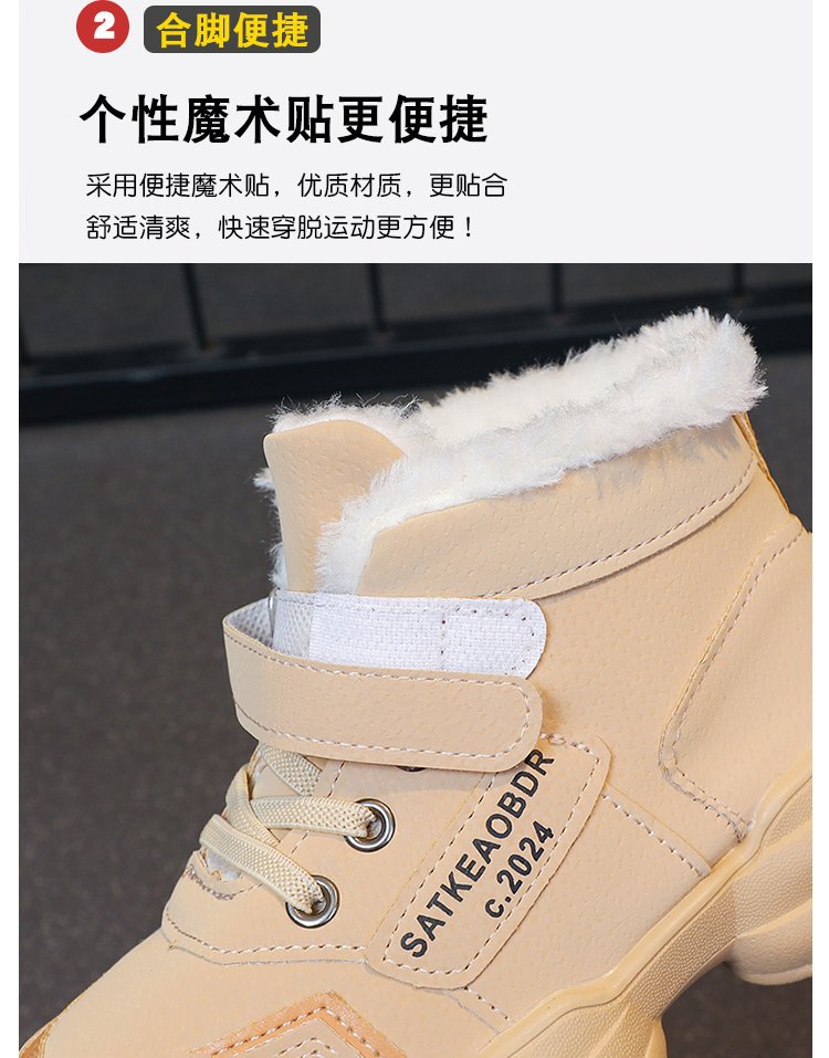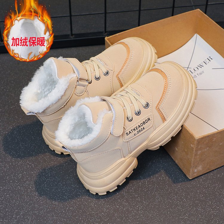 Детские толстые зимние сапоги на флисовой подкладке, теплые уличные сапоги для мальчиков, хлопковая обувь для девочек, интегрированные теплые зимние сапоги для улицы.