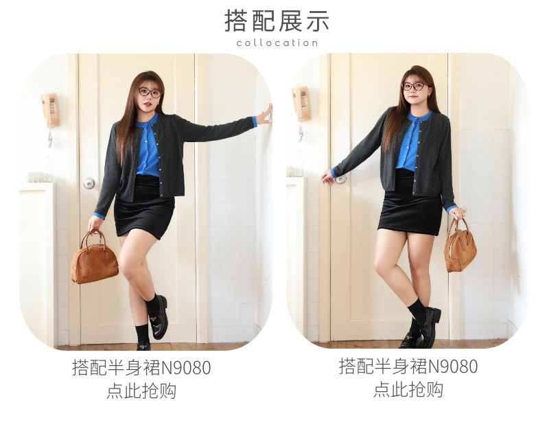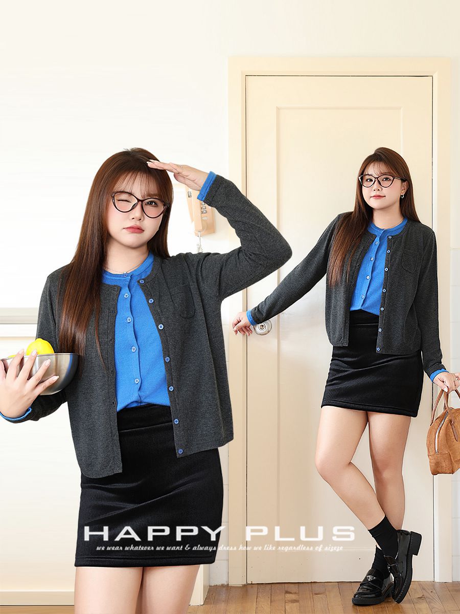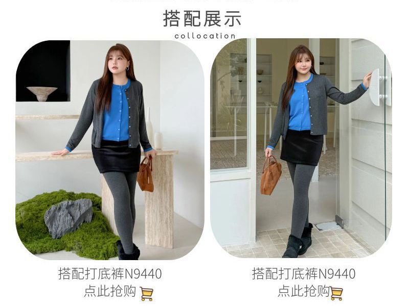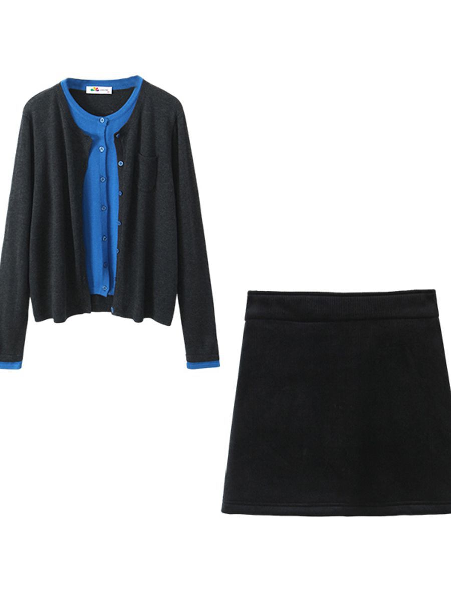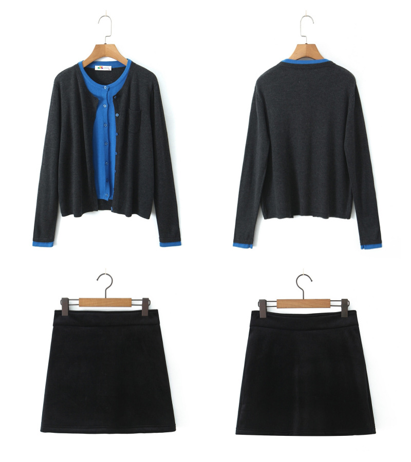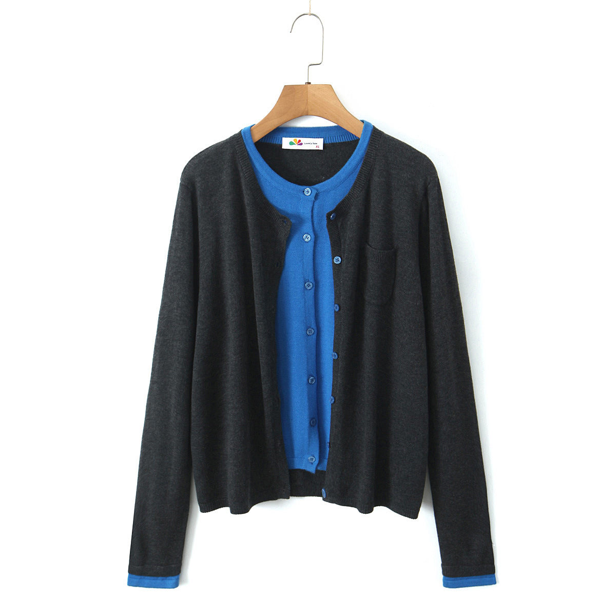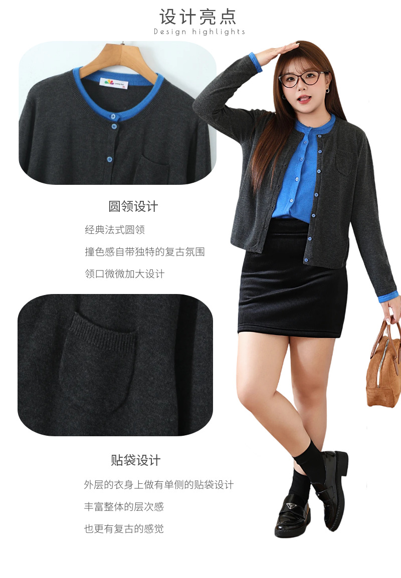 Кардиган в стиле колор-блок из двух частей (эффект двухслойности) для студентов, вязаный, Runqi 9024, больших размеров, теплый зимний комплект для повседневной носки