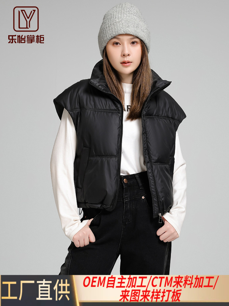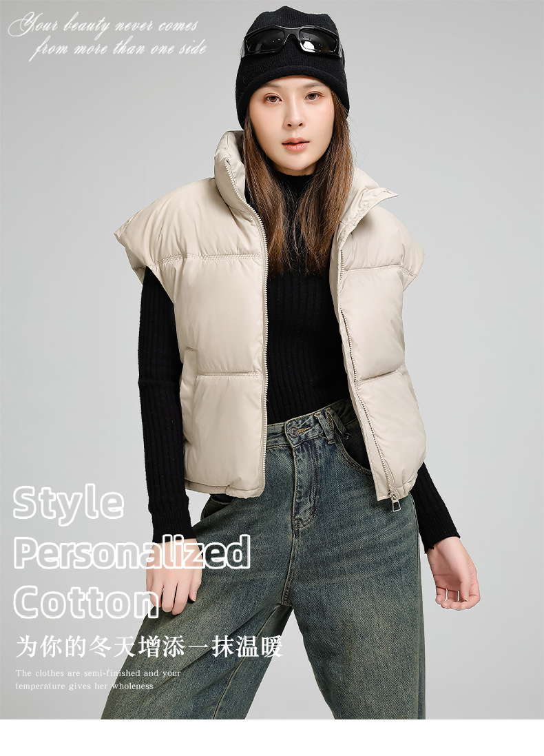 Легкий хлопковый жилет осенью и зимой женский воротник с коротким плечом дикий модный теплый ветрозащитный жилет хлопчатобумажный куртка