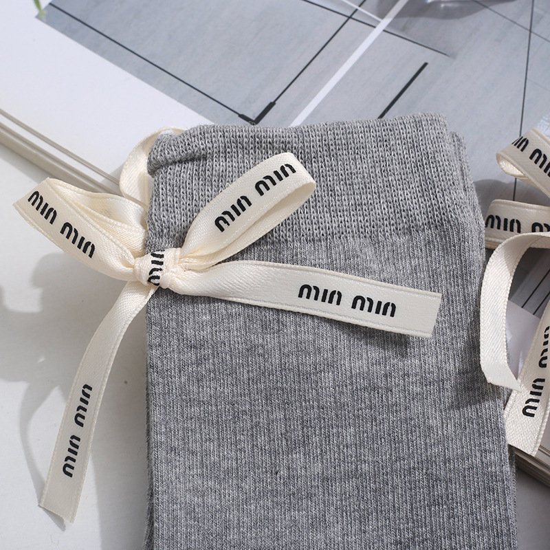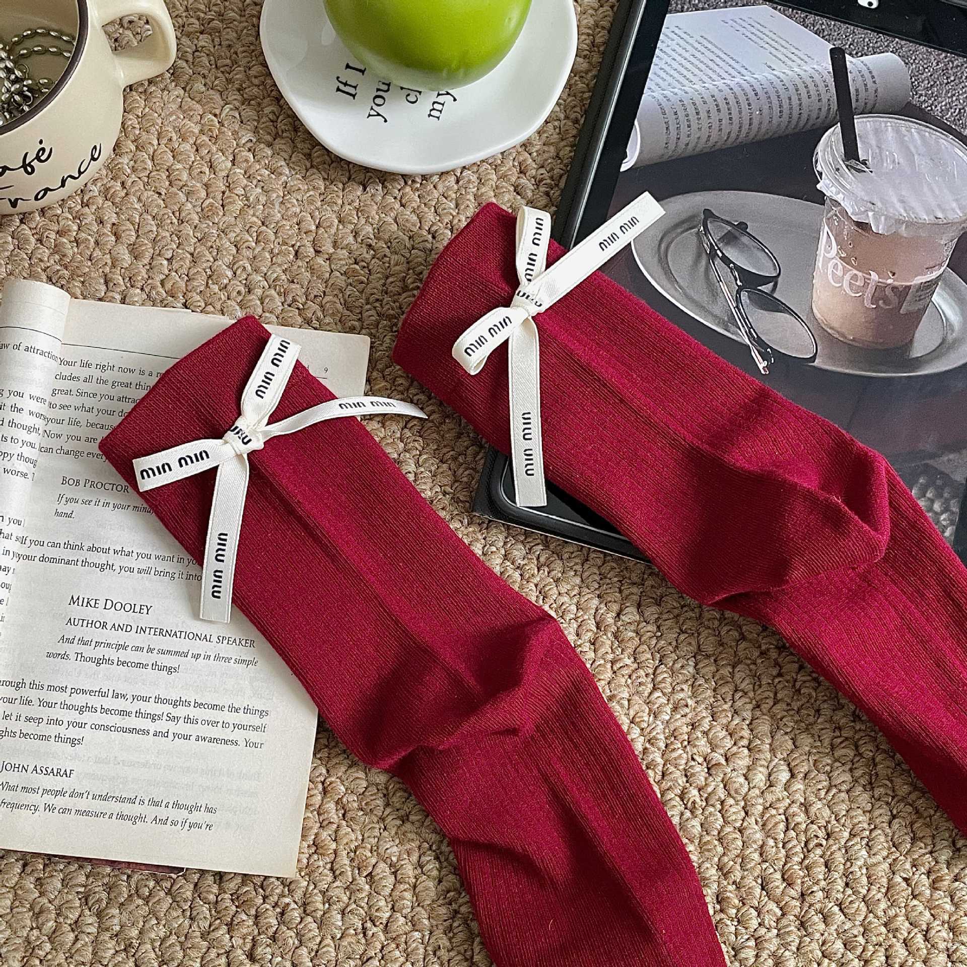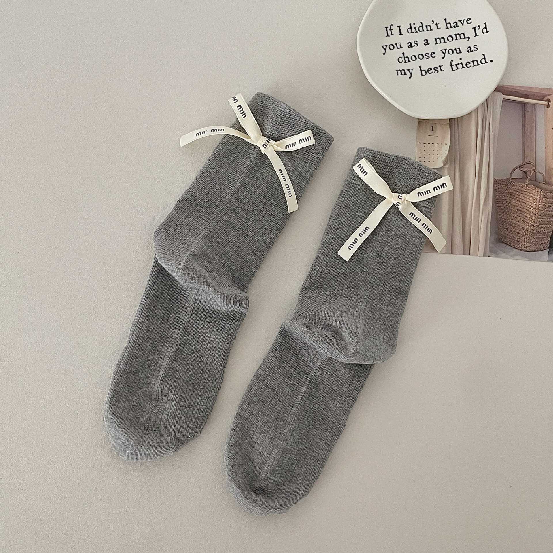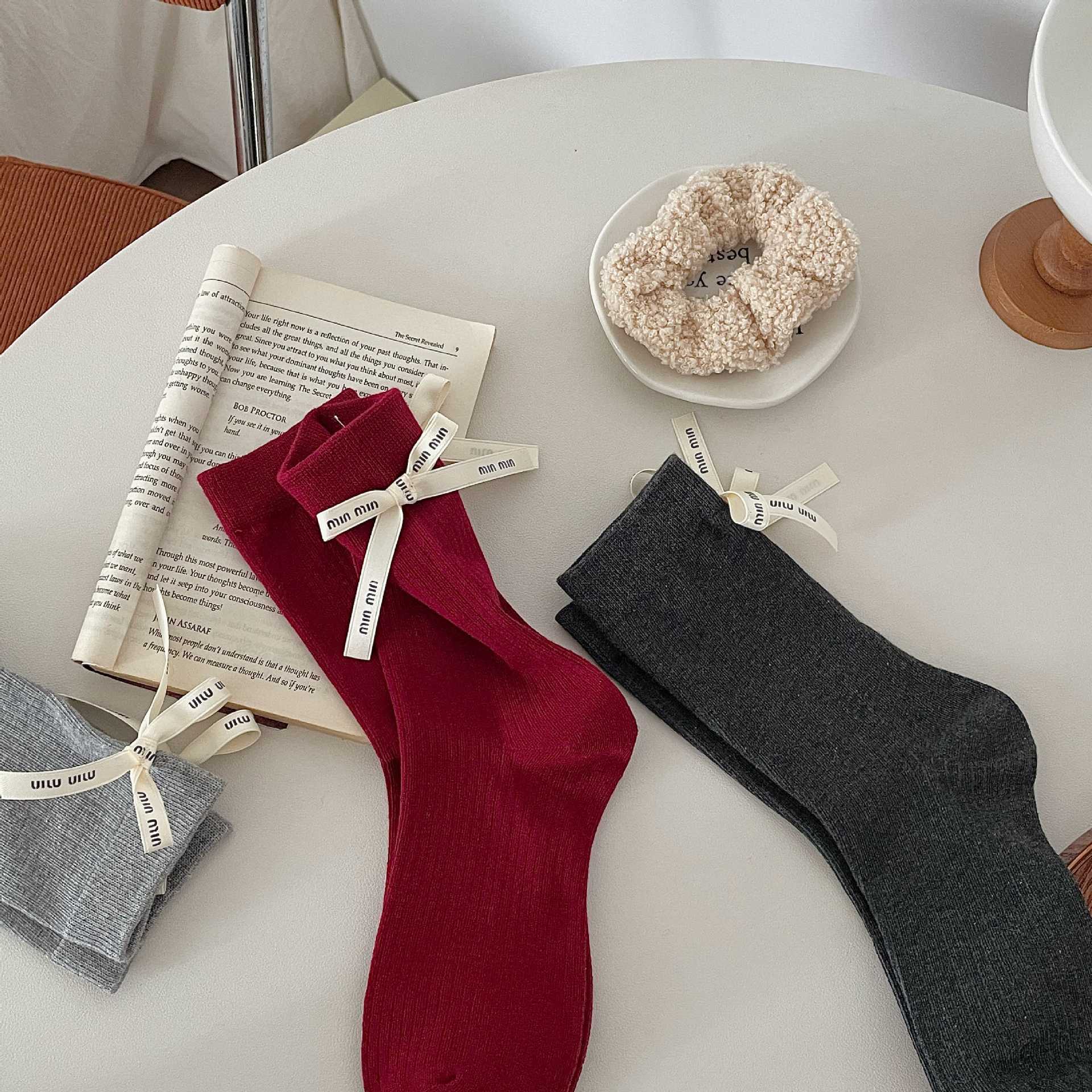 Весенние и летние носки до середины икры Xiaohongshu Instagram с бантом, однотонные, из чистого хлопка, красные, аксессуары, женские носки, праздничные носки на год рождения по китайскому зодиаку