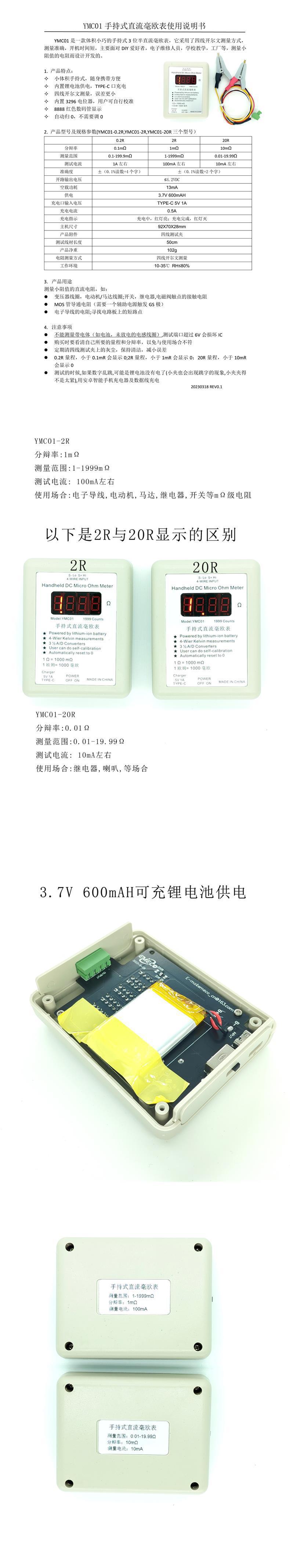 Ручной DC миллиомметр YMC01 DC низкорезистивный тестер перезаряжаемый четырехпроводное измерение Кельвина