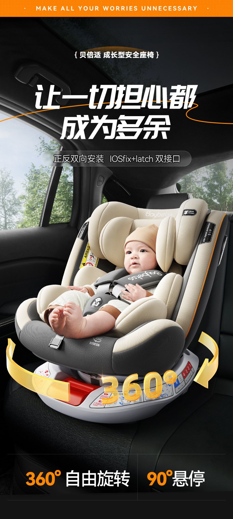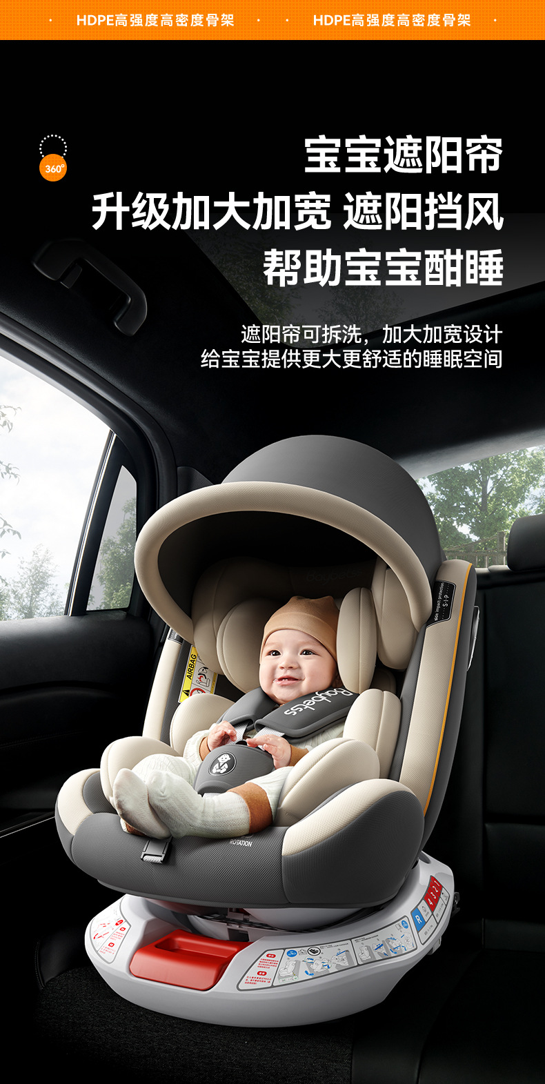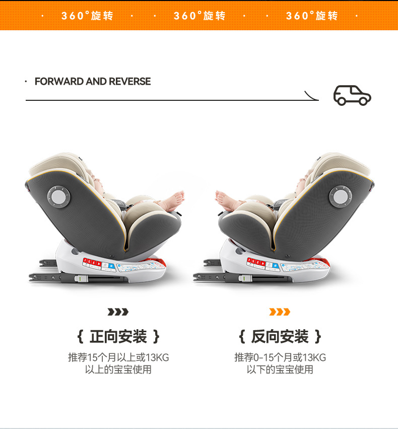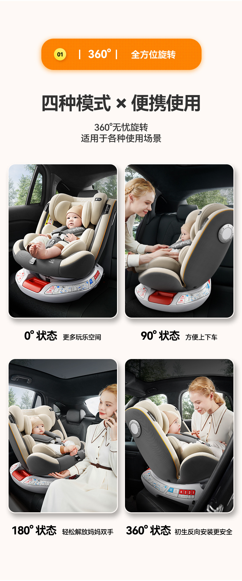 Детское автокресло с регулируемой спинкой, для детей от 0 до 4 лет, с функцией сидения и лежания, поворот на 360 градусов