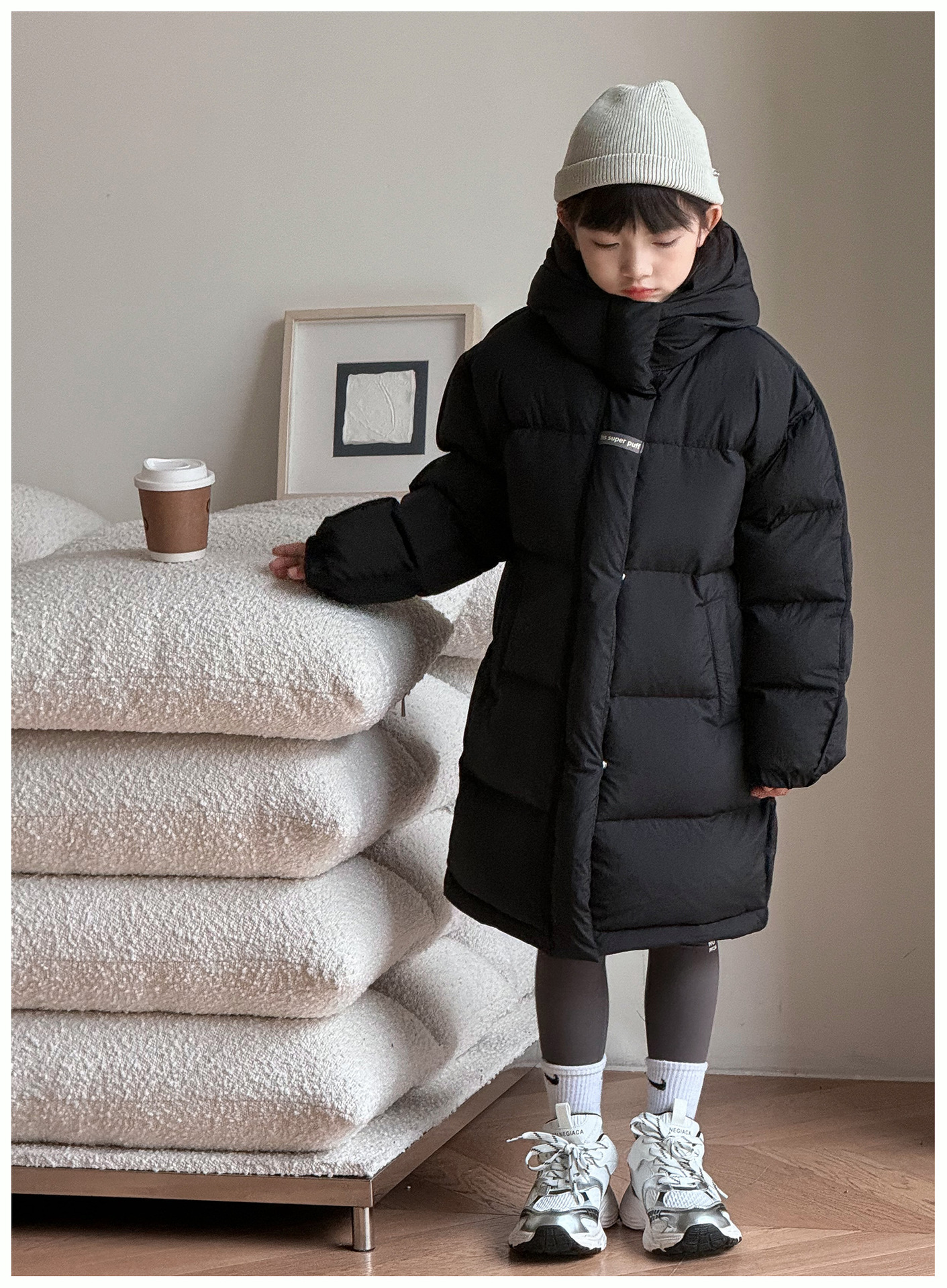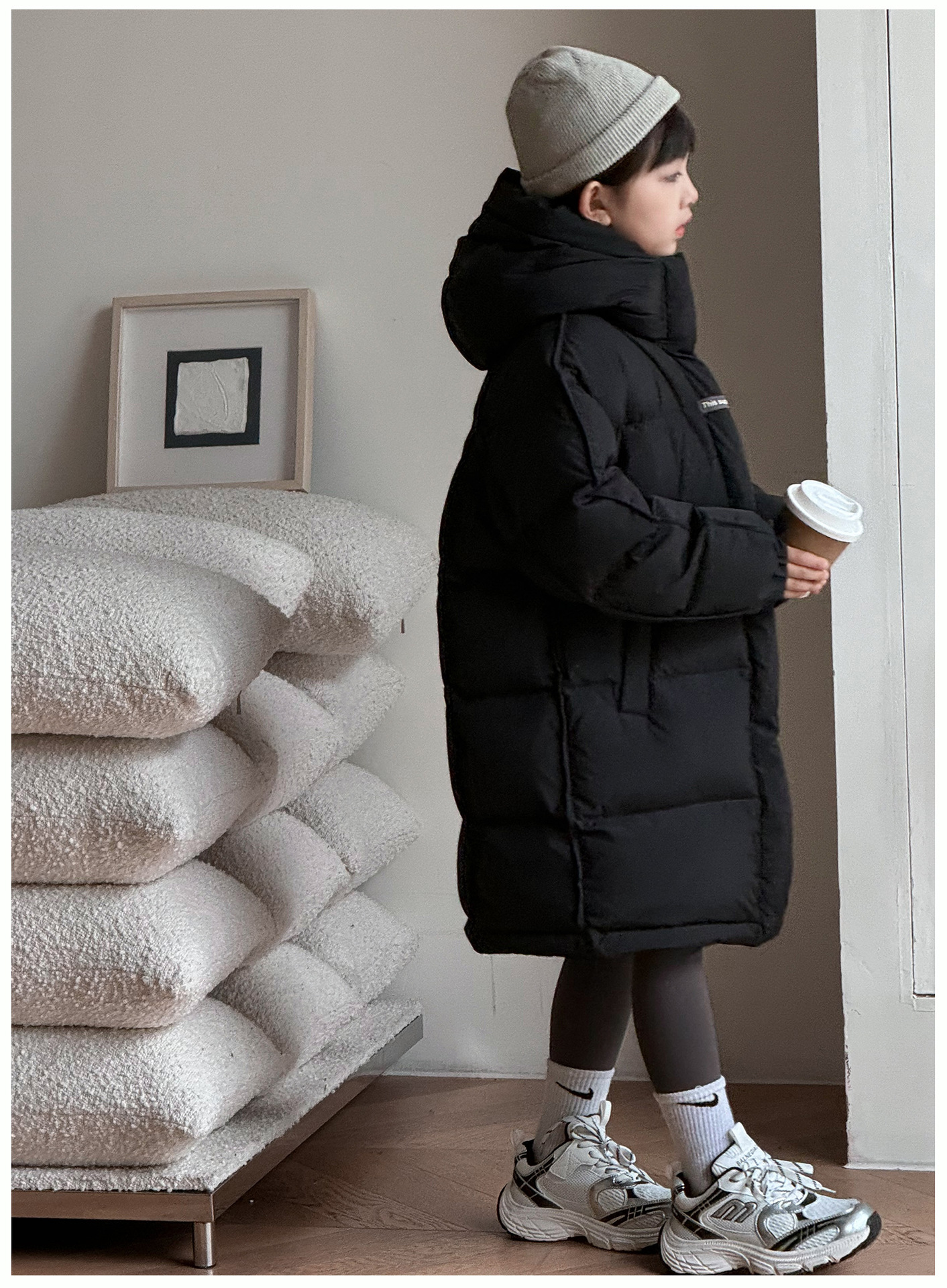 Детские пуховики зимние новые мальчики и девочки среднего и длинного толстого с капюшоном