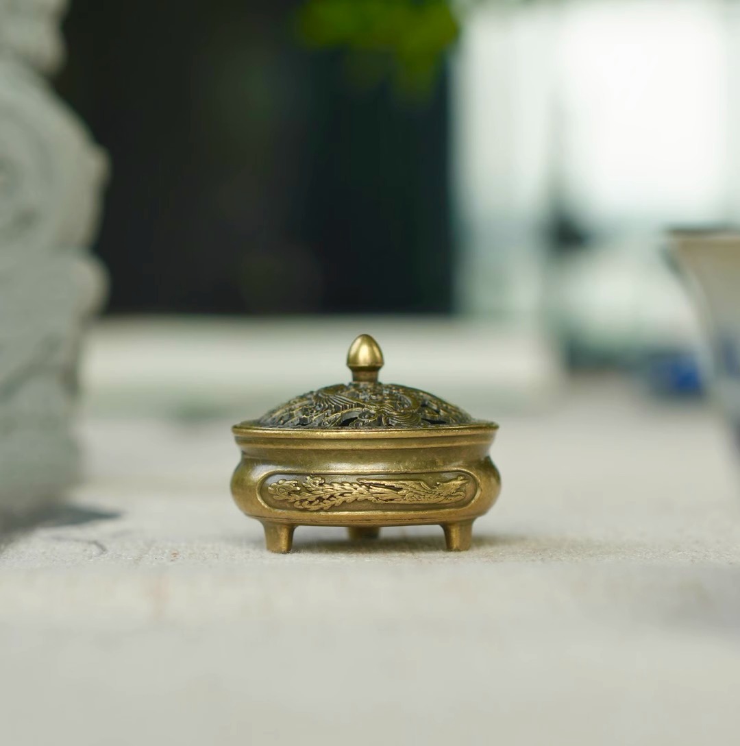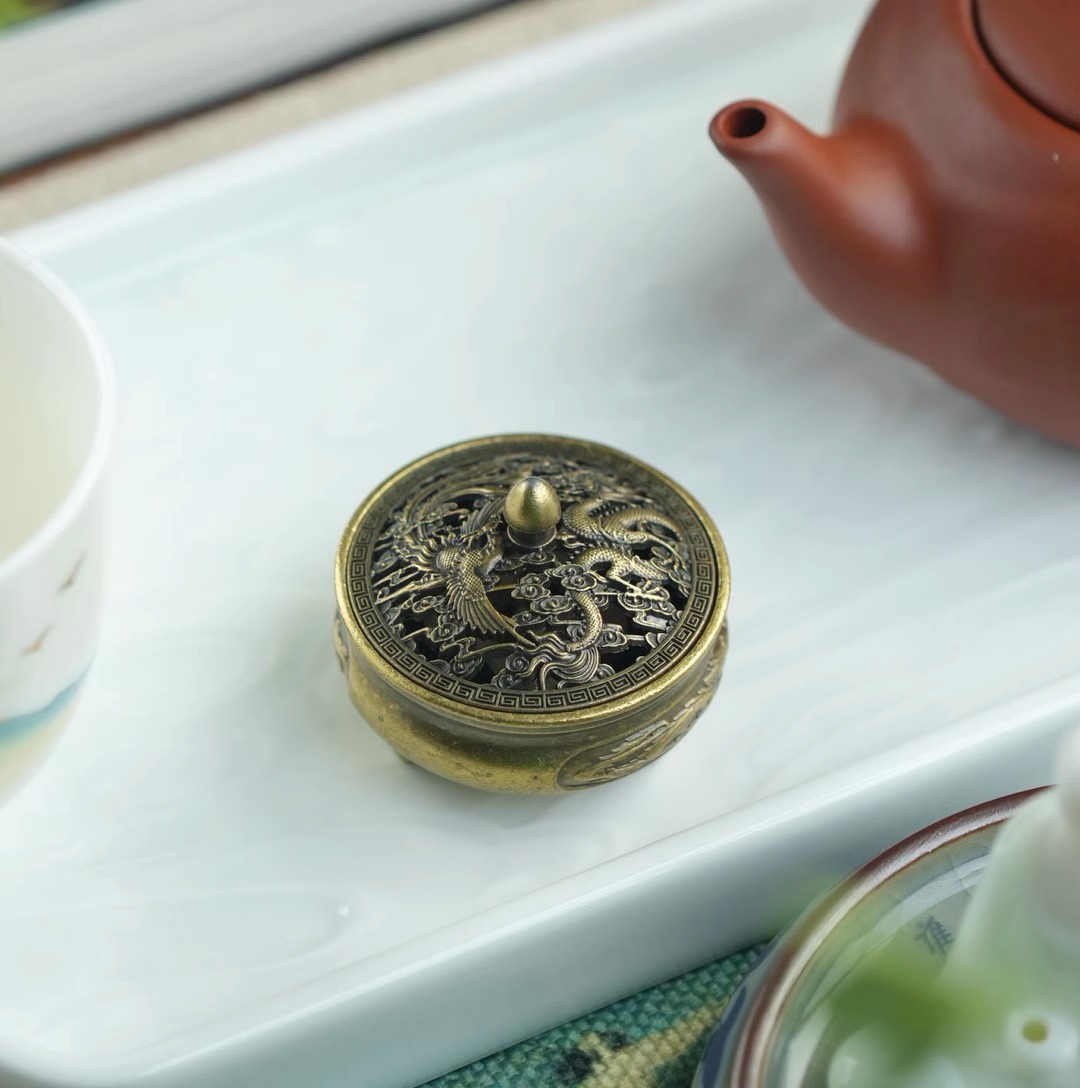 Маленькая курильница с драконом и фениксом (диаметр 3,8 см, 22 г); Маленькая курильница в виде дракона и феникса [диаметр 3,5 см, 13,5 г]