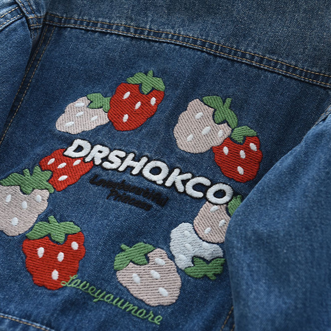 2022秋季新款 后背草莓绣花 女童长袖翻领牛仔服外套