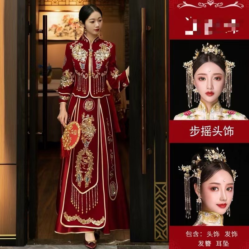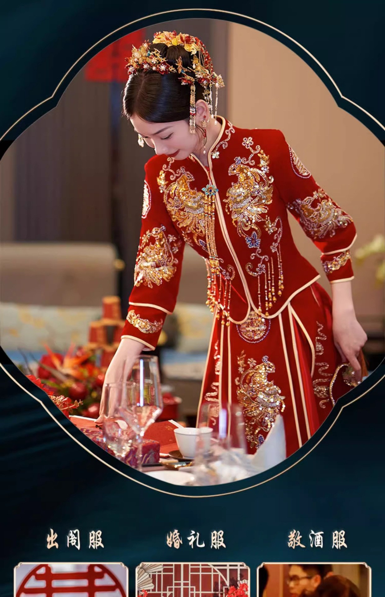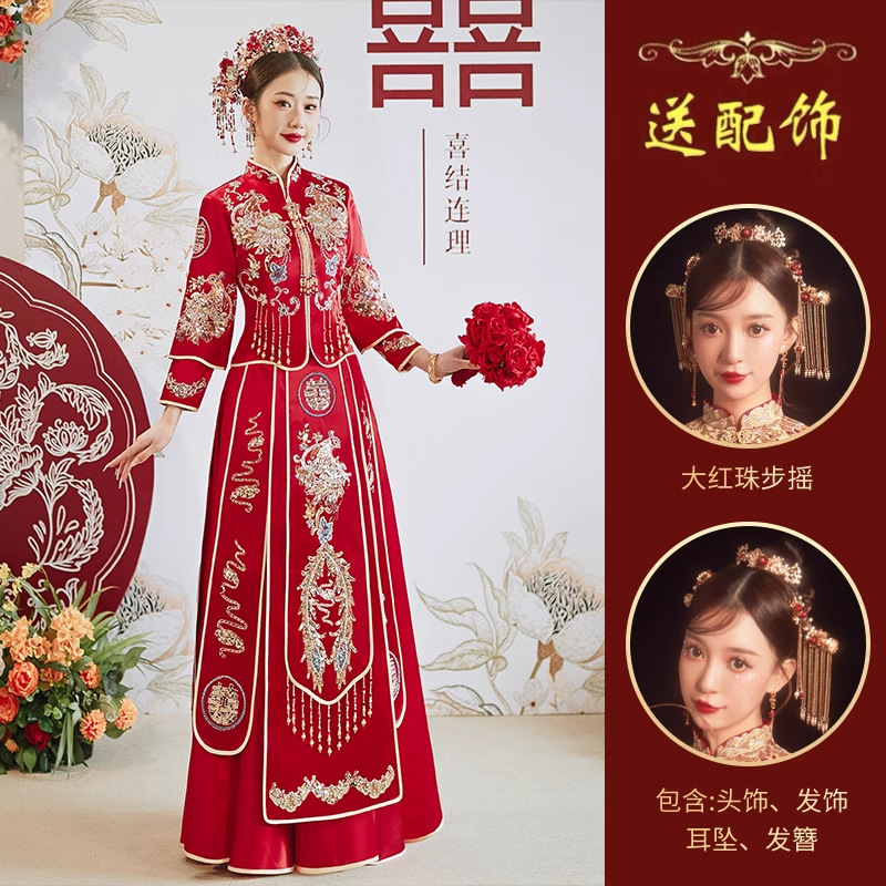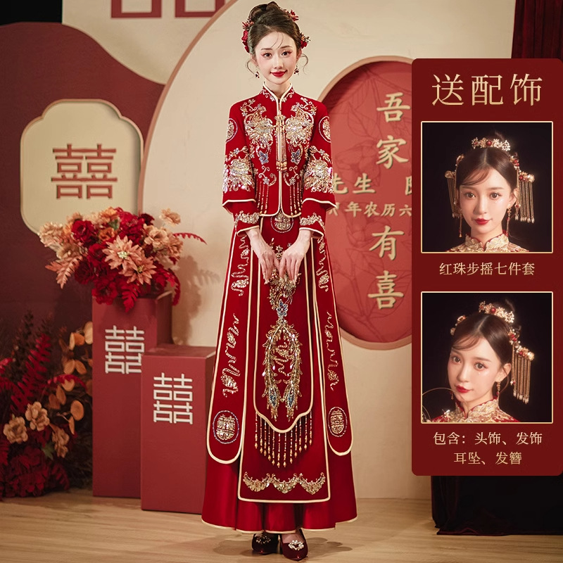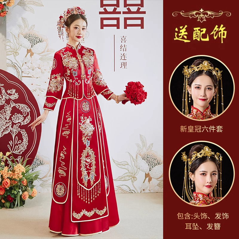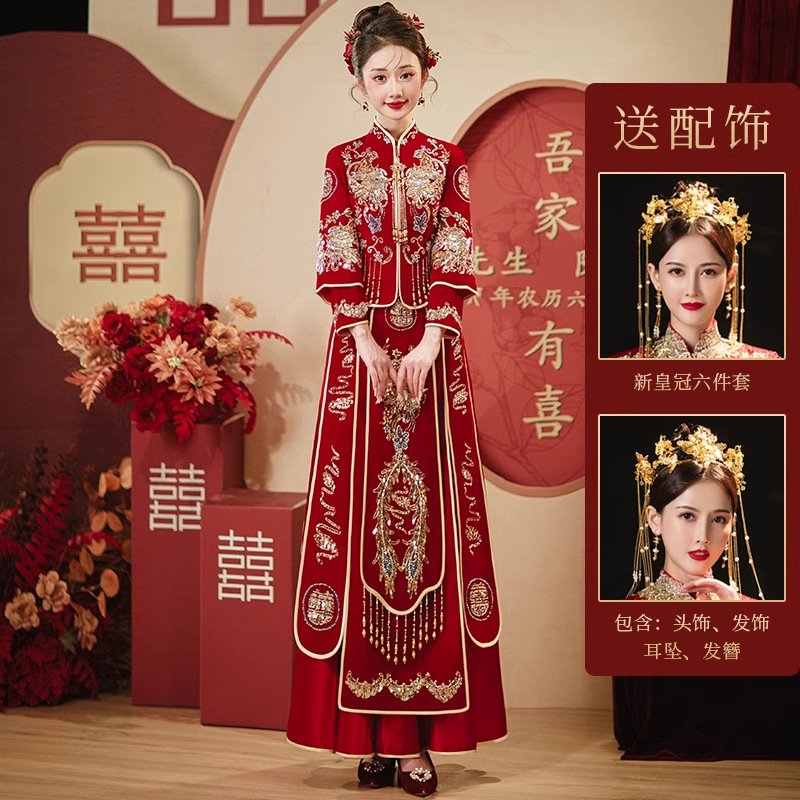 Свадебная одежда Xiuhe 2024 невеста выходит из китайского свадебного платья