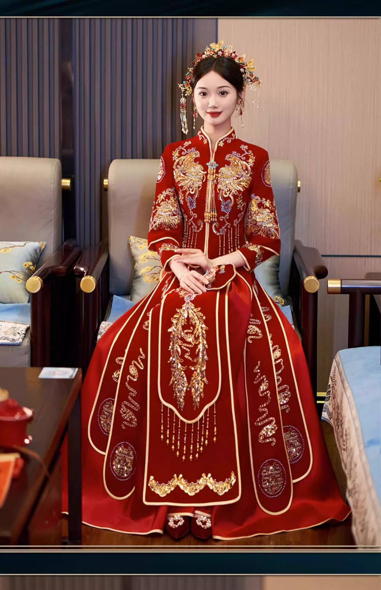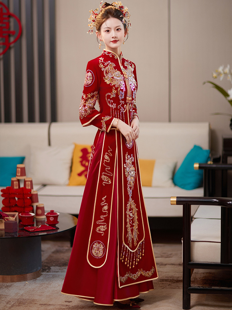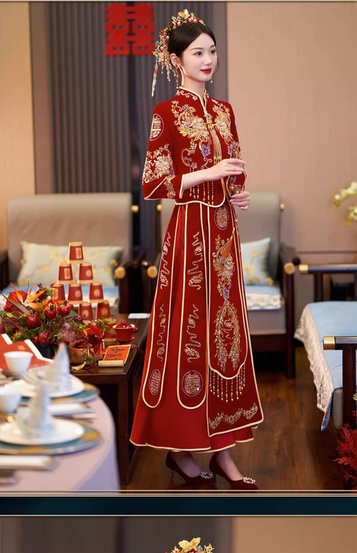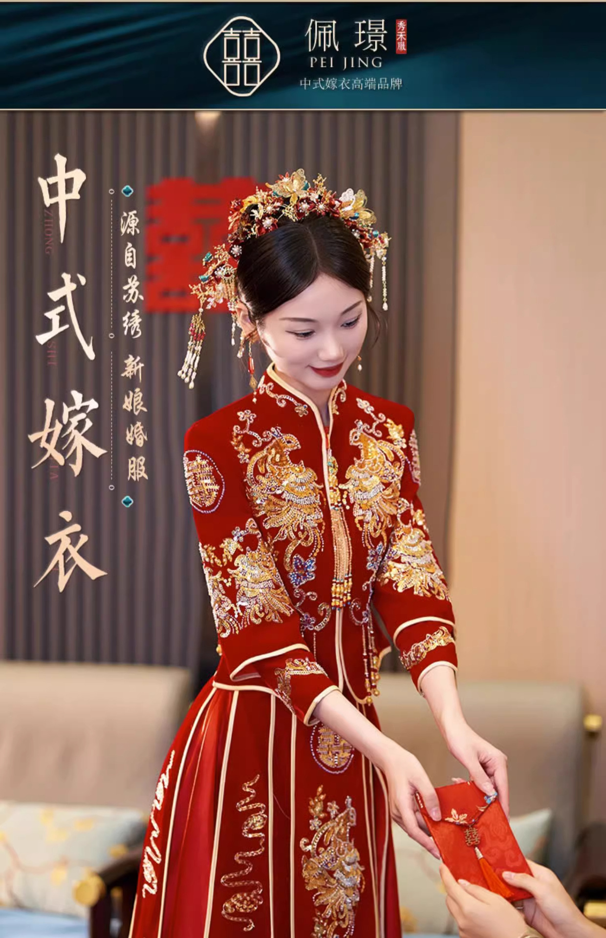 Свадебная одежда Xiuhe 2024 невеста выходит из китайского свадебного платья