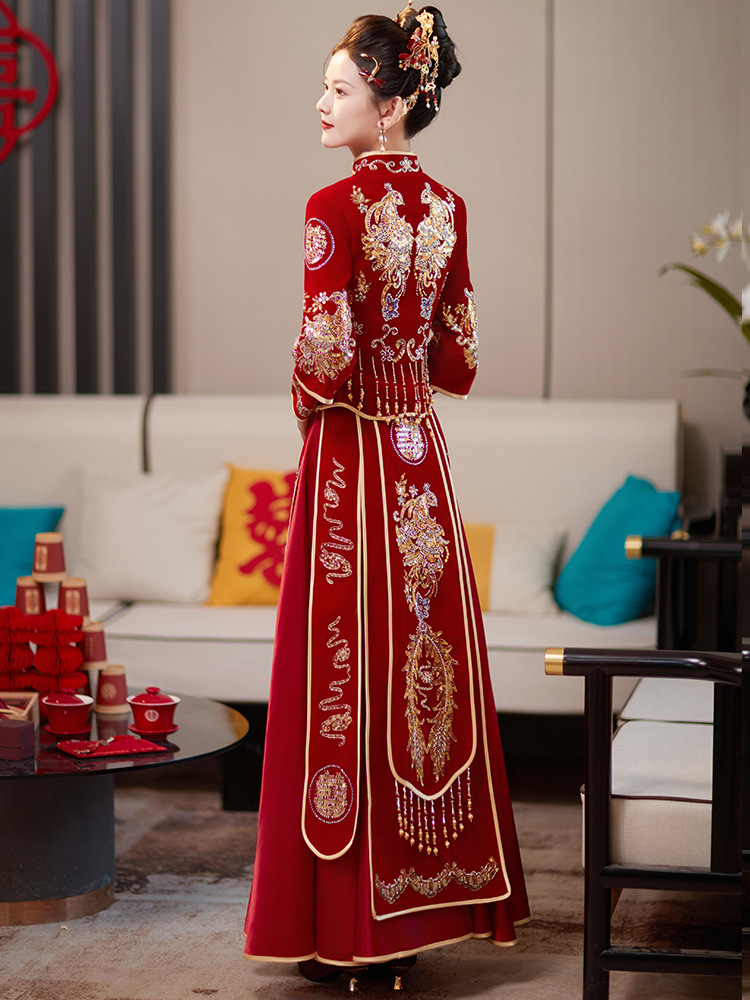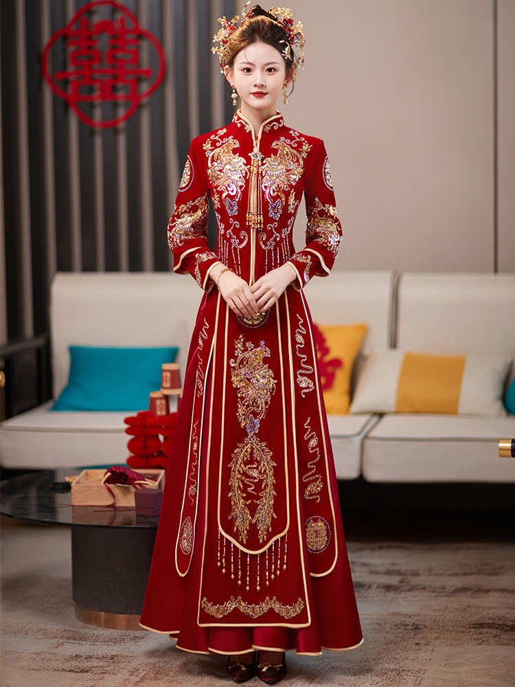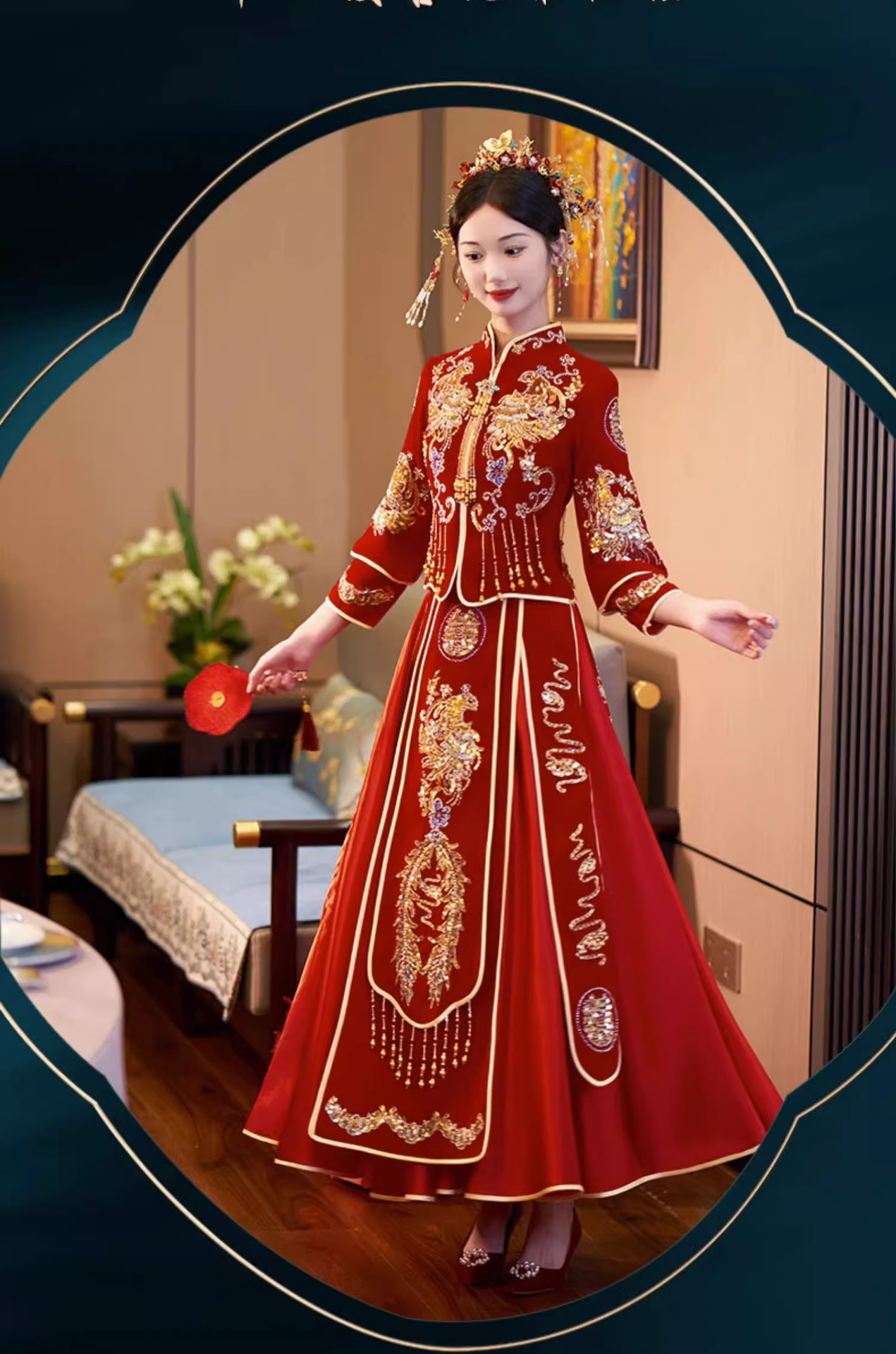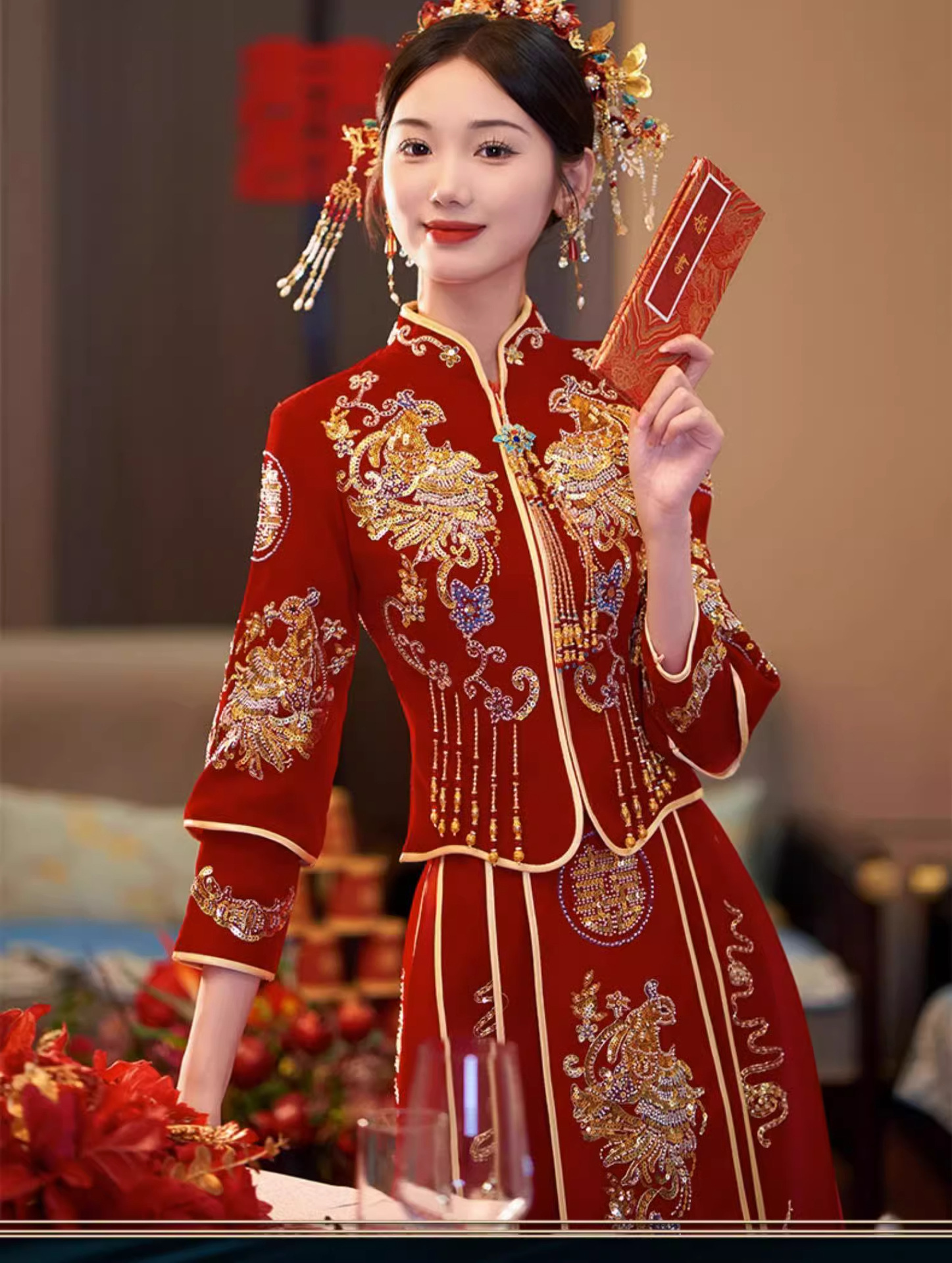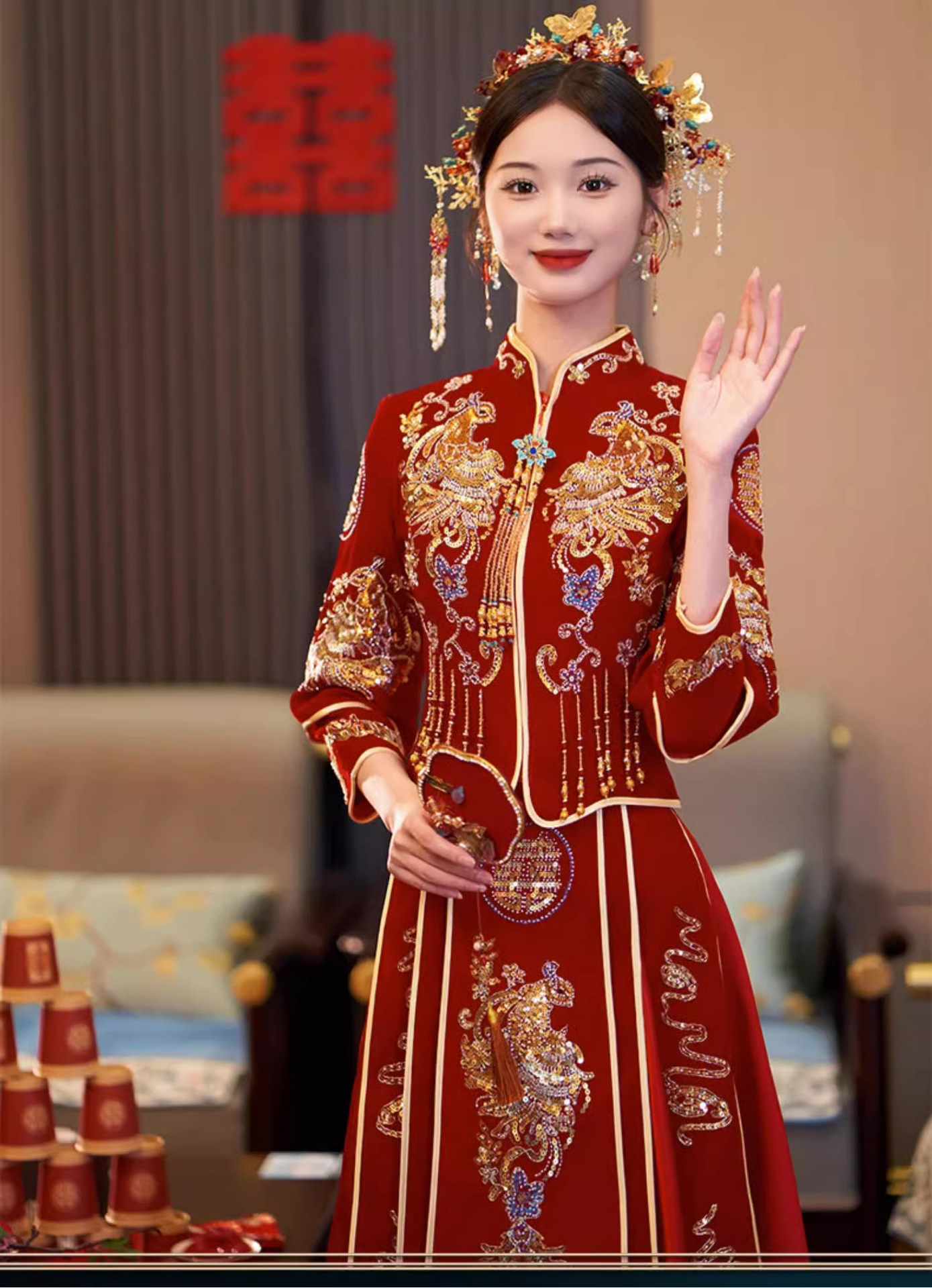 Свадебная одежда Xiuhe 2024 невеста выходит из китайского свадебного платья