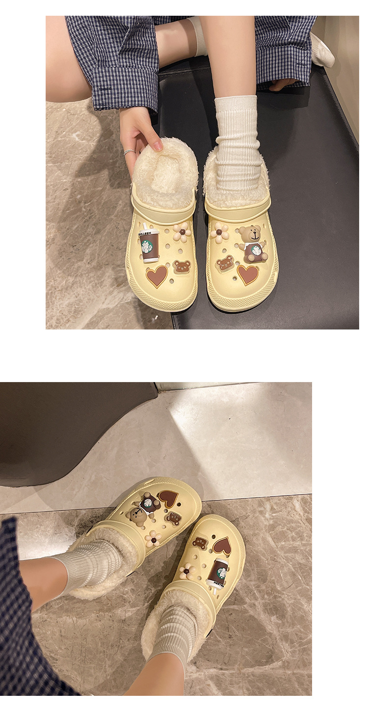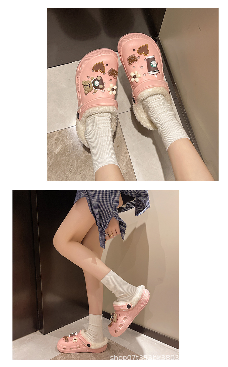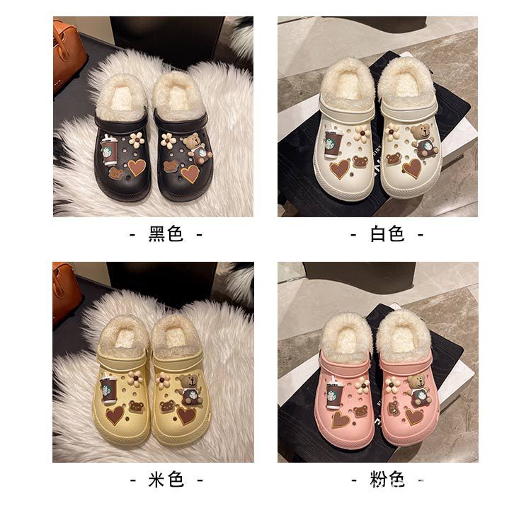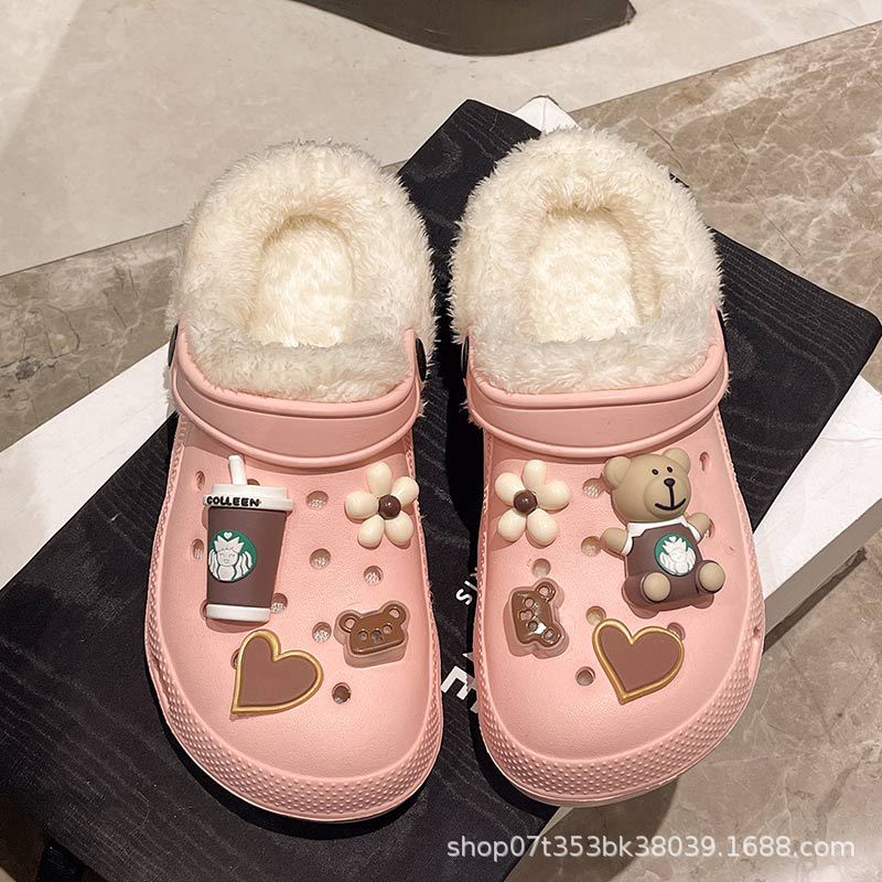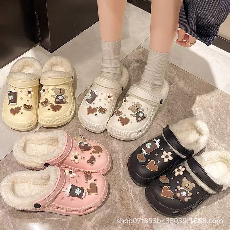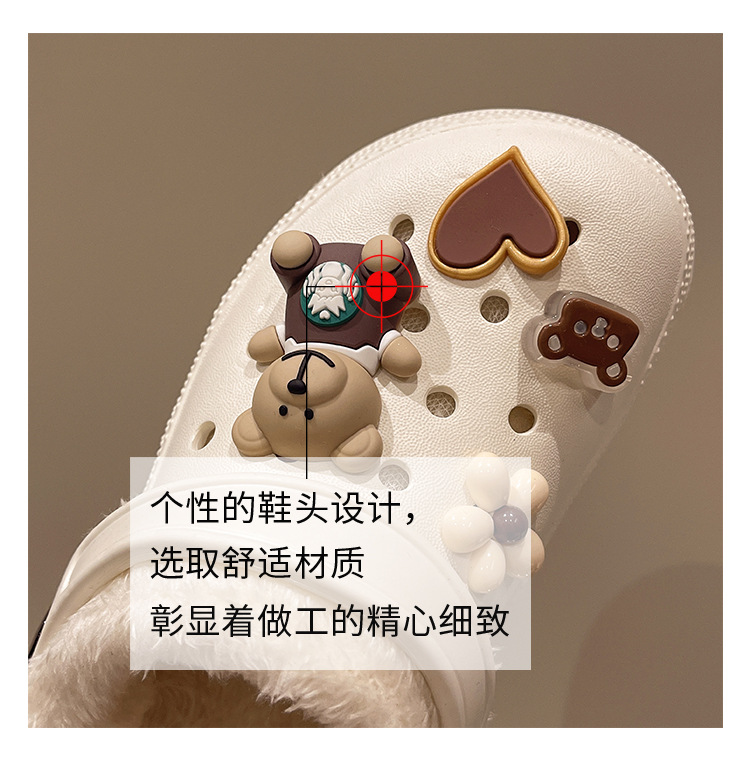 Плюшевая дырочная обувь мультяшный медведь женская мода на внешнем осенне-зимний новый eva плоское дно съемный ленивый Баотоу