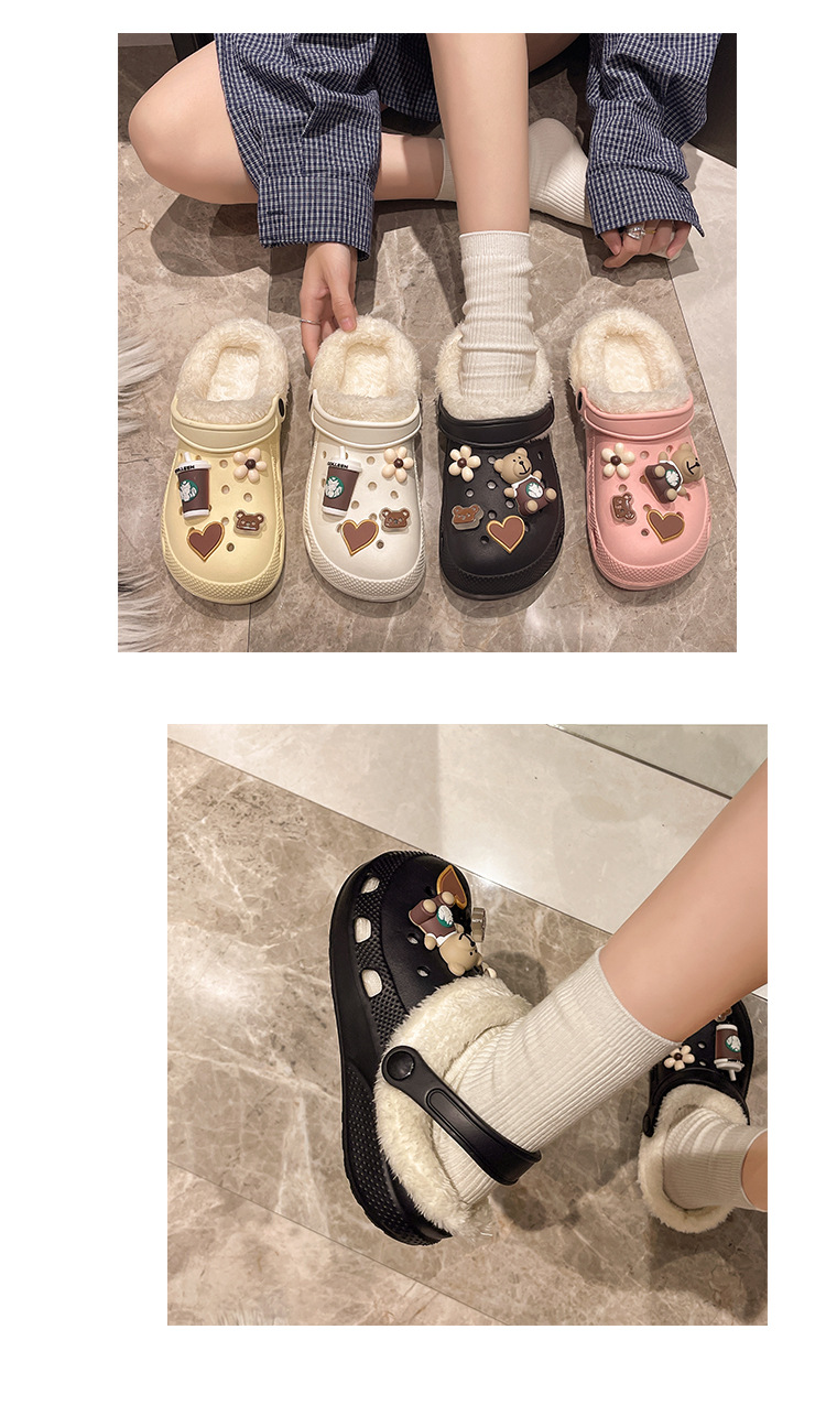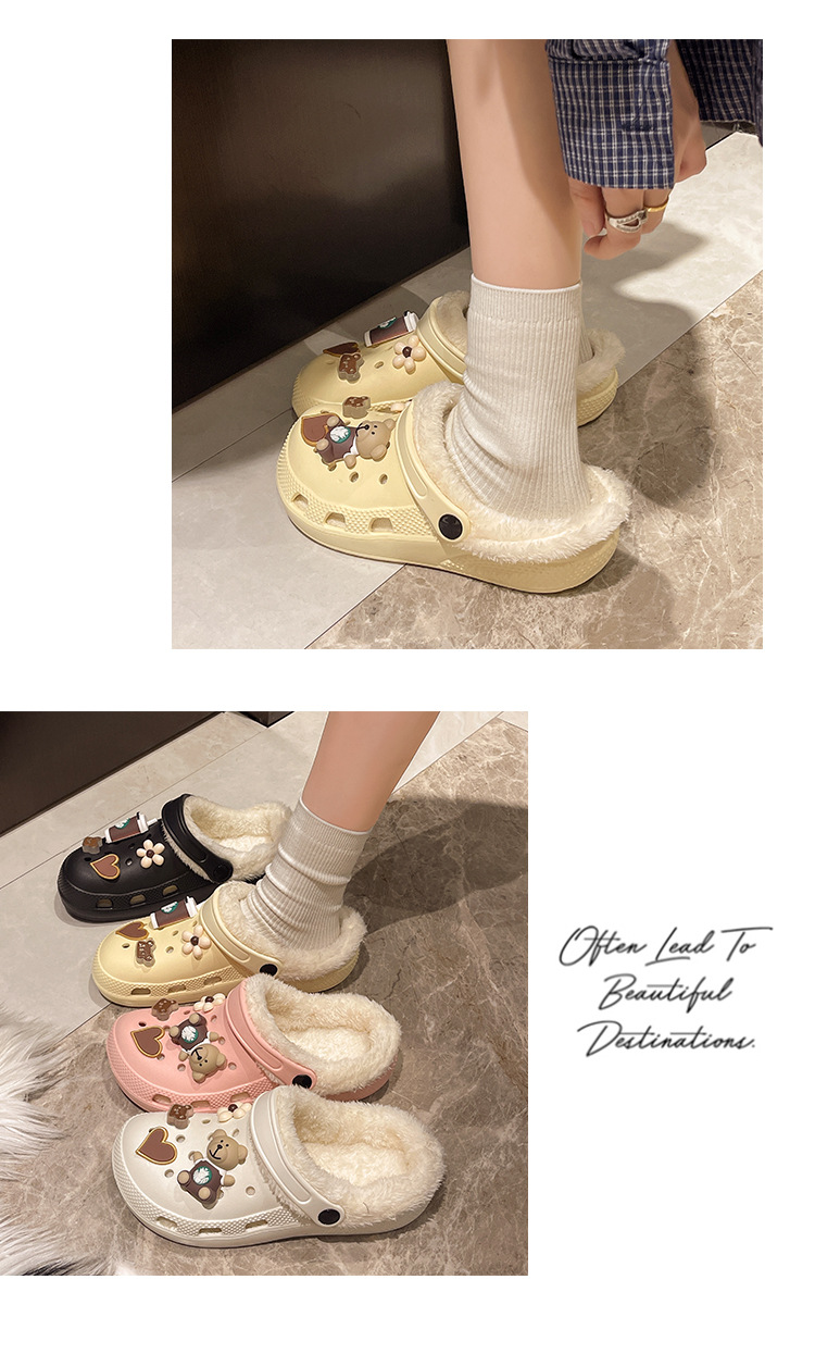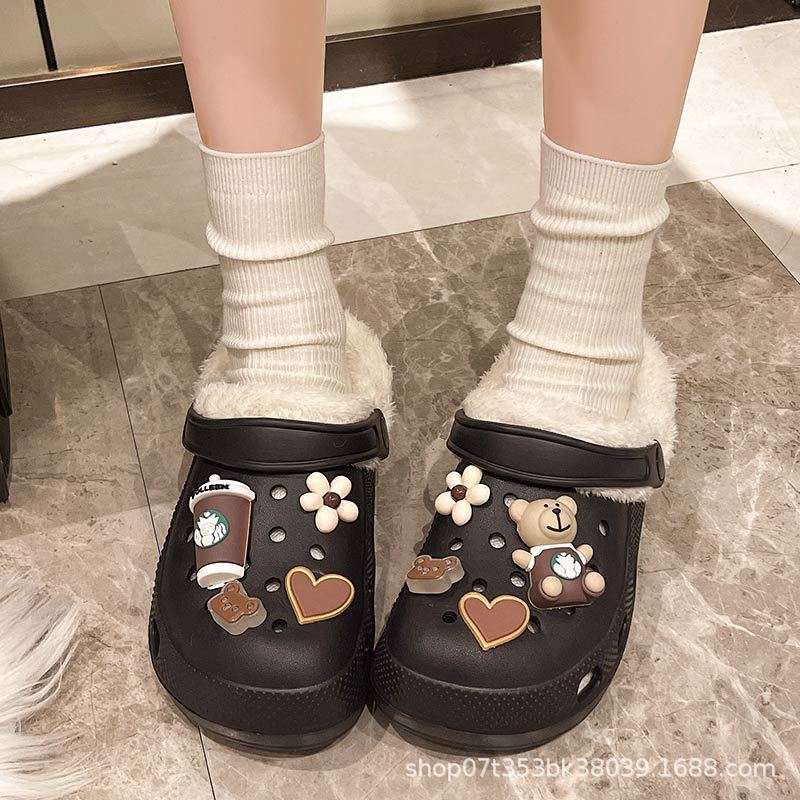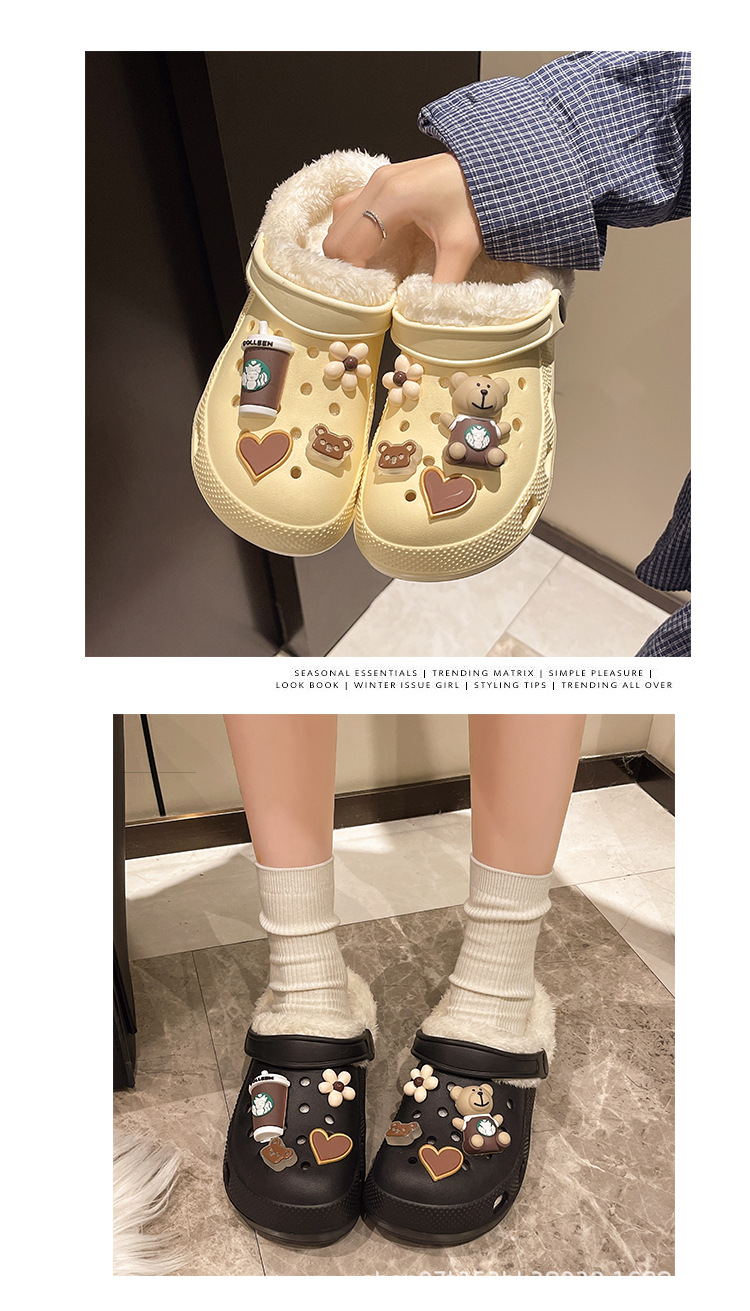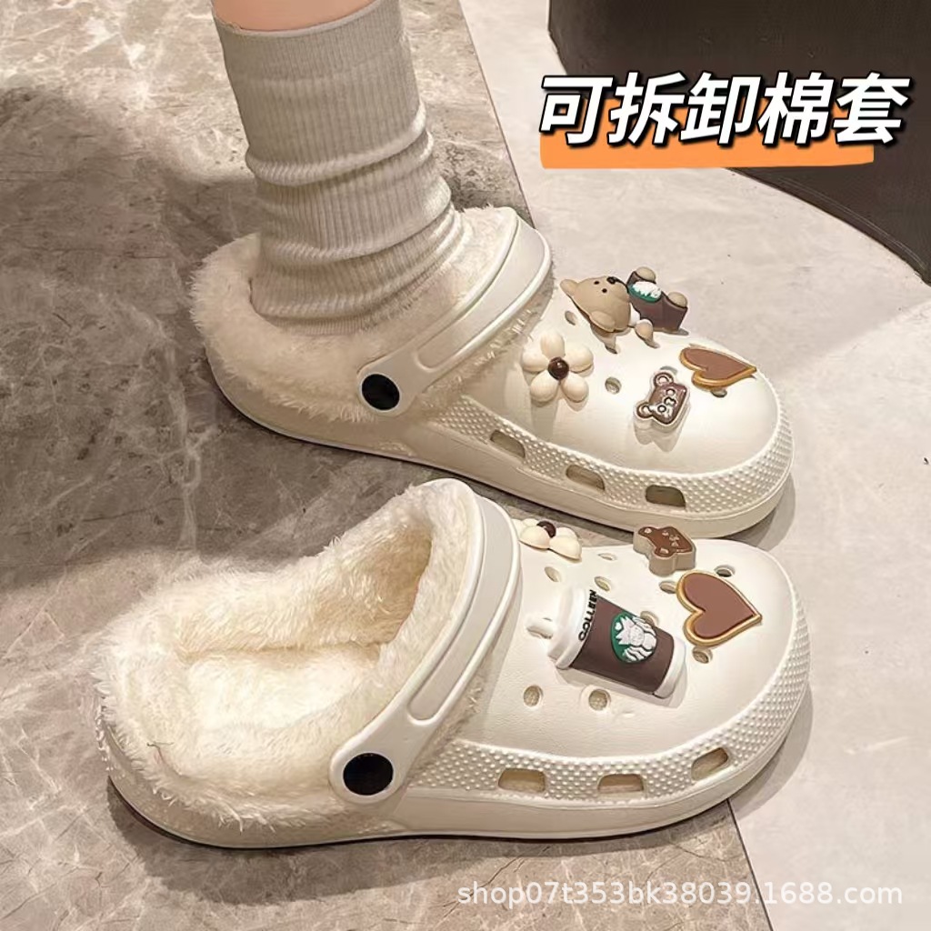 Плюшевая дырочная обувь мультяшный медведь женская мода на внешнем осенне-зимний новый eva плоское дно съемный ленивый Баотоу