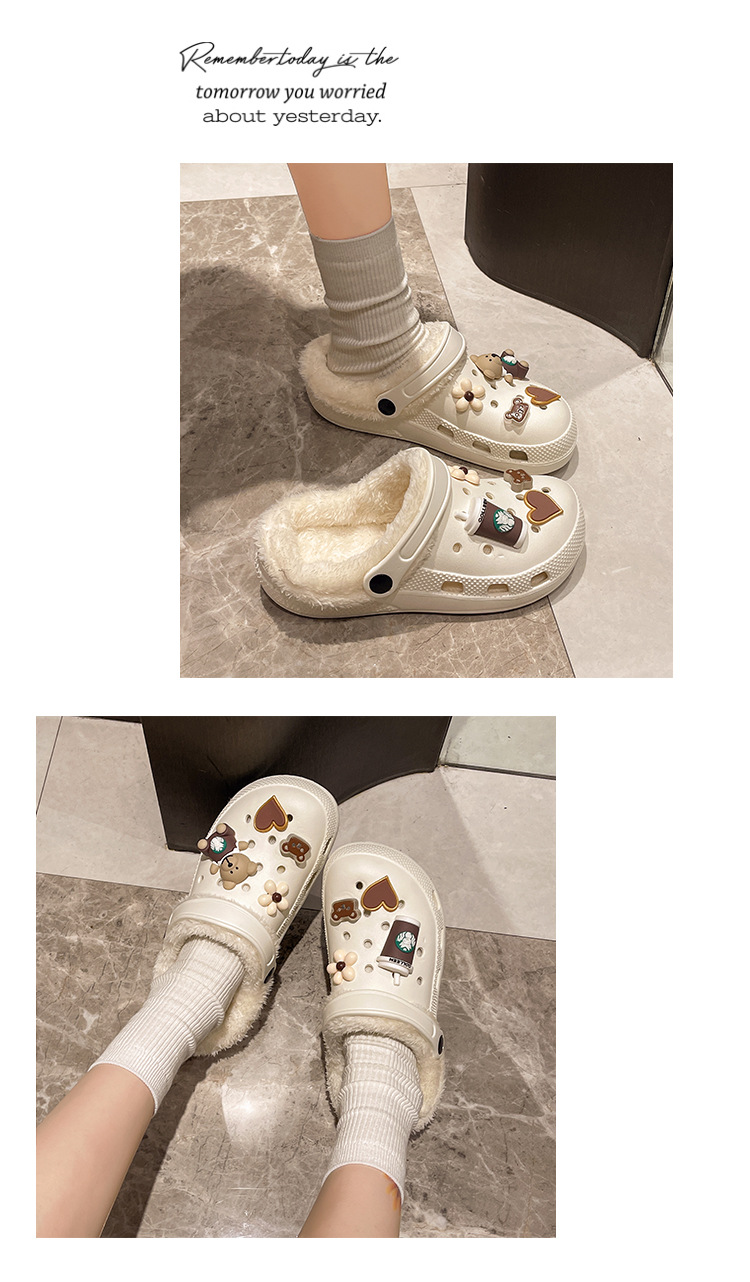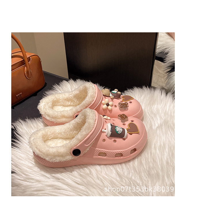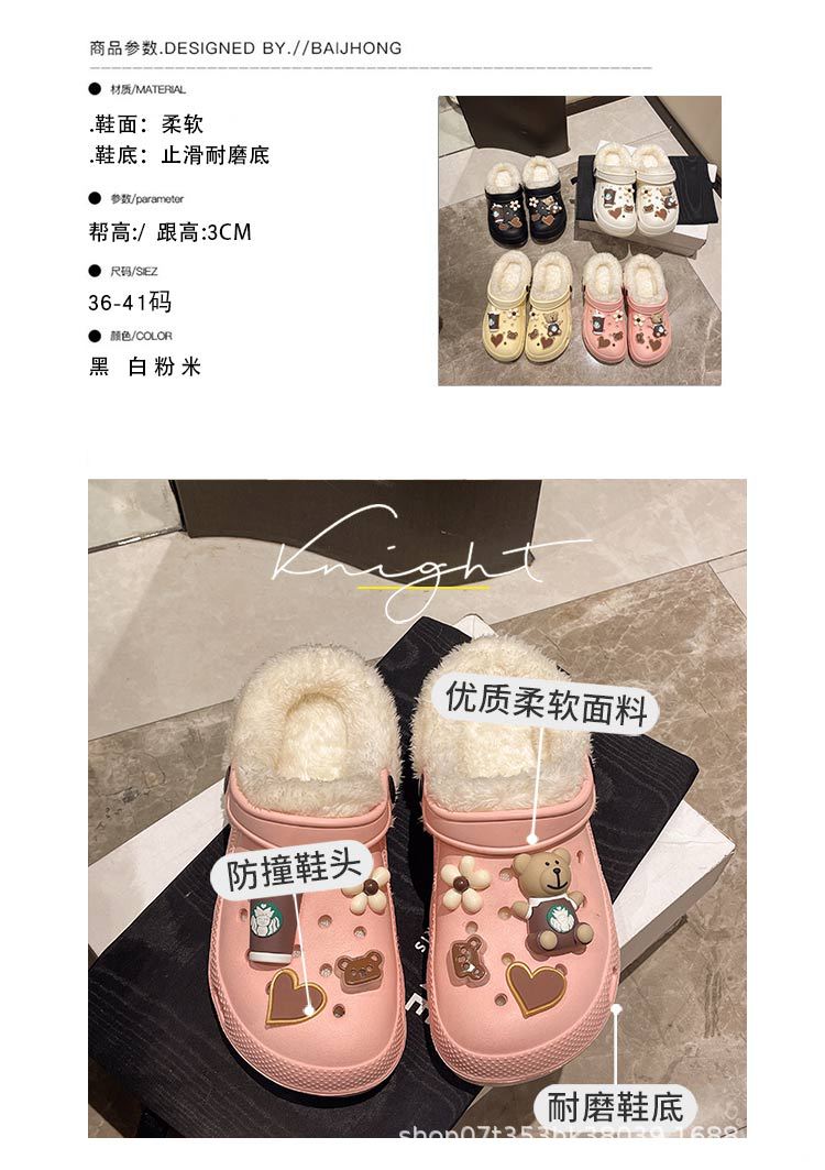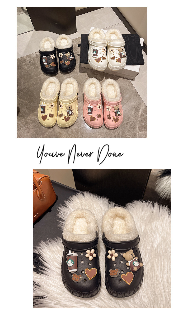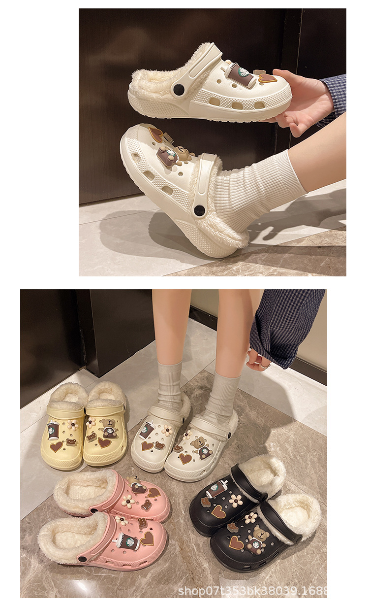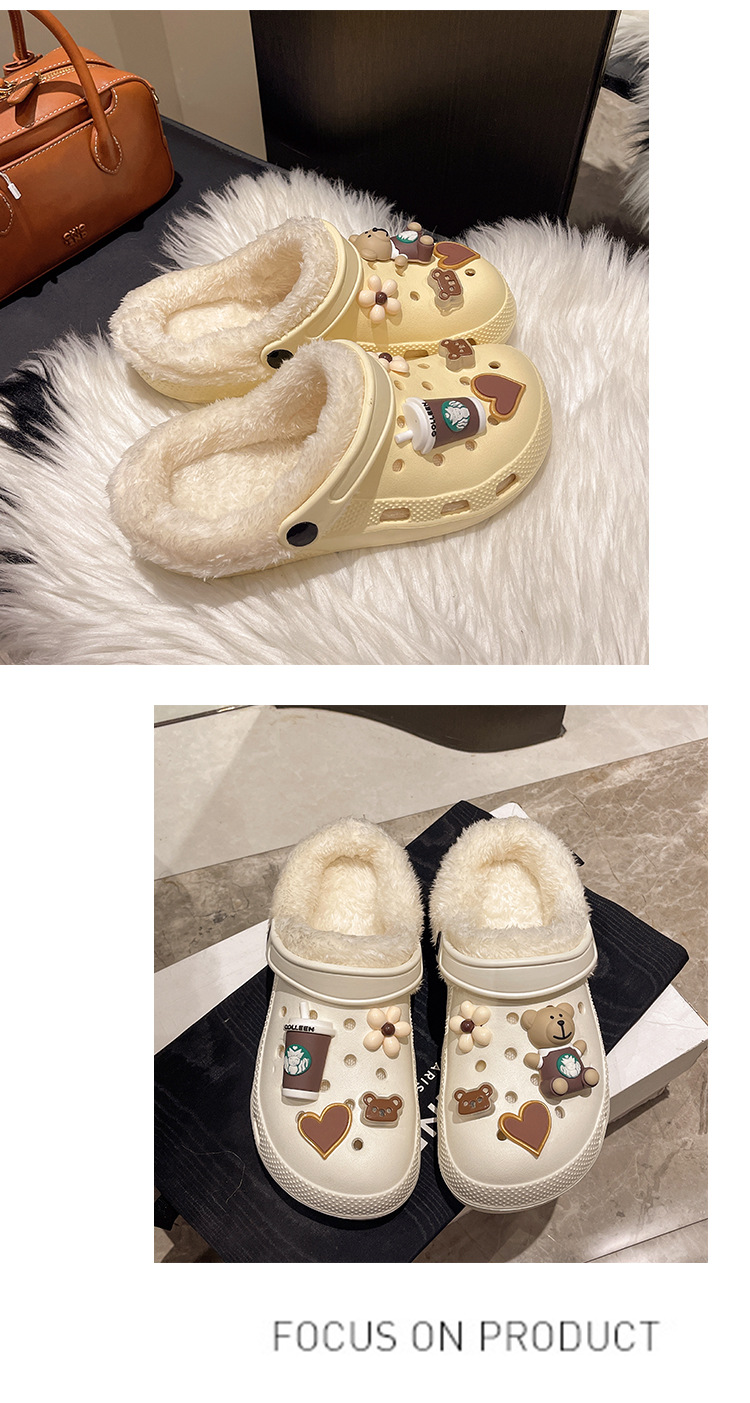 Плюшевая дырочная обувь мультяшный медведь женская мода на внешнем осенне-зимний новый eva плоское дно съемный ленивый Баотоу