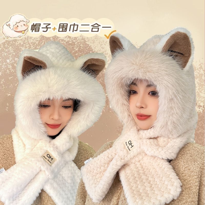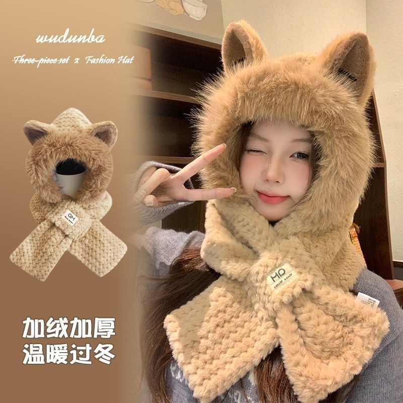 Маленькая лиса уши плюшевая шапочка для детей зимний шарф один теплый, плюшевый и толстый нагрудник