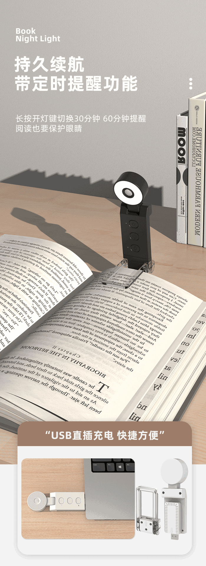 Трансграничный USB-зажим для чтения книжных светильников Складной зажим светодиодный светильник для чтения портативный зарядный книжный светильник