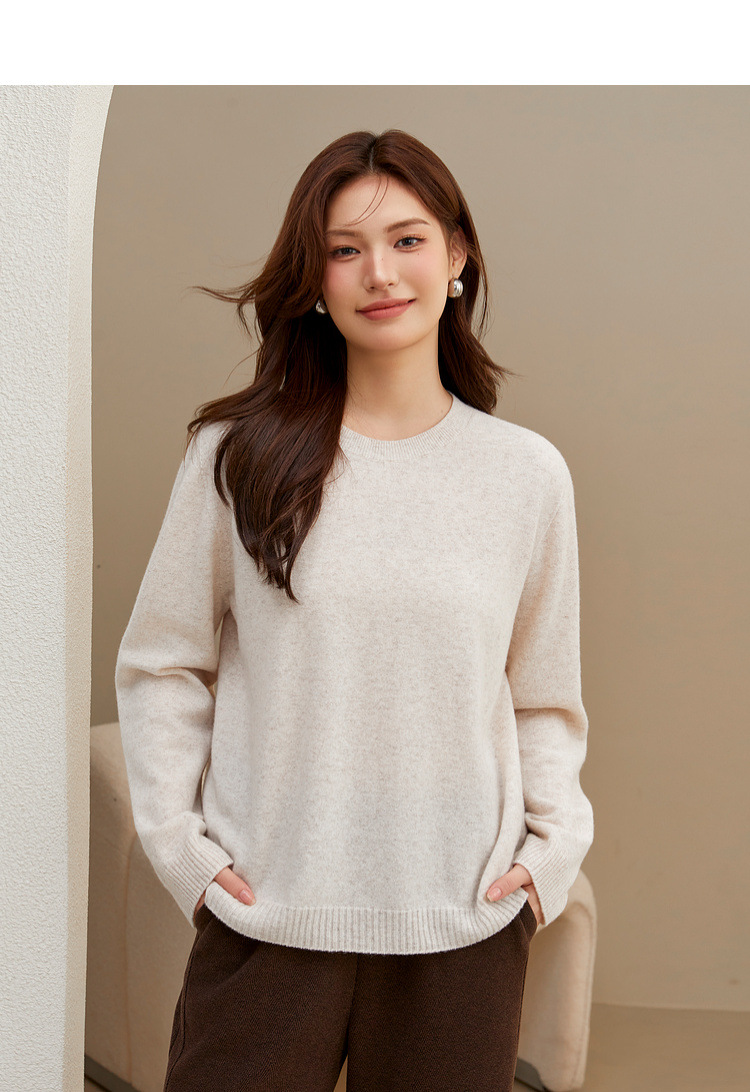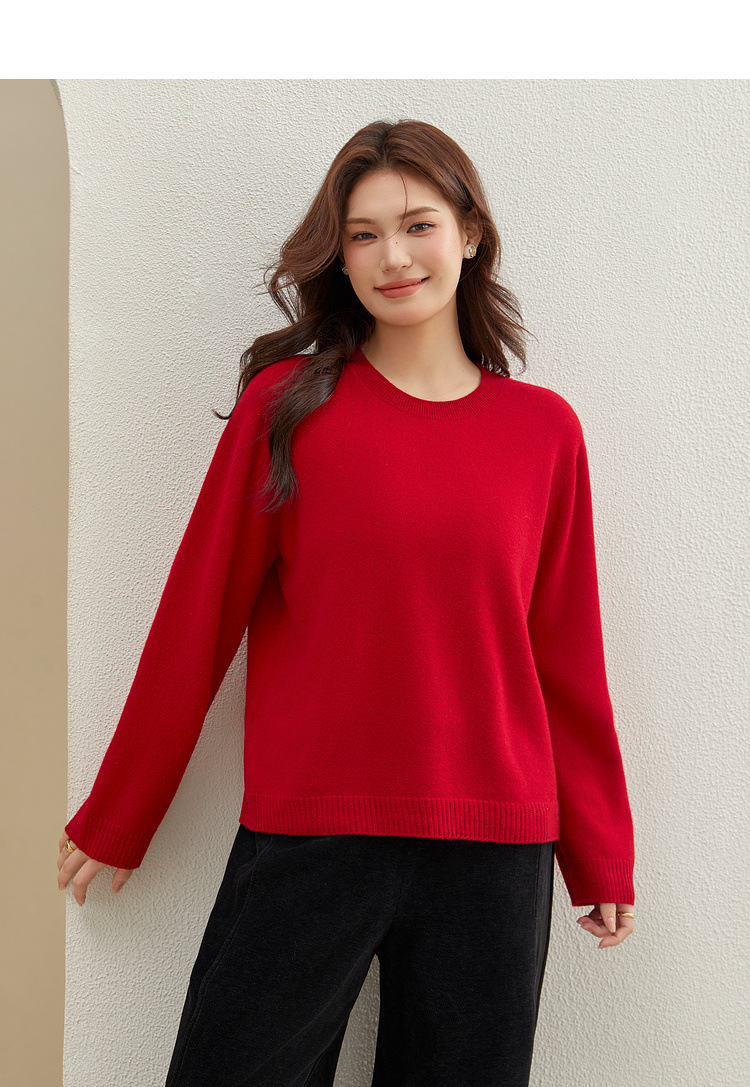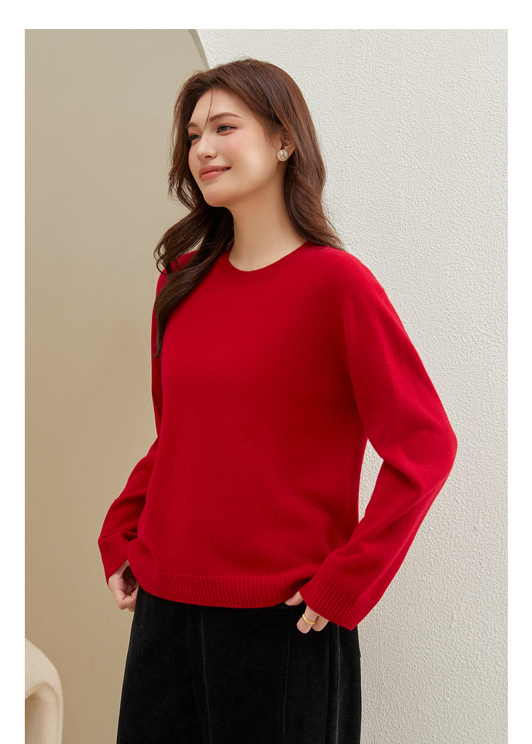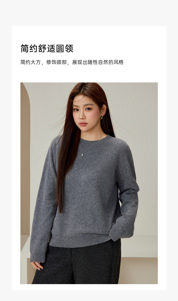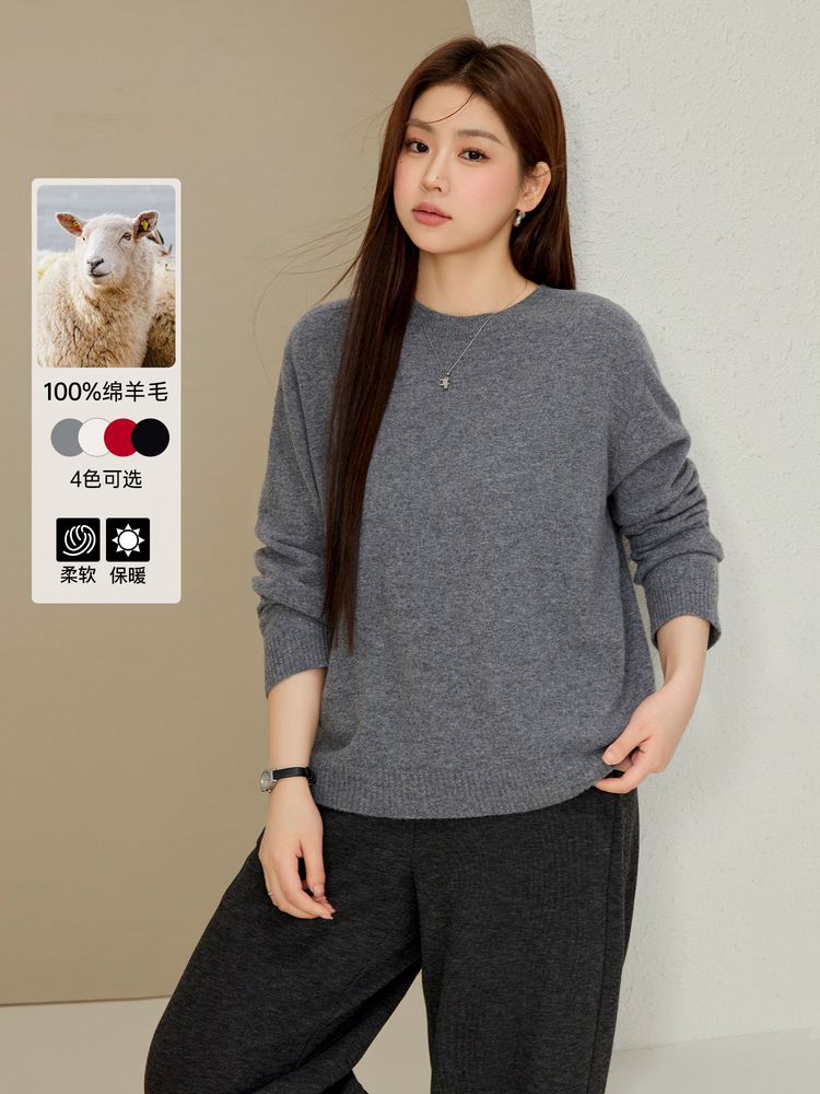 Цветное шоу большой размер женщины простой простой простой цвет удобный овечья шерсть с круглым вырезом, дикий свитер жирный mm2024 зимняя одежда новый