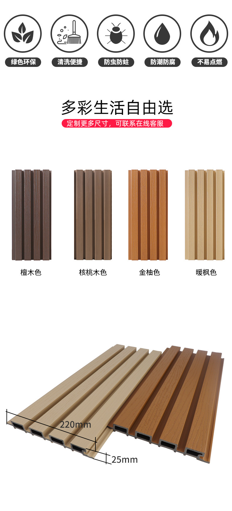Пластик WPC, дерево, влагостойкий, антикоррозийный, водонепроницаемый, солнцезащитный и противоизносный.