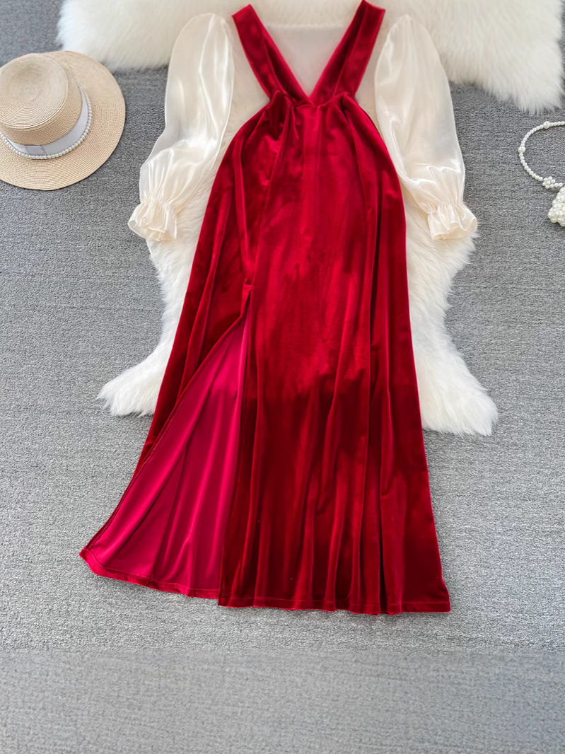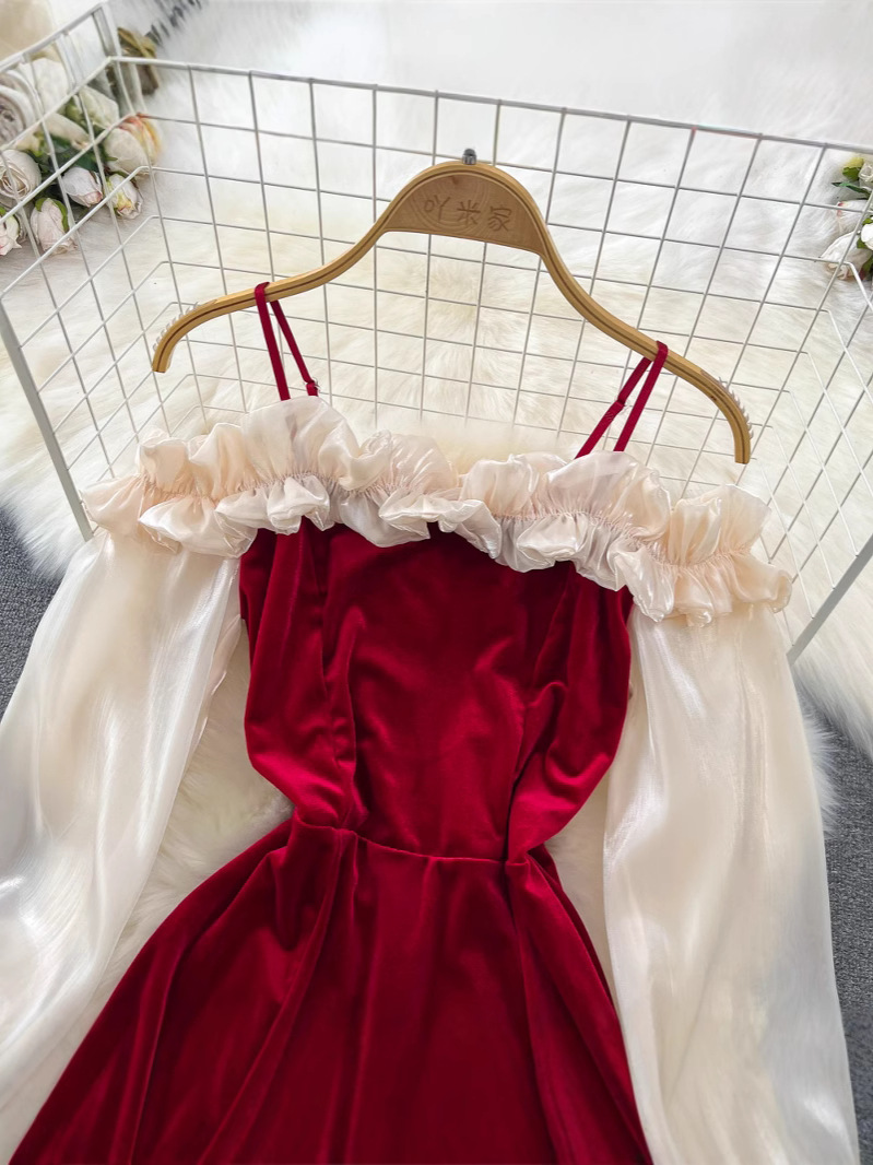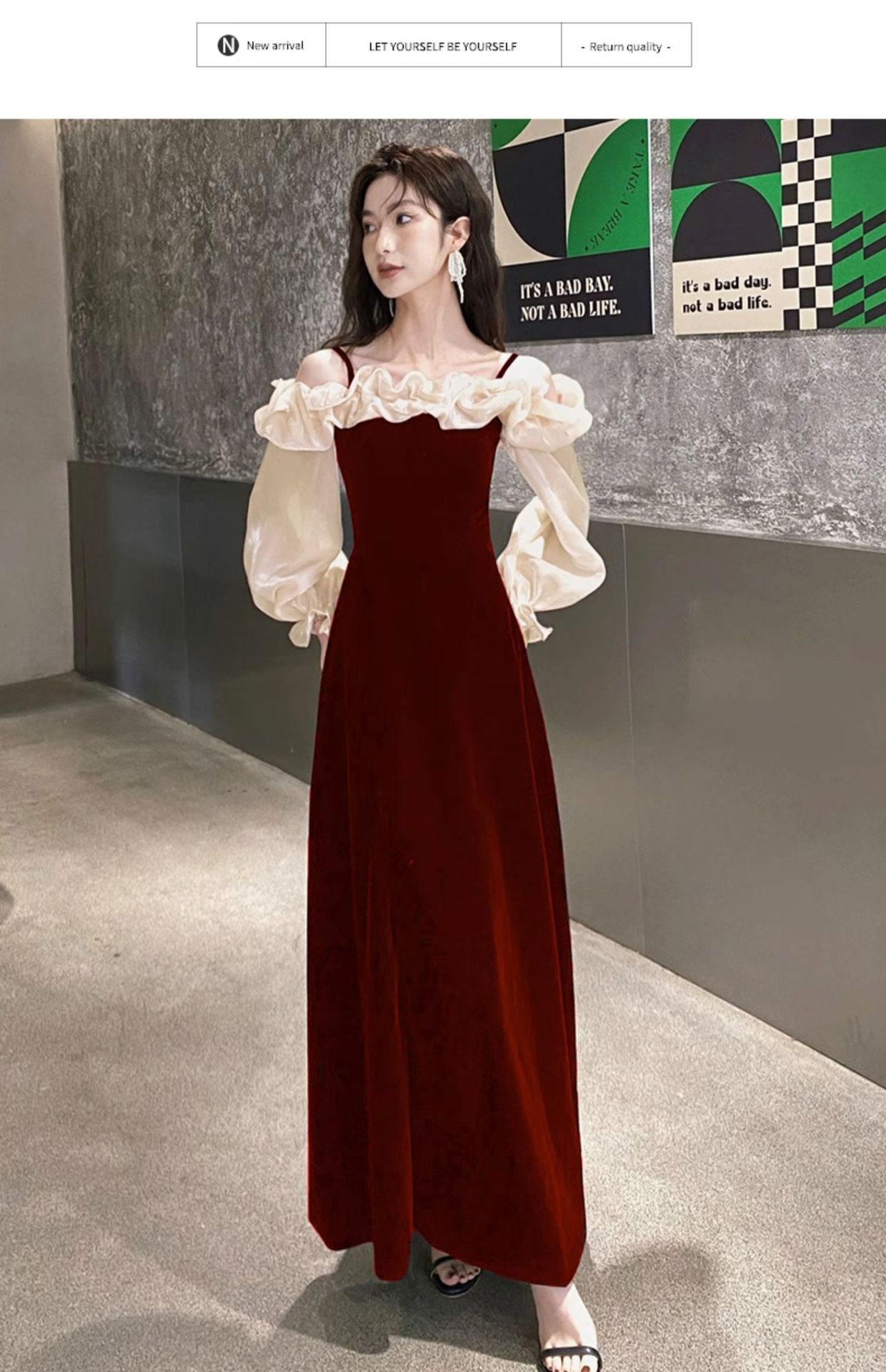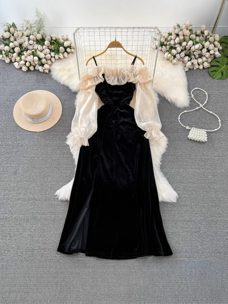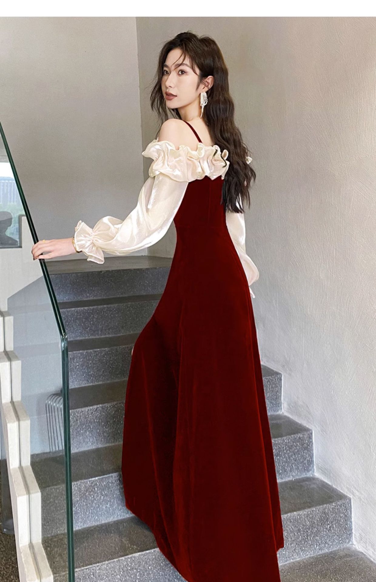 Чисто желание плечо и талия тонкие женские осенние и зимние новые темпераменты с открытыми листьями лотоса, сшитыми золотыми бархатными платьями