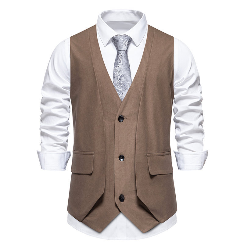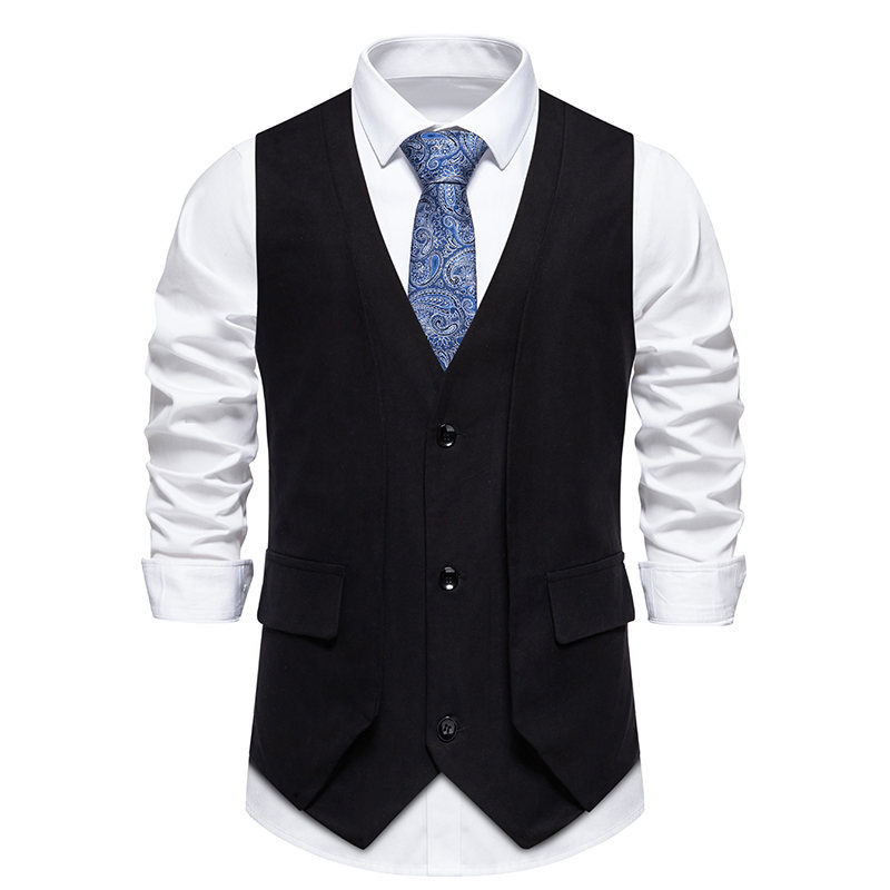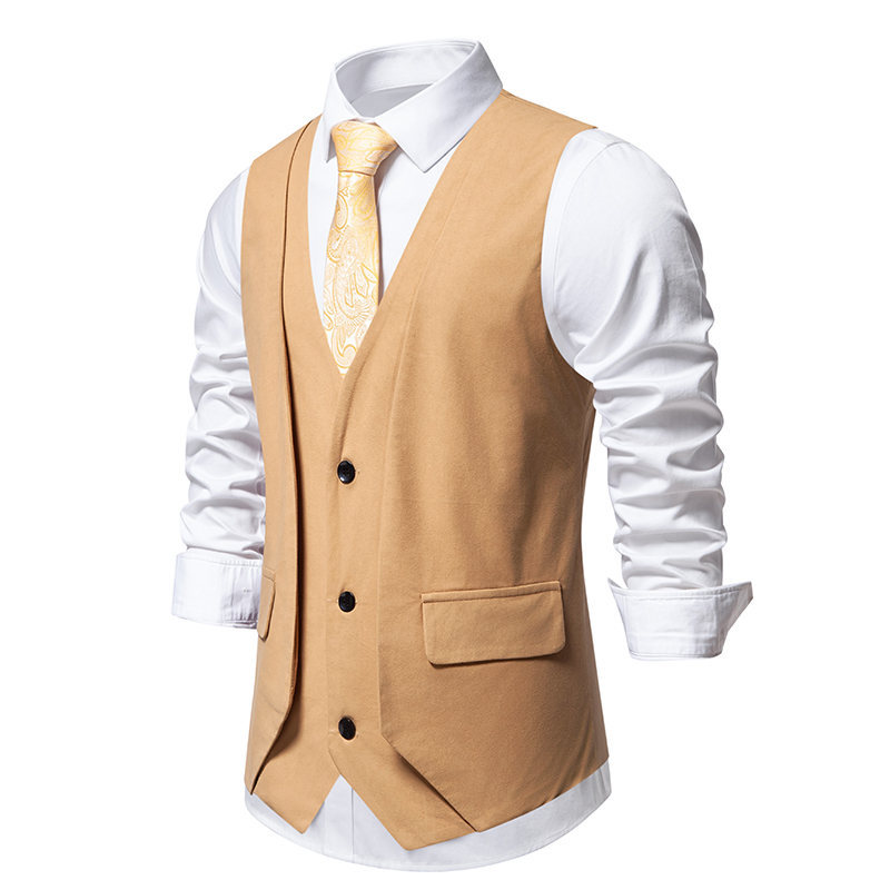 2024 весна и лето новый трансграничный оптовый европейский код сплошной цвет ретро V-образный вырез поддельные два мужских костюма жилет