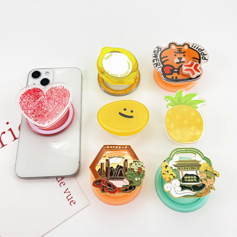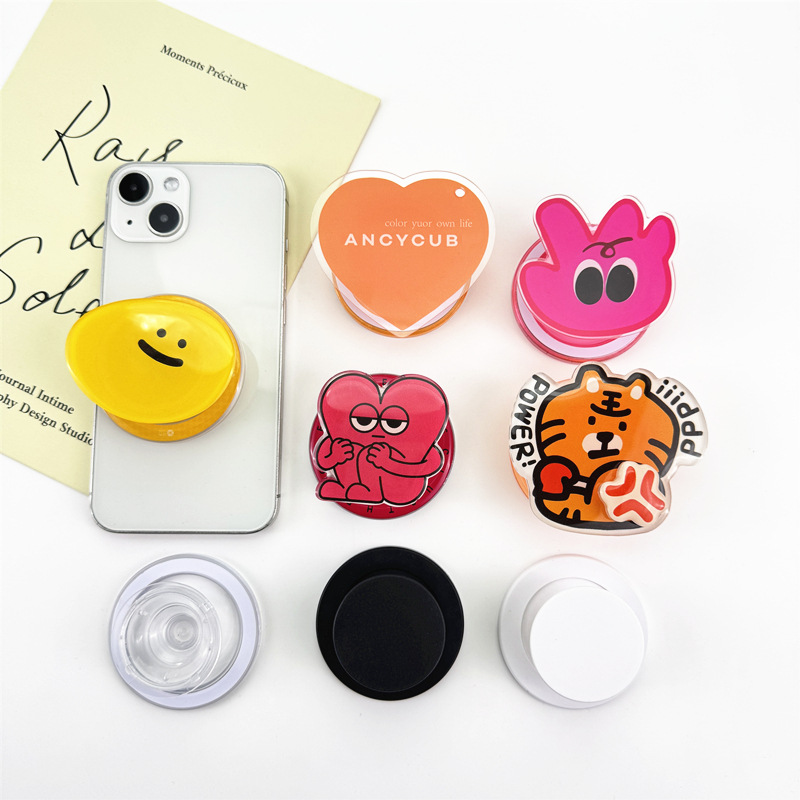 Акриловый магнитный держатель для телефона с эпоксидным принтом нестандартной формы, выдвижной эмалевый держатель для телефона с воздушной подушкой.