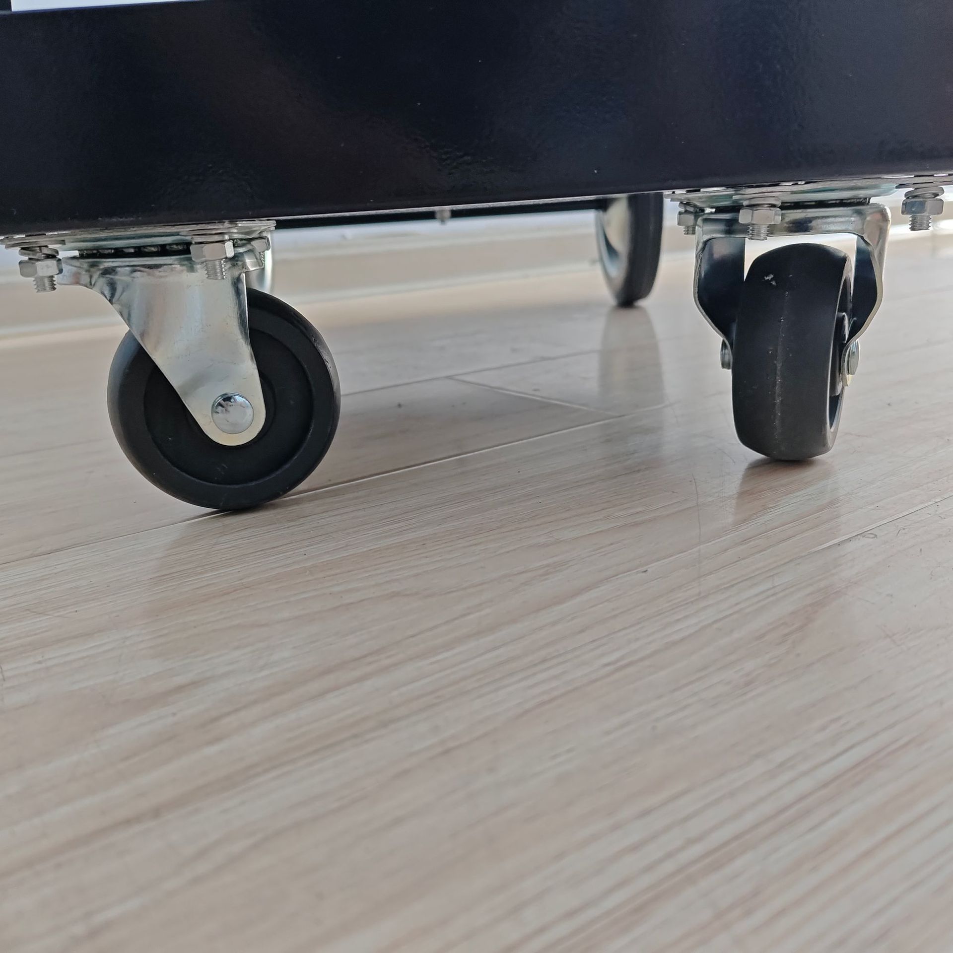 前轮是可转向的3寸PP轮,后轮位6寸实心轮。