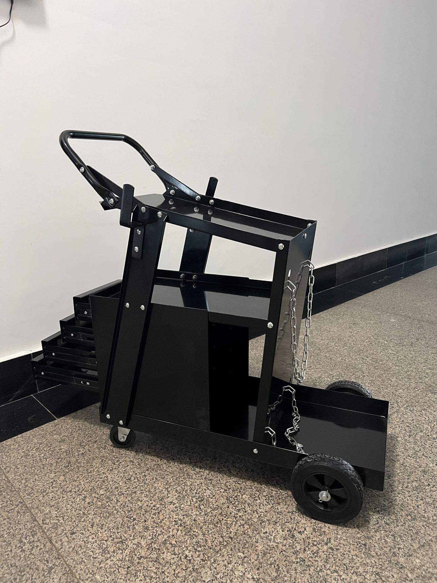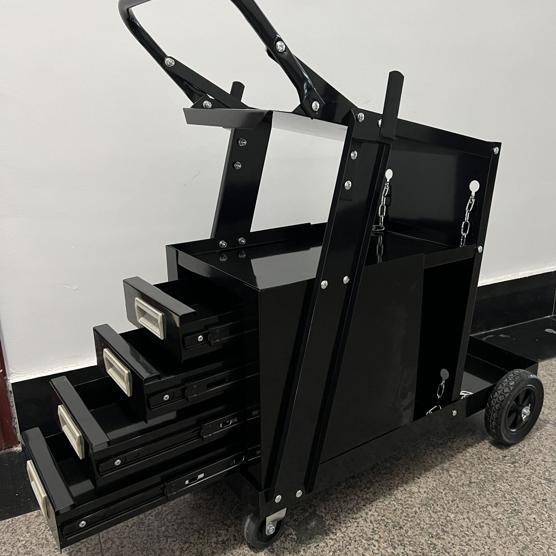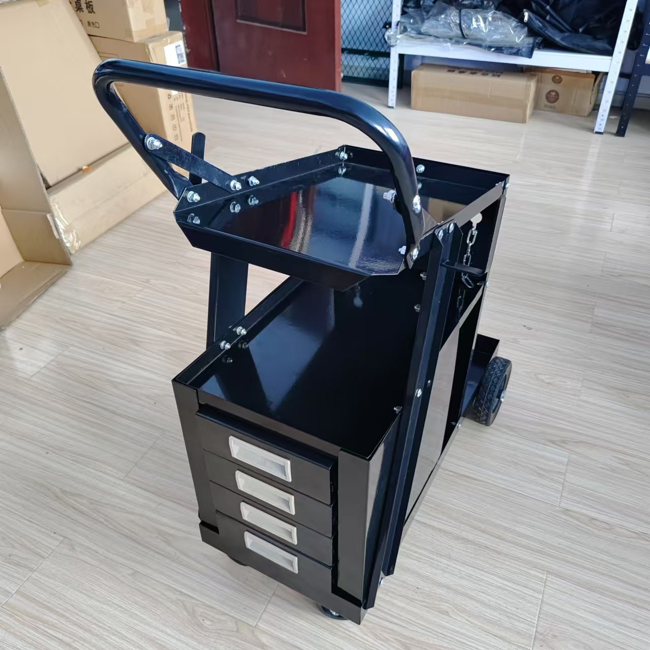 车间可移动电焊车,电焊机气瓶推车,拥有四层工具存放抽屉。