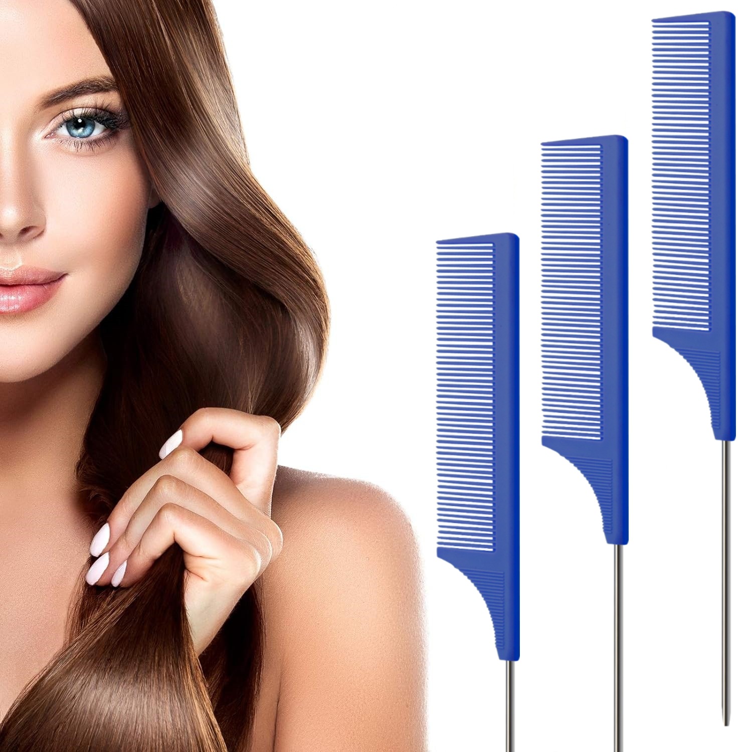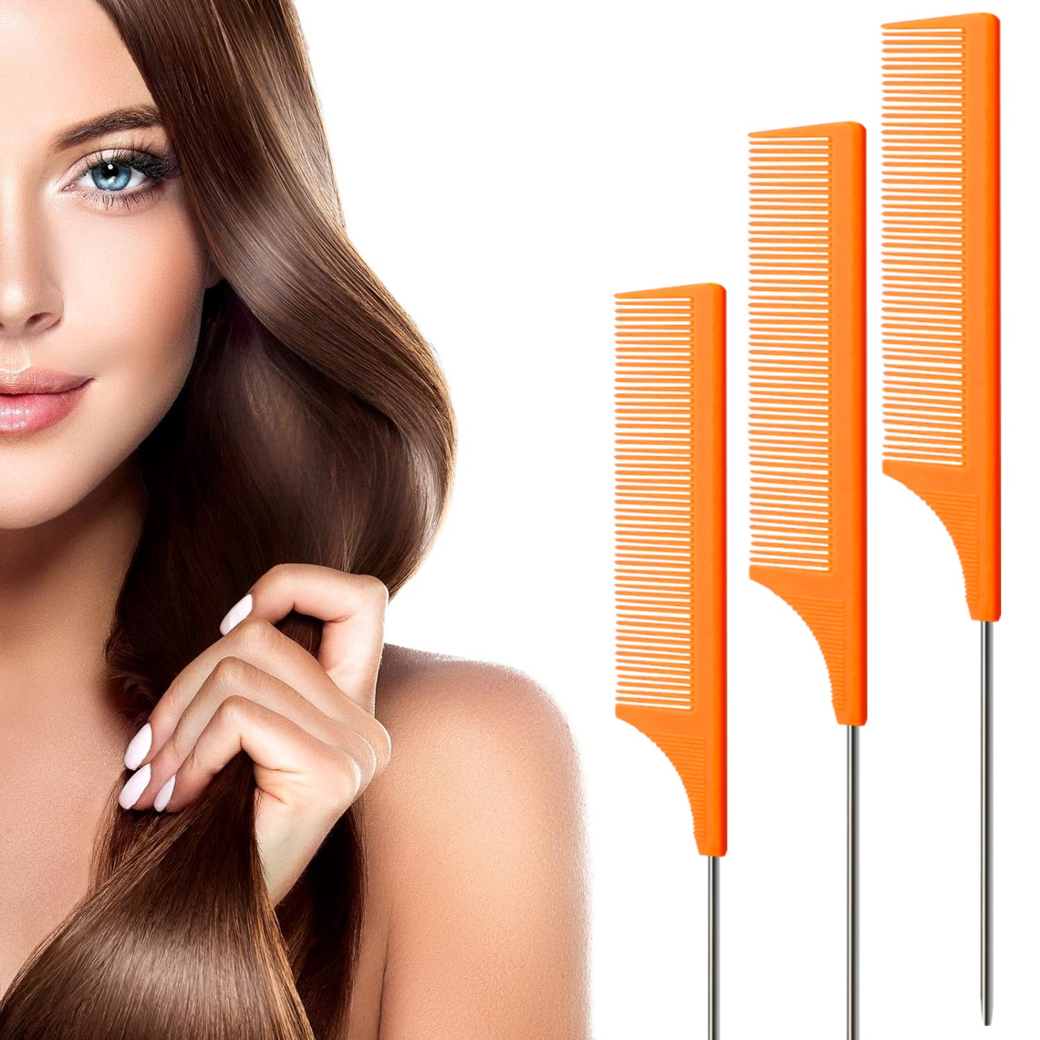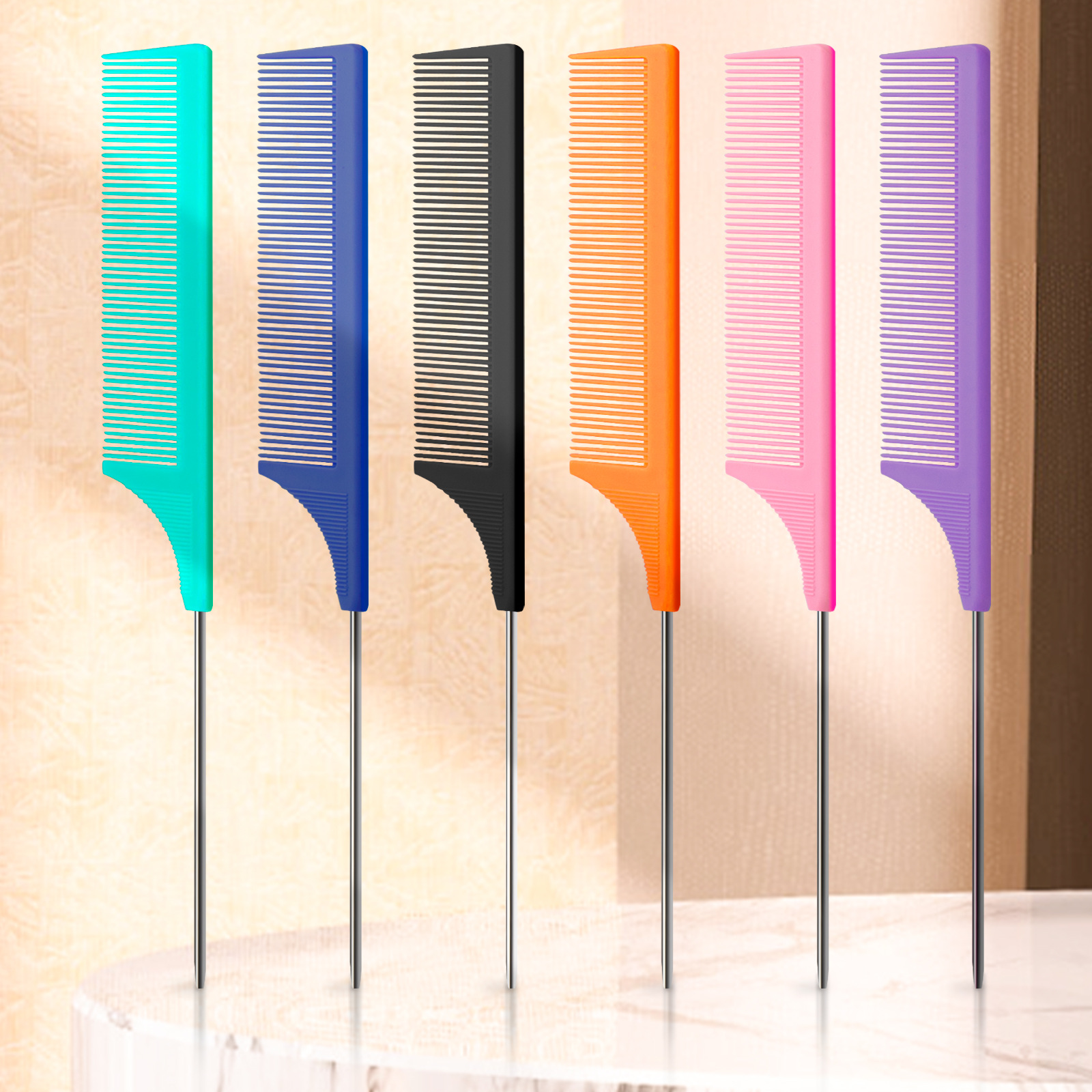 这款亚马逊爆款钢针尖尾美发梳采用ABS原料生产,精工磨具铸造,锯齿圆润不伤头发。大货包装为20一包。任意组合,定制包装请咨询客服。