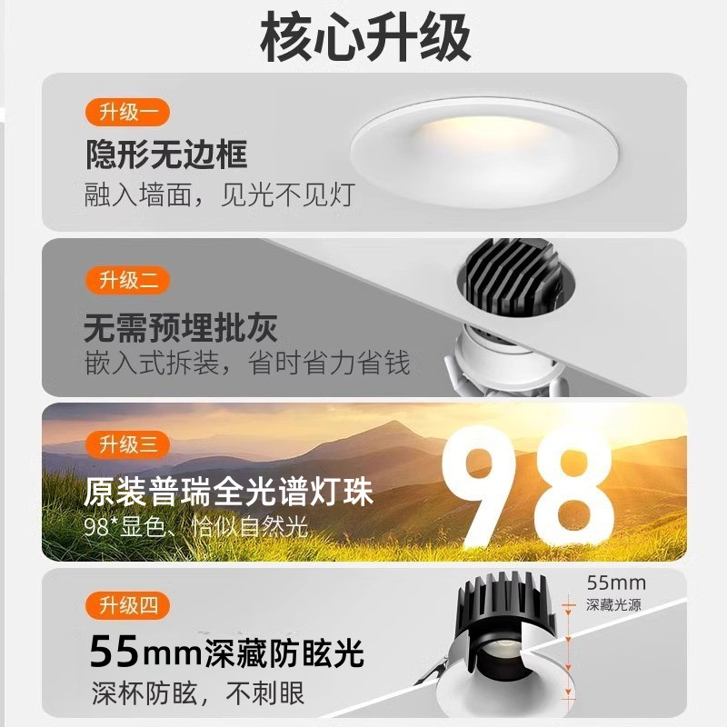 Высококачественный кожно-чувствительный светодиодный прожекатель встроенный антибликовая дуга без рамки Домашняя вилла на холмах без главного прожекла