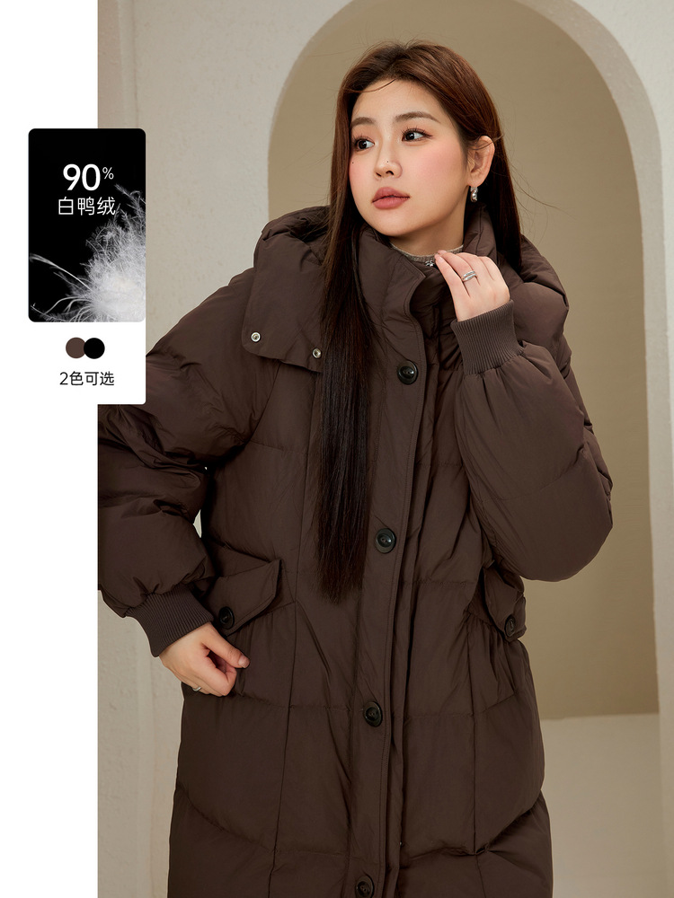 [90% утиного пуха] Длинный красивый большой размер женский толстый теплый средний длинный пуховик с капюшоном толстый мм зимний новый