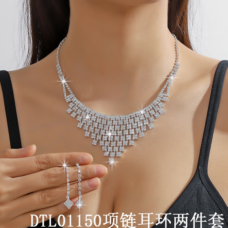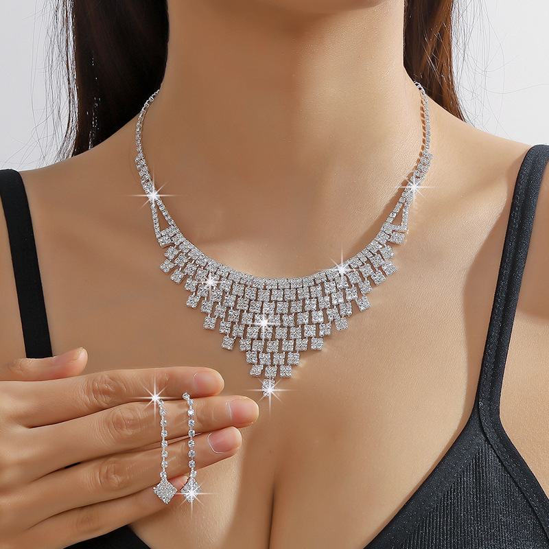 Новый стиль полный бриллиант сверкающий бриллиант платье ожерелье серьги набор преувеличения серьги ожерелье набор темперамент банкетный аксессуар