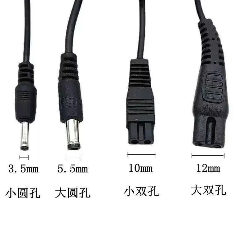 Зарядное устройство с маленькими круглыми отверстиями 3,5 мм; Зарядное устройство с большими круглыми отверстиями 5,5 мм.; Зарядное устройство с маленьким двойным отверстием 10 мм.; Зарядное устройство с большим двойным отверстием 12 мм.