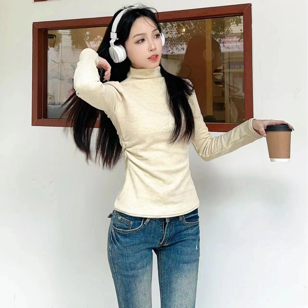 Осенний и зимний полутолщенный воротник новый бархатный узкий топ