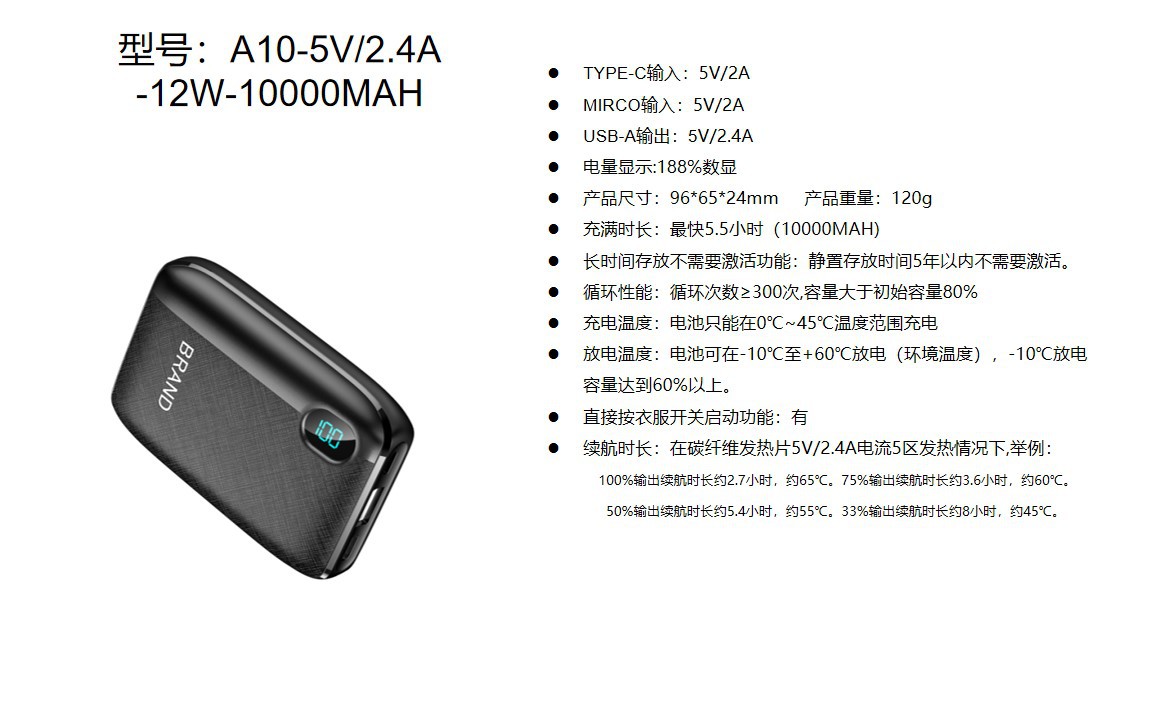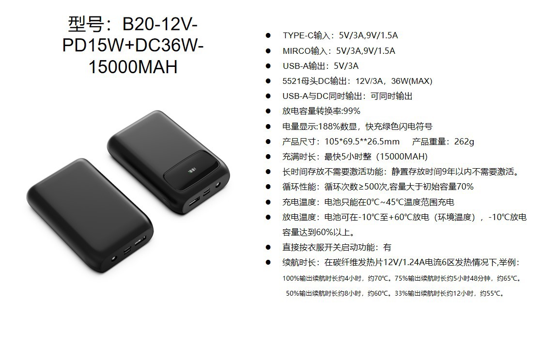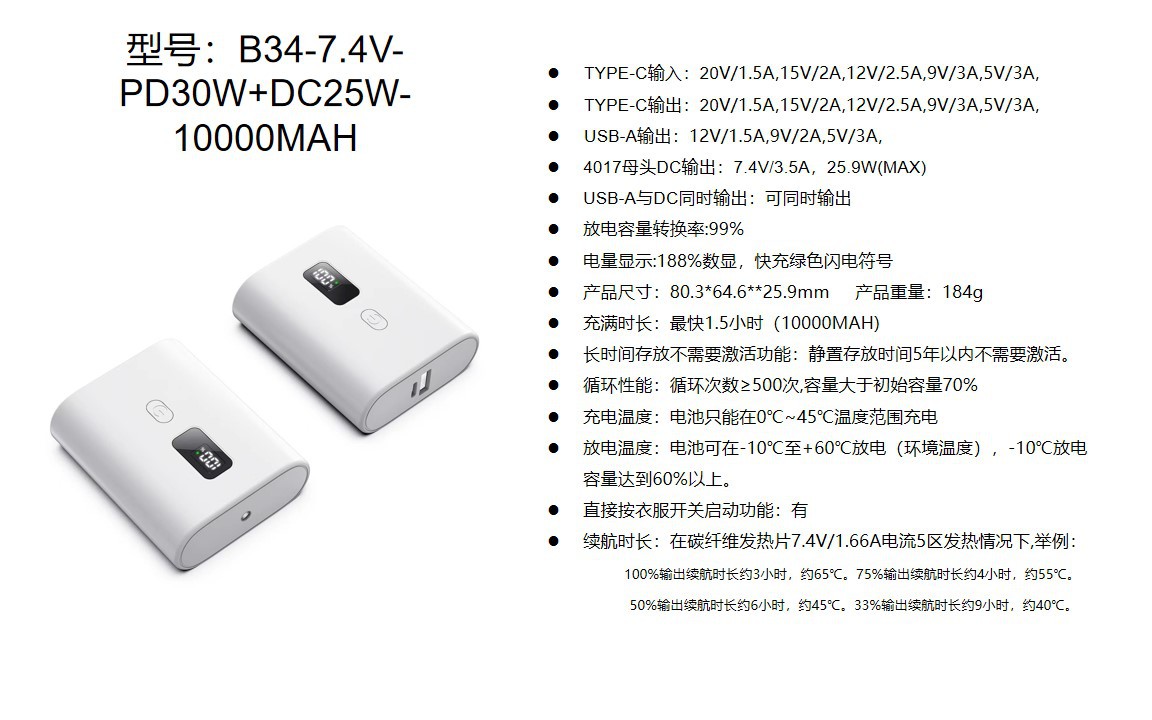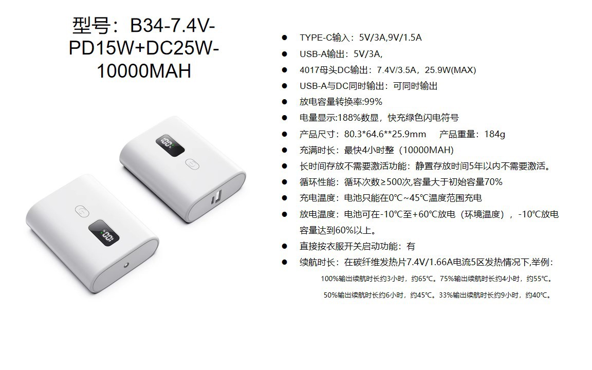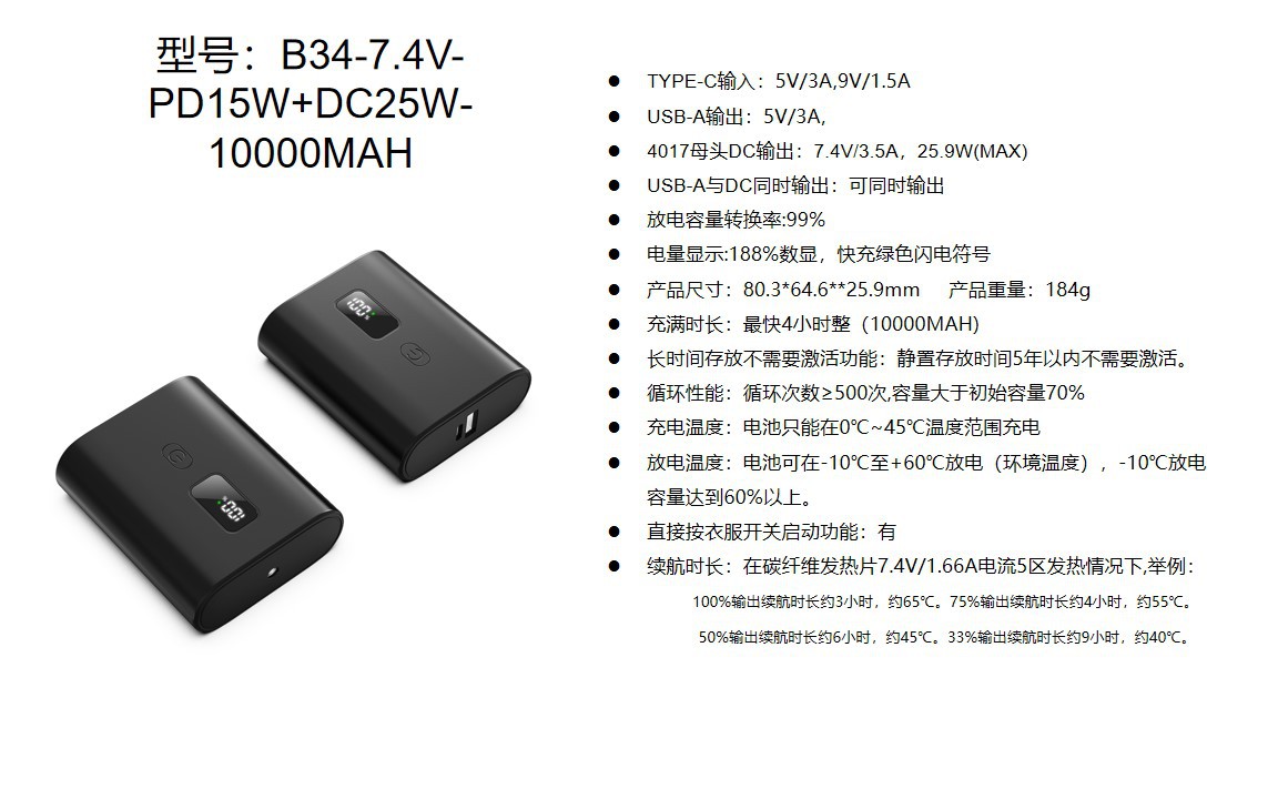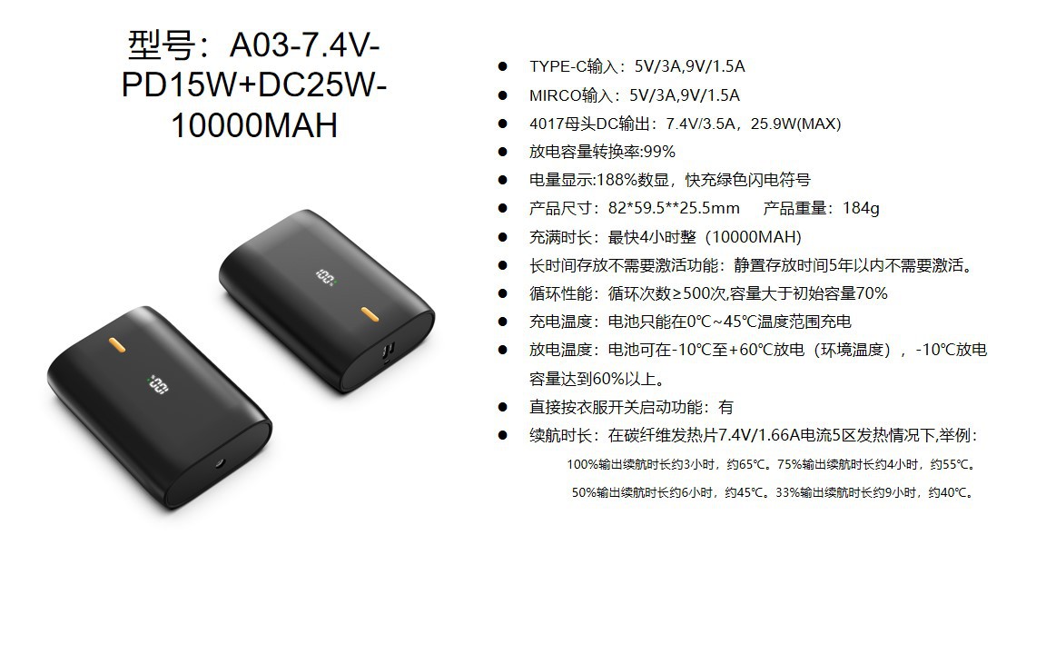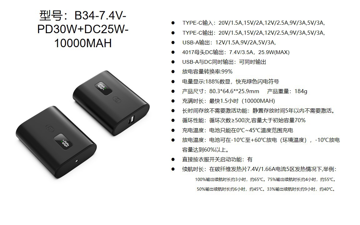 Трансграничная электрокоммерциализированная специальная нагревательная одежда Зарядное сокровище 10000mah7.4V3A Большой токовый нагревательный костюм