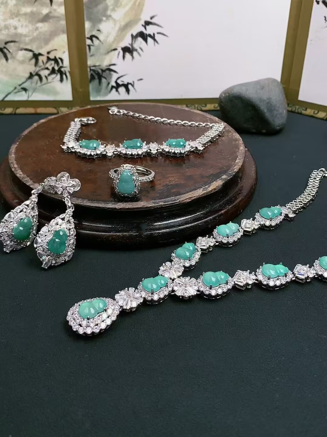 Натуральные изумрудные тыквы Кольцо Браслет серьги-гвоздики четыре комплекта медная инкрустация изысканный премиум-костюм в прямом эфире