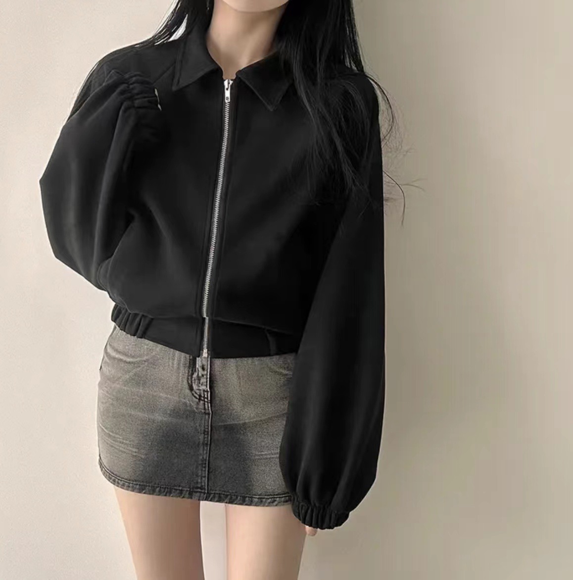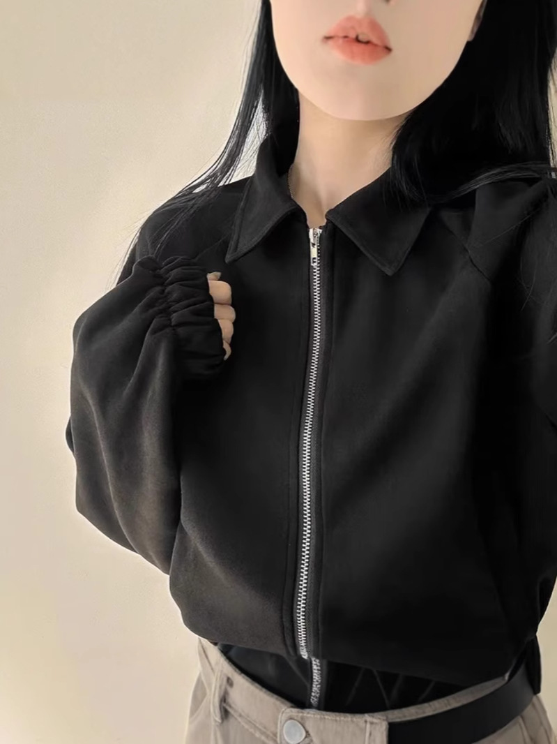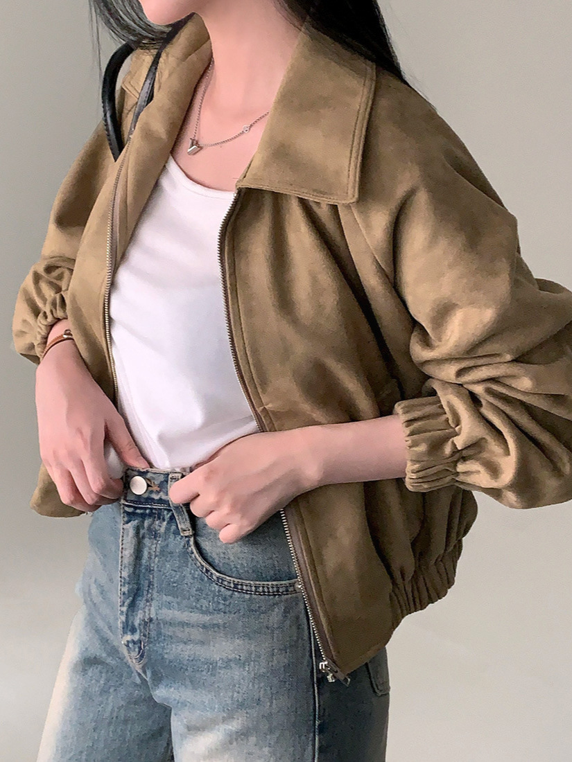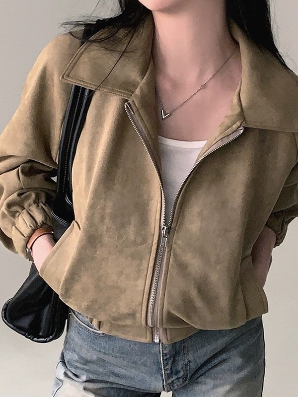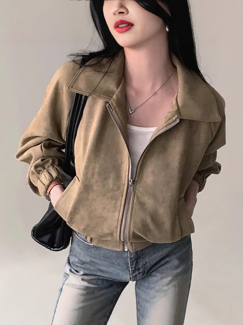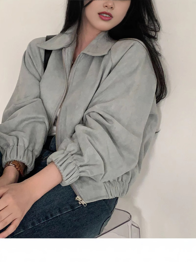 Корейская chic осень французская ретро-молния с молнией с воротником
