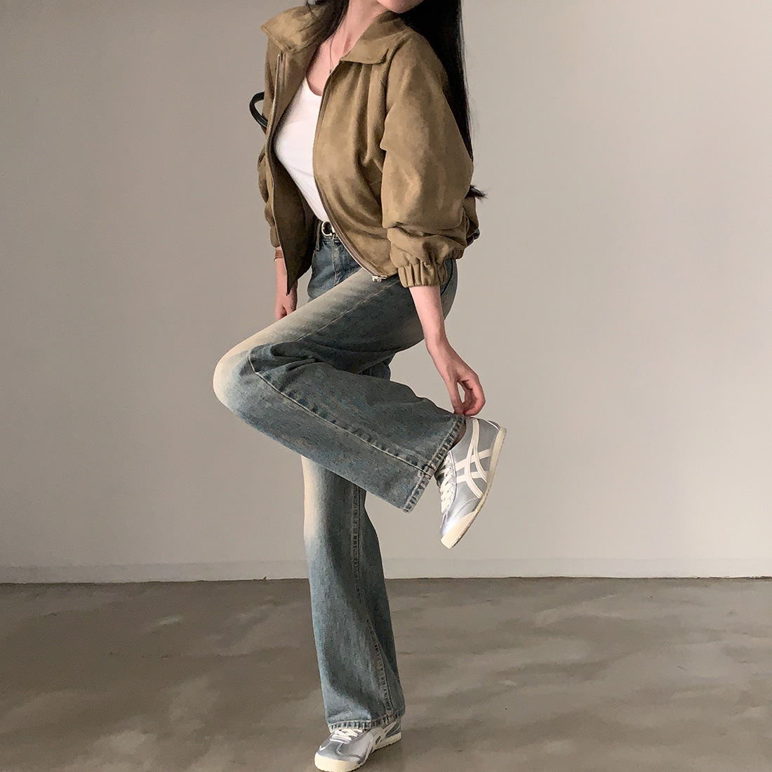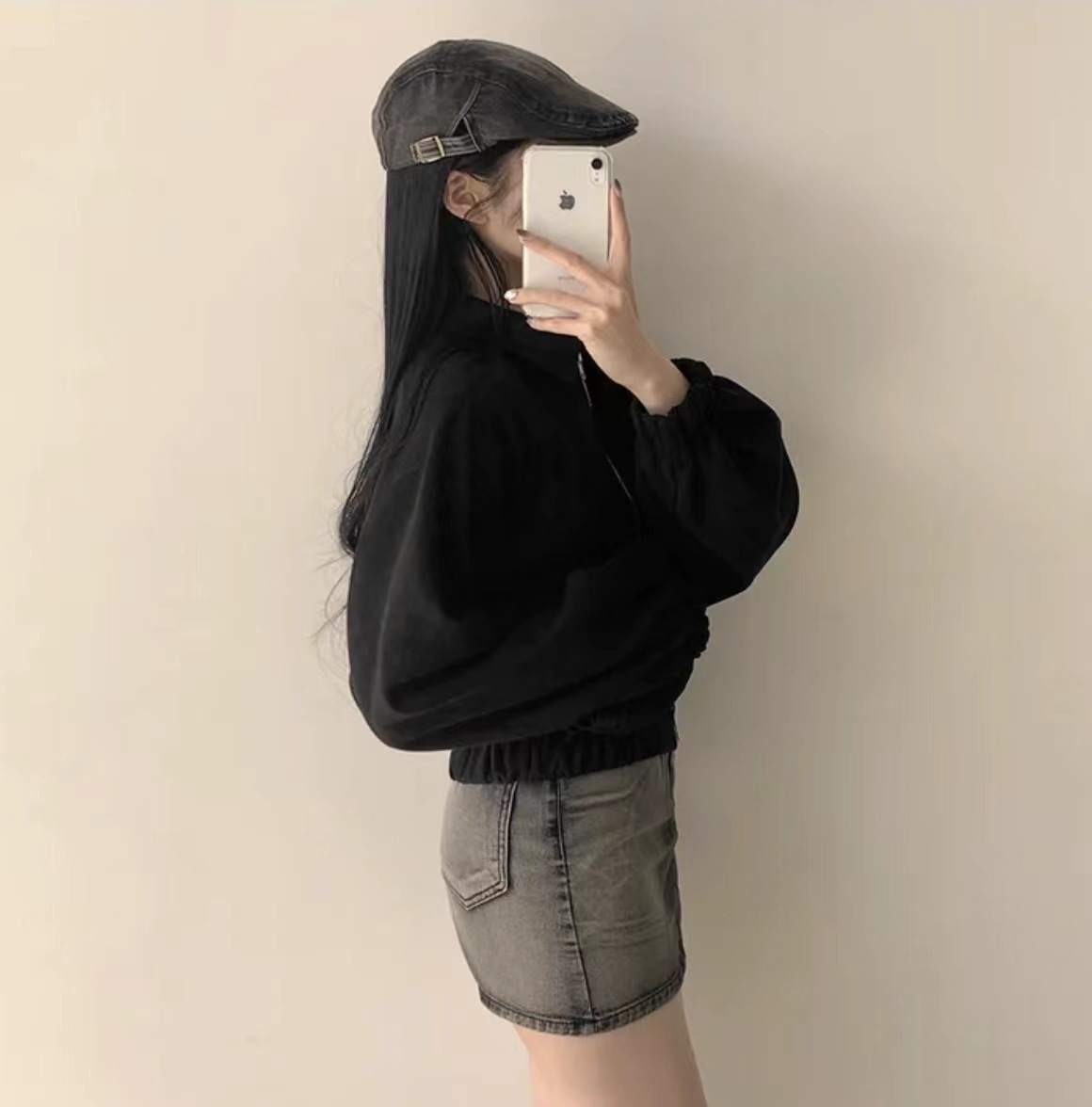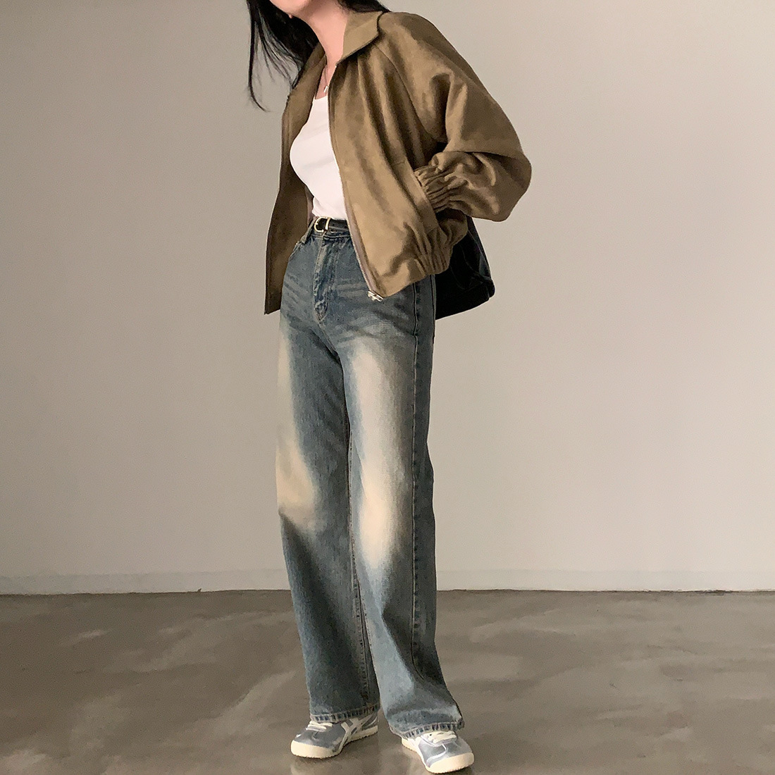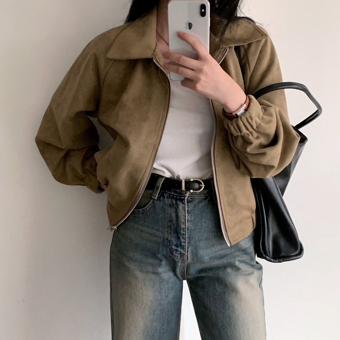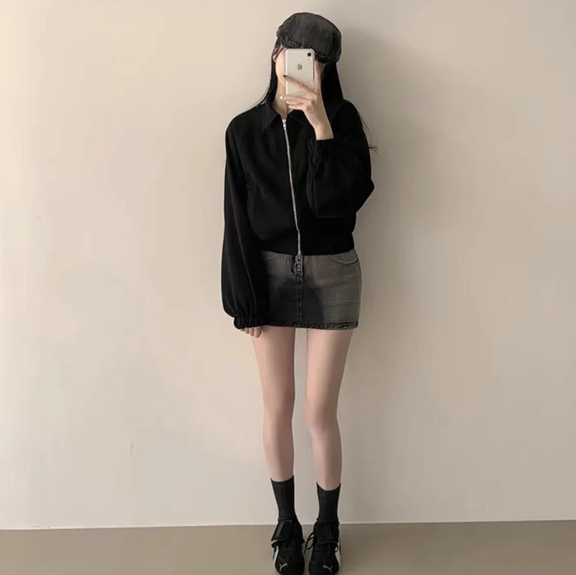 Корейская chic осень французская ретро-молния с молнией с воротником