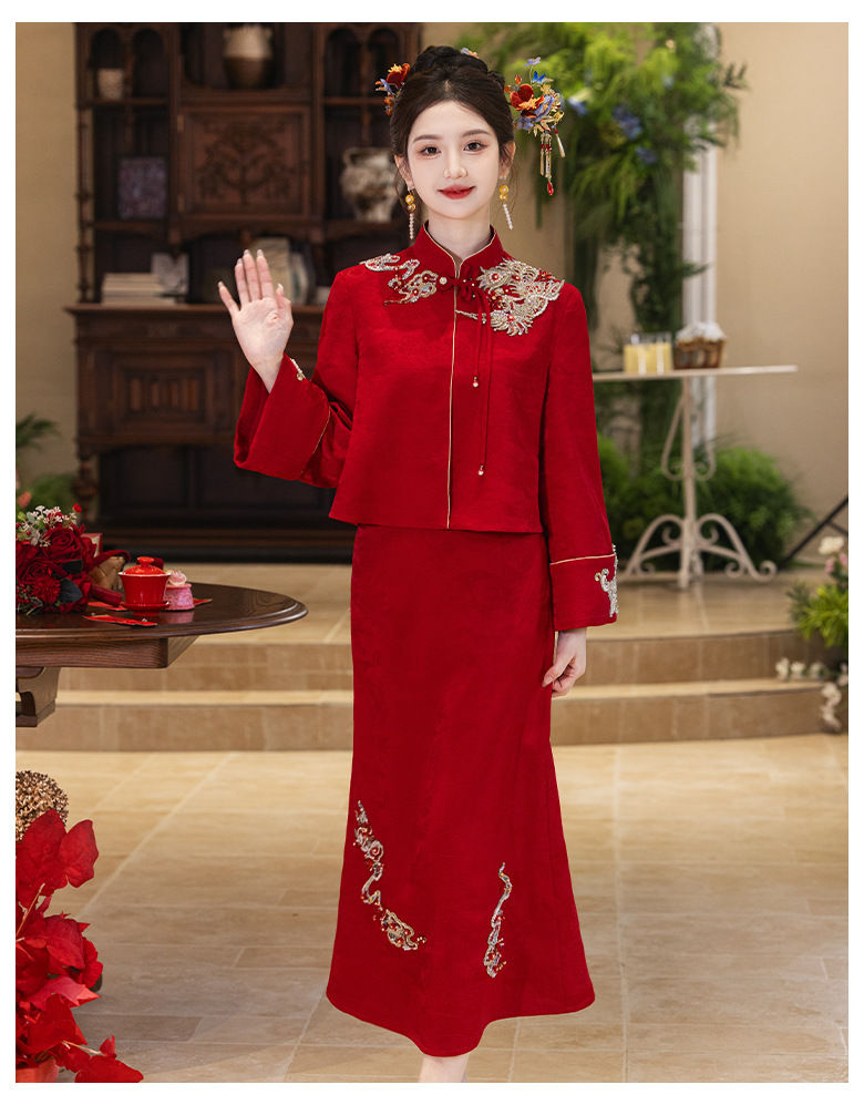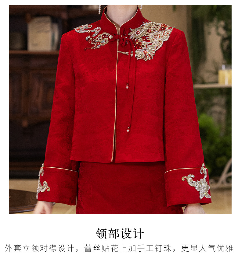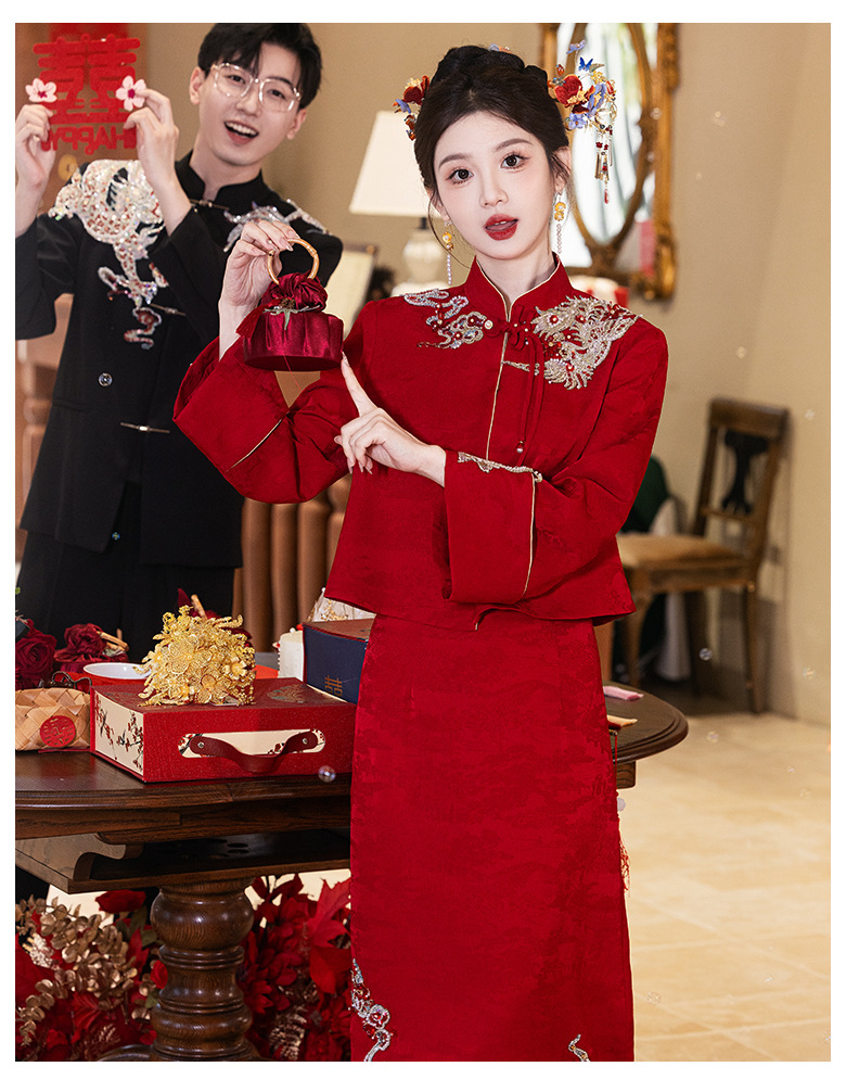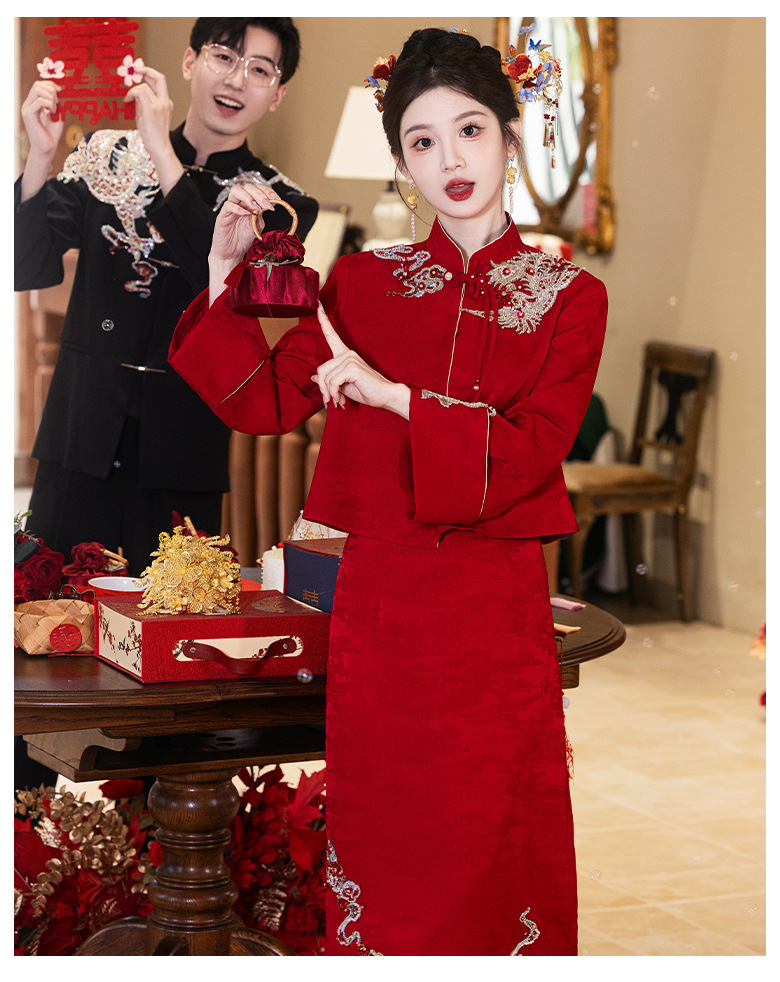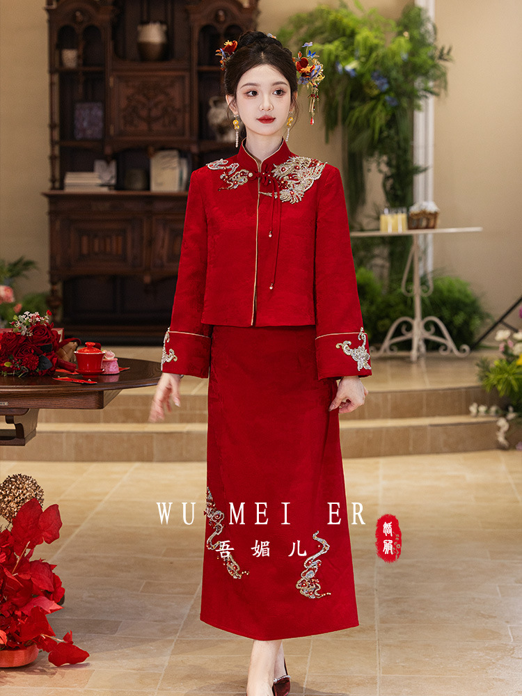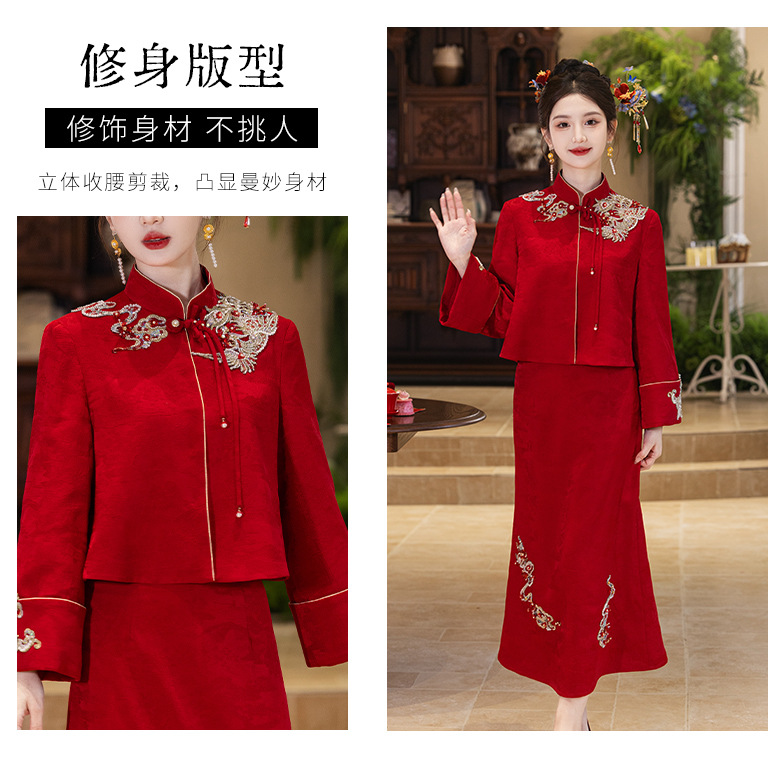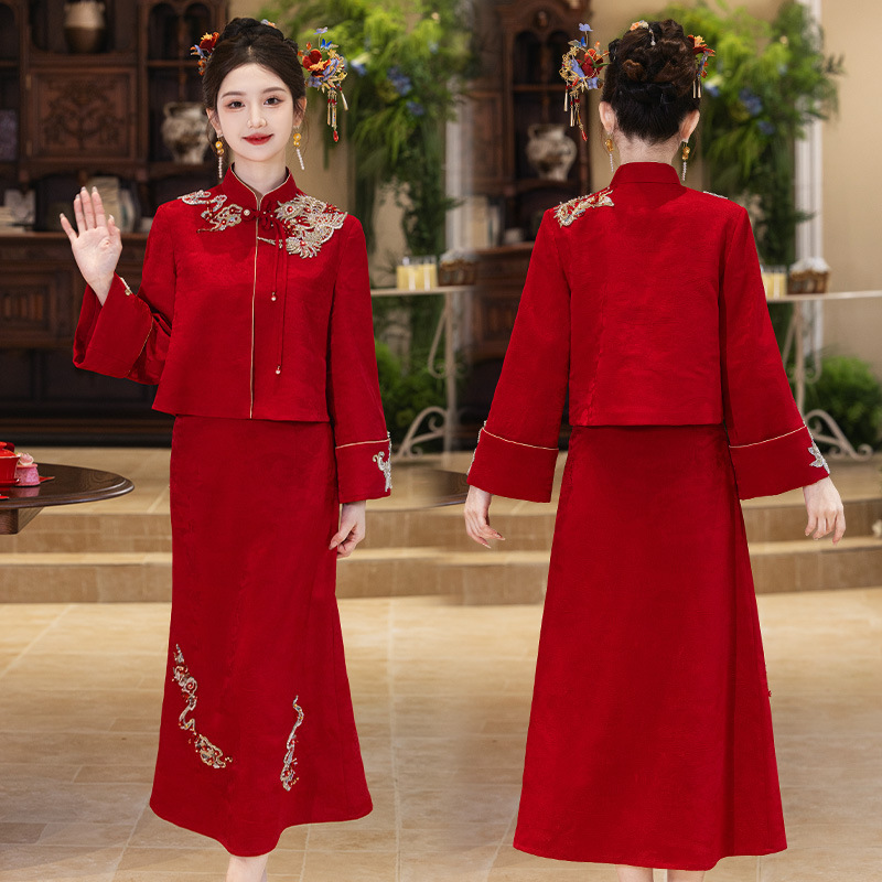 2025 новый новый китайский стиль красного помолвленного платья высокого уровня элегантный cheongsam набор из двух частей свадебный костюм