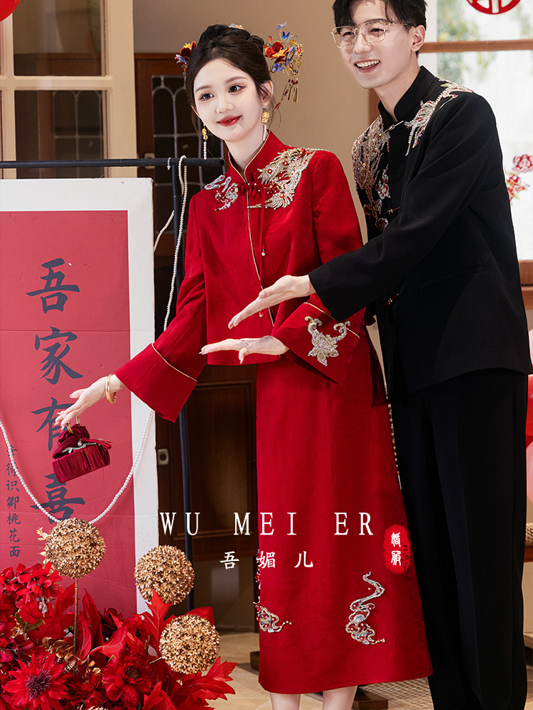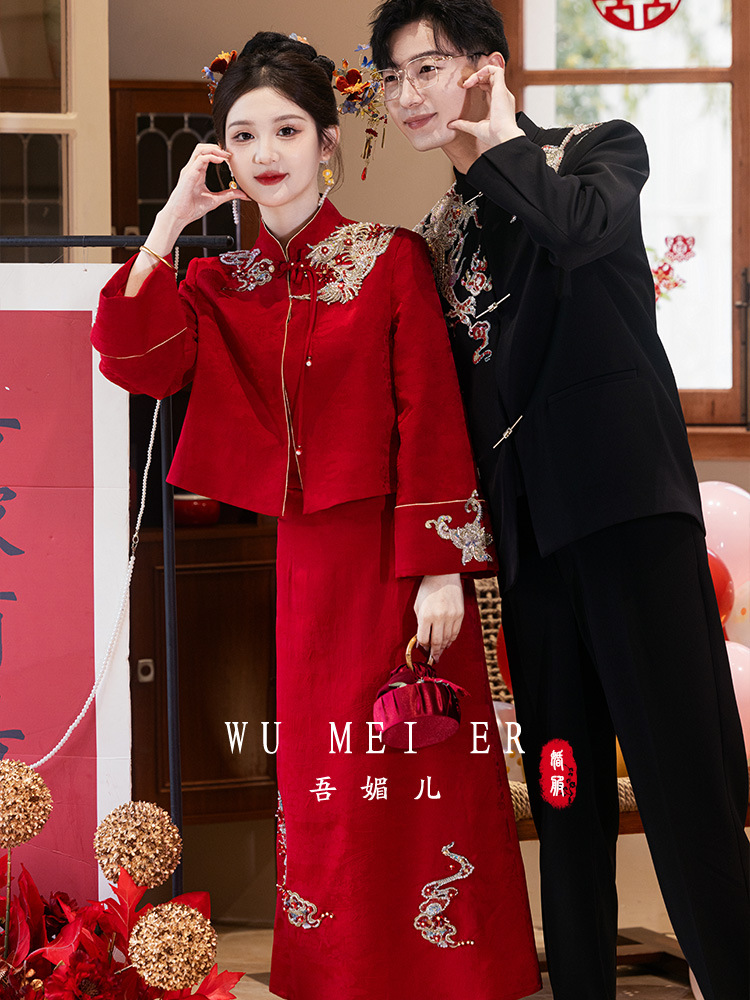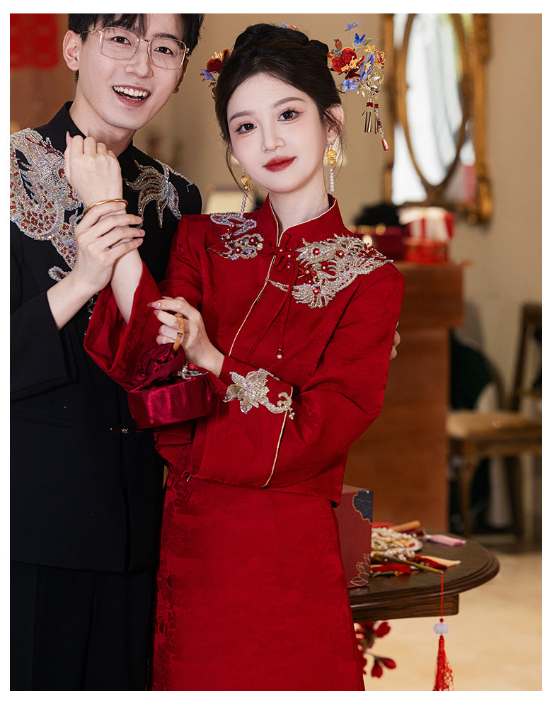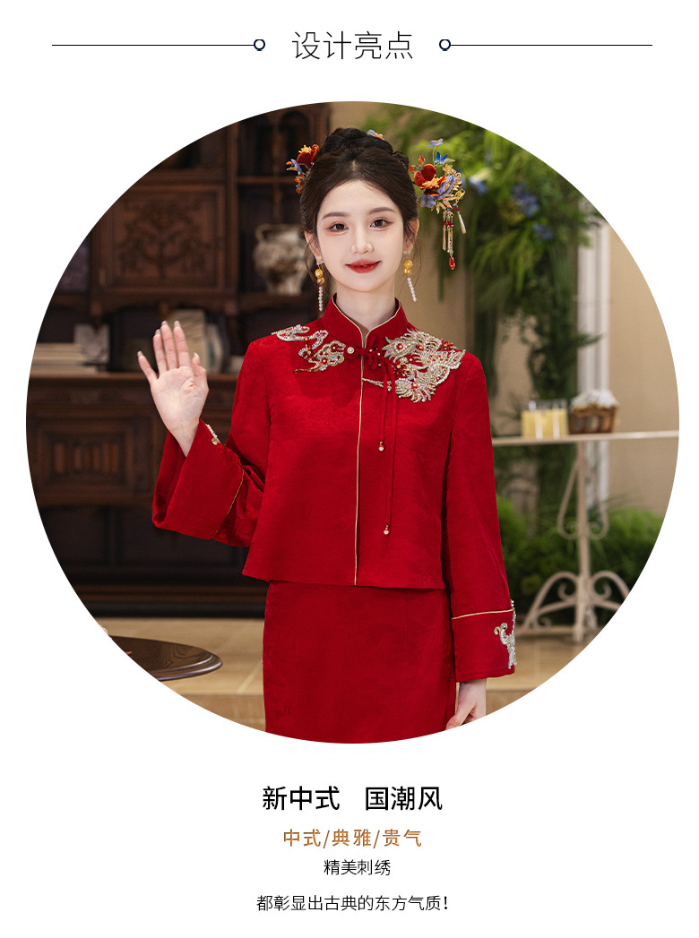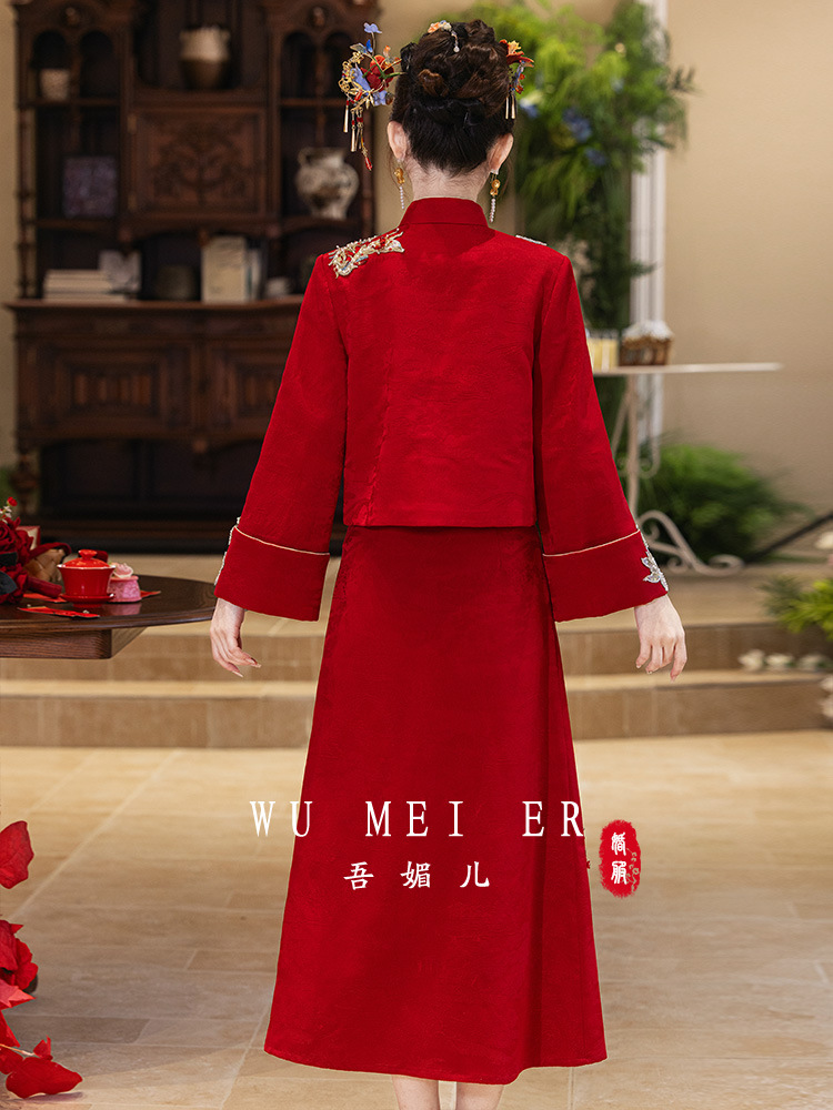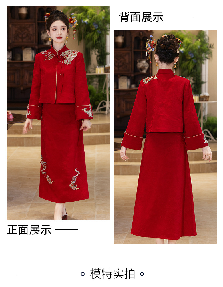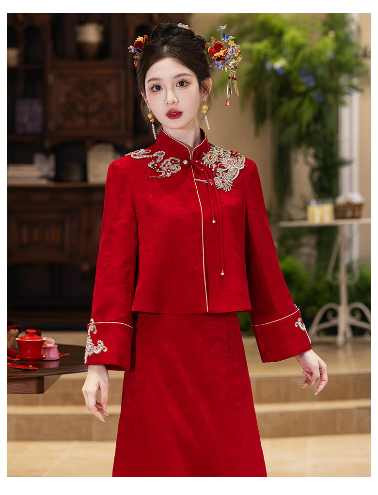 2025 новый новый китайский стиль красного помолвленного платья высокого уровня элегантный cheongsam набор из двух частей свадебный костюм