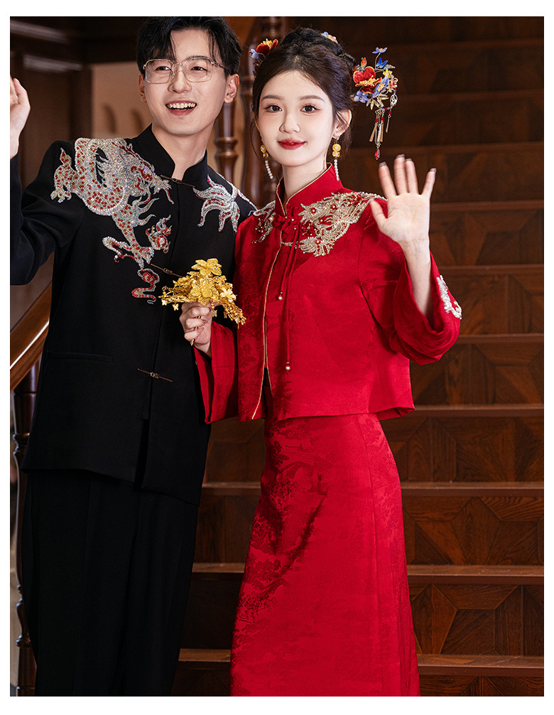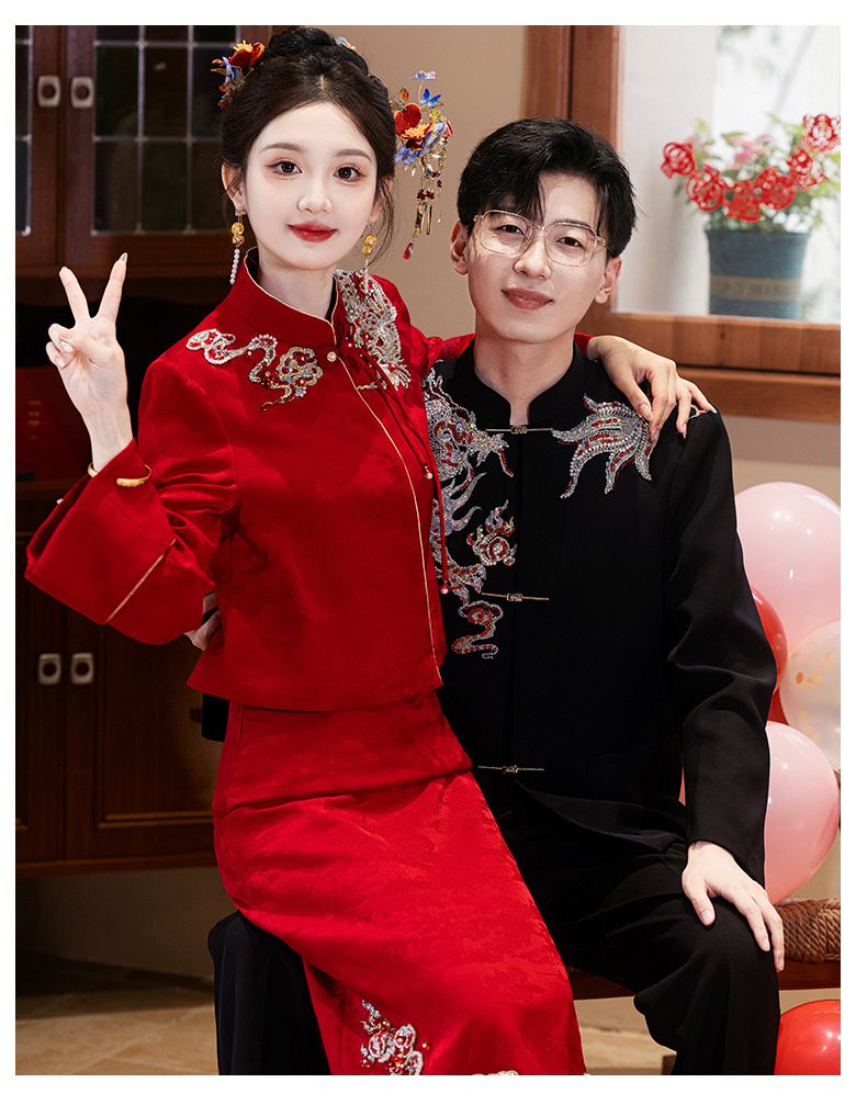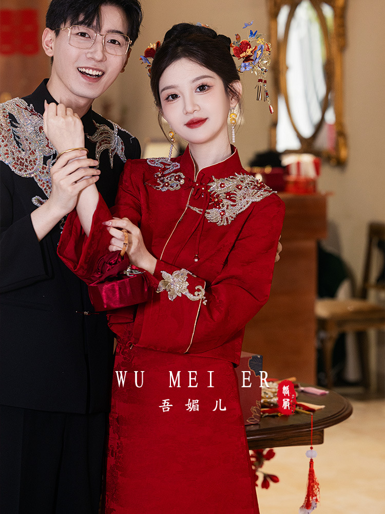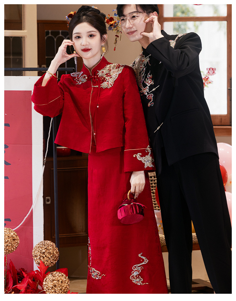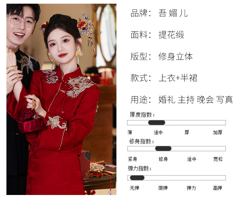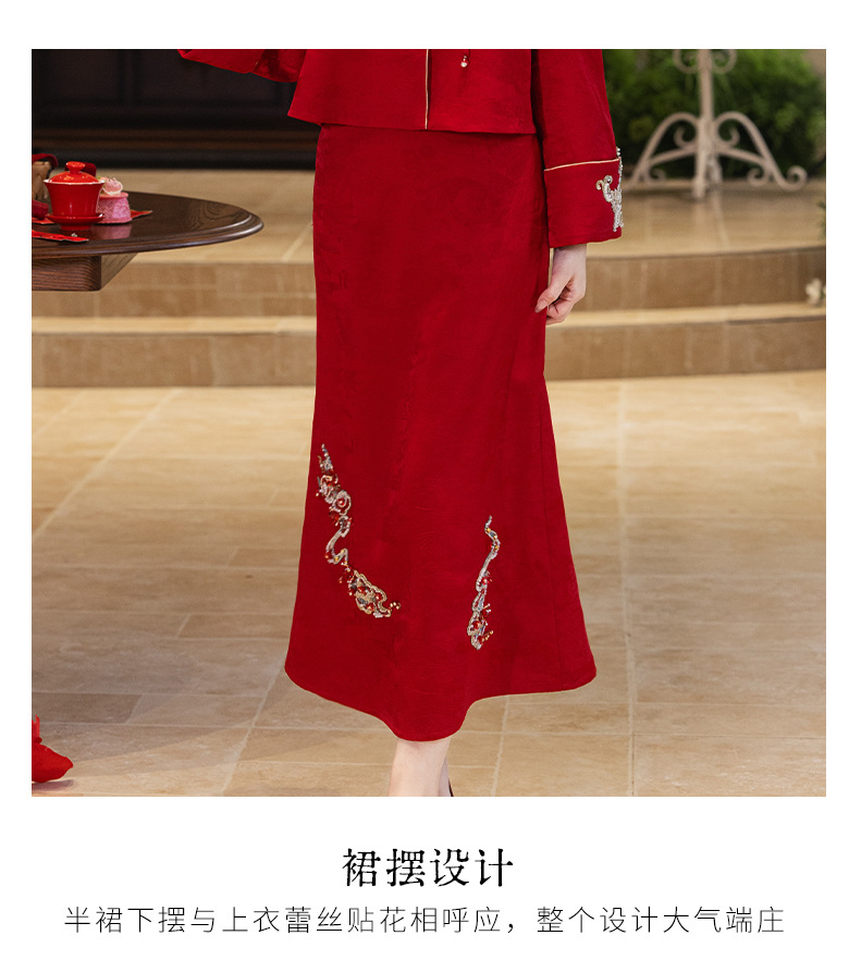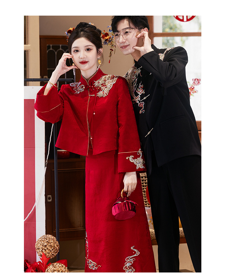 2025 новый новый китайский стиль красного помолвленного платья высокого уровня элегантный cheongsam набор из двух частей свадебный костюм